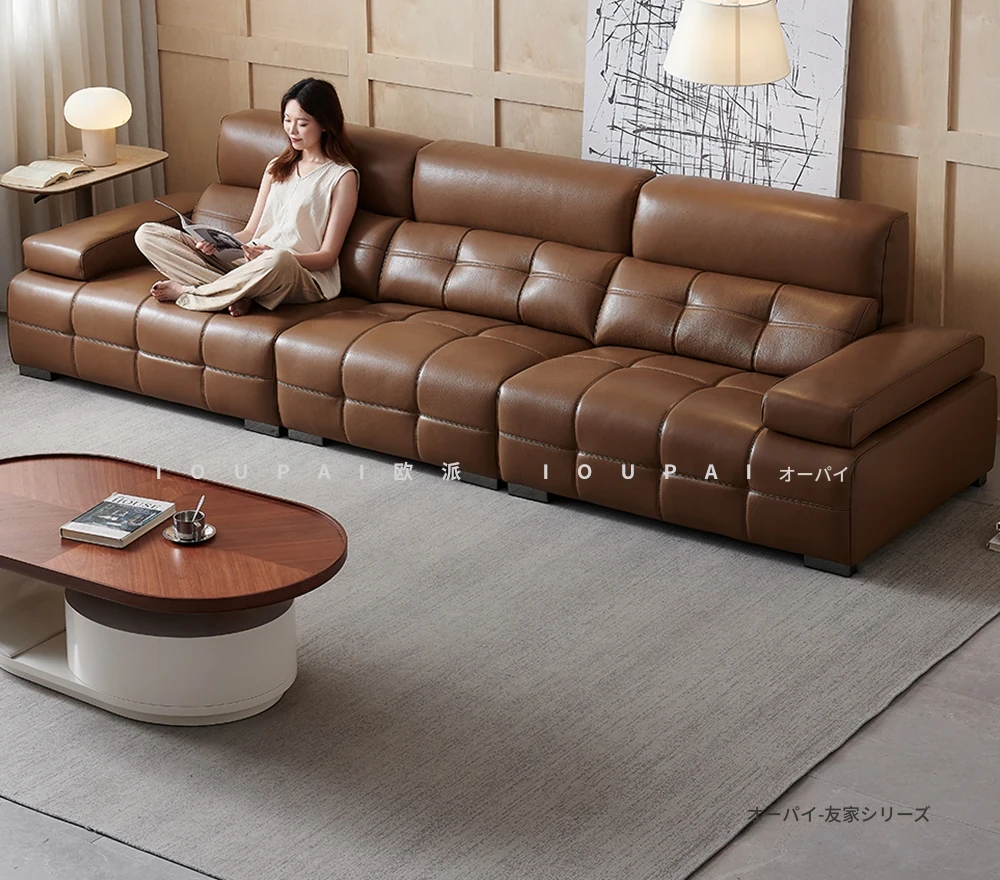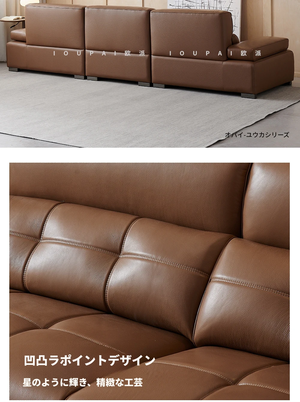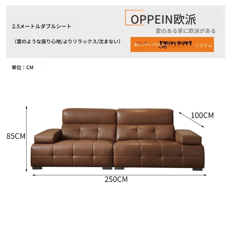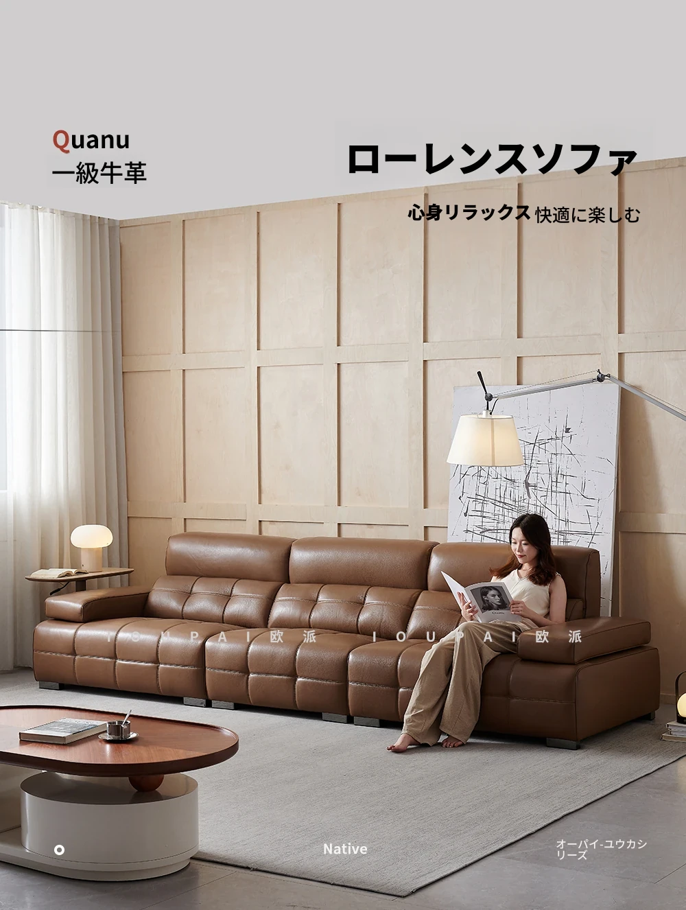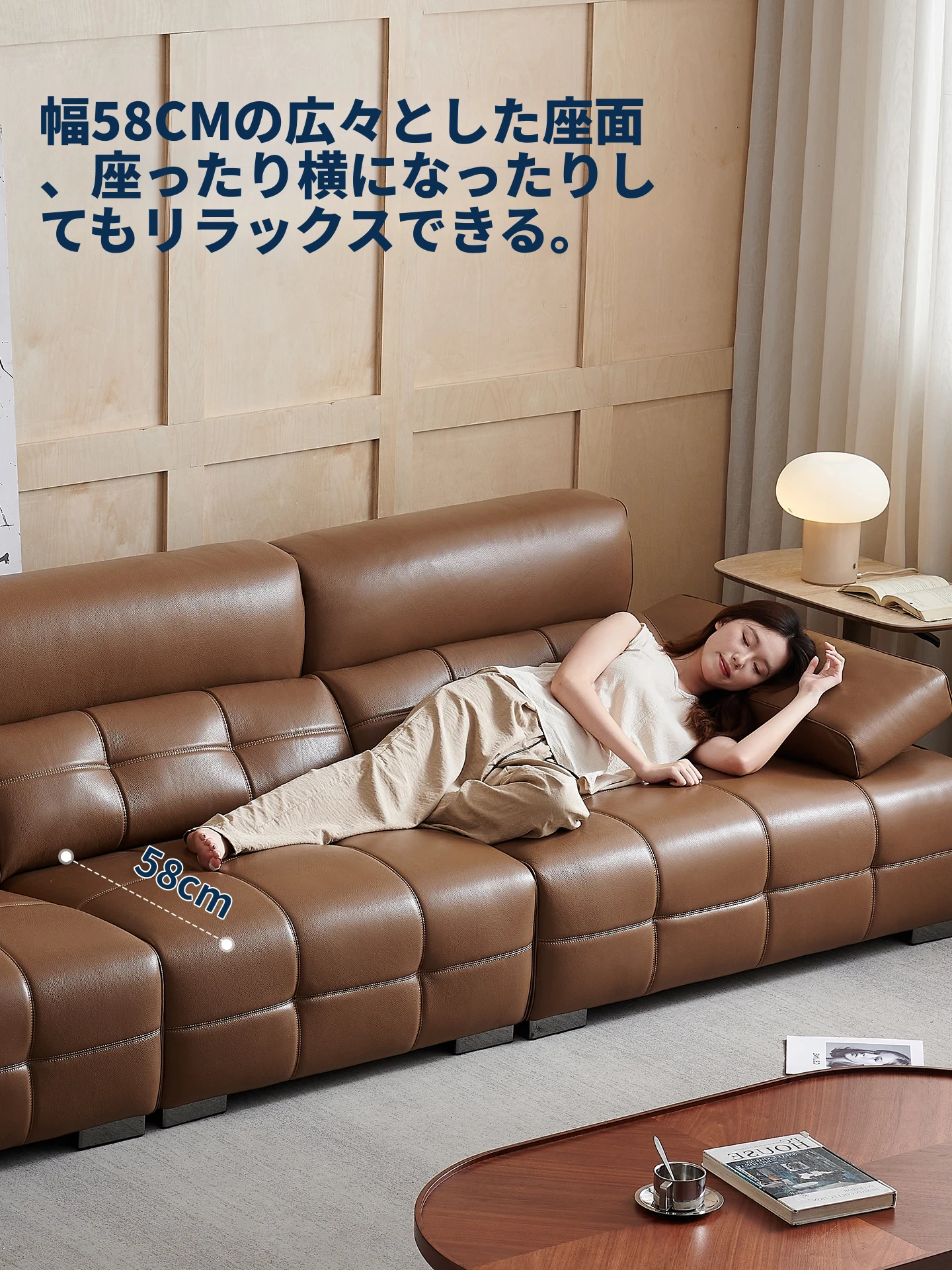 オパイ直排高背ラウレンス本革ソファー - ラグジュアリーなヴィンテージブラウン、上質な牛革使用、小型リビングに最適!