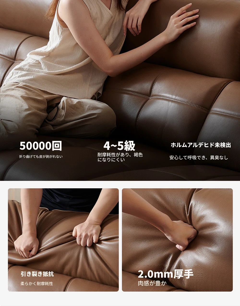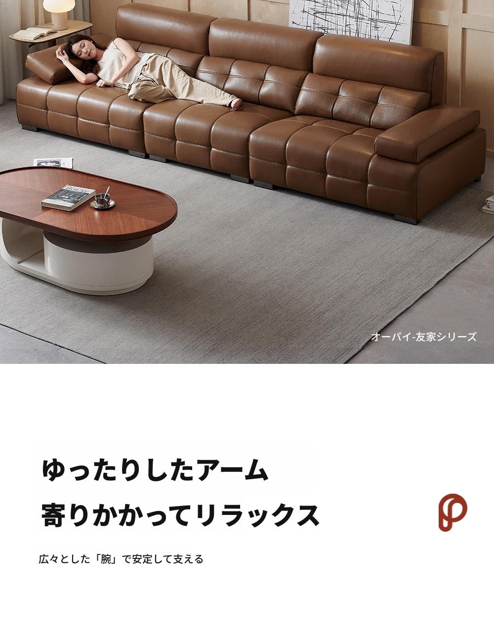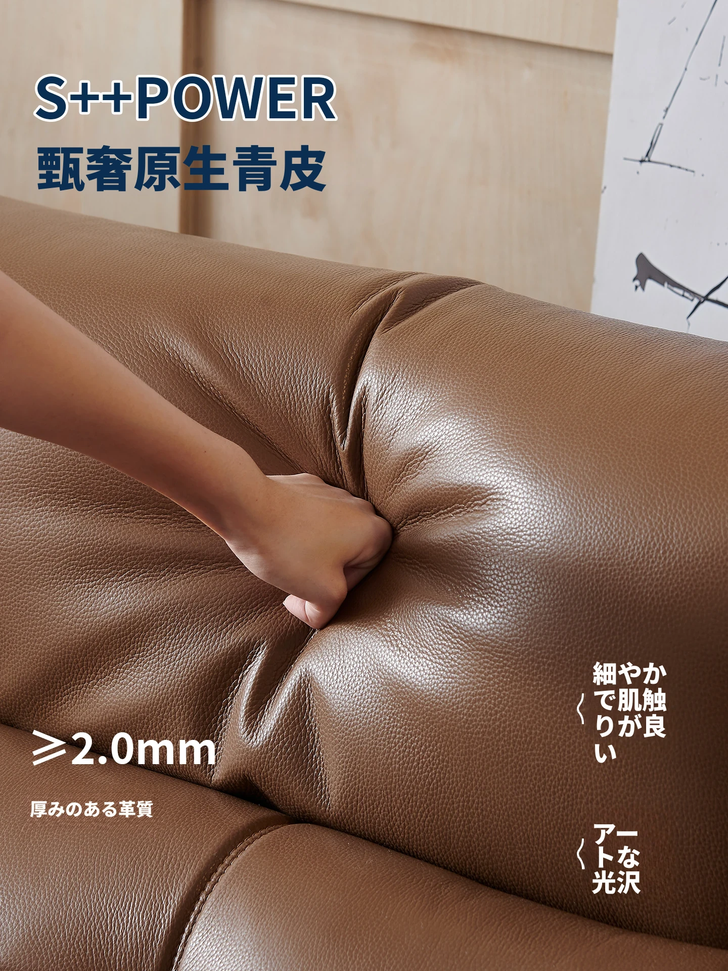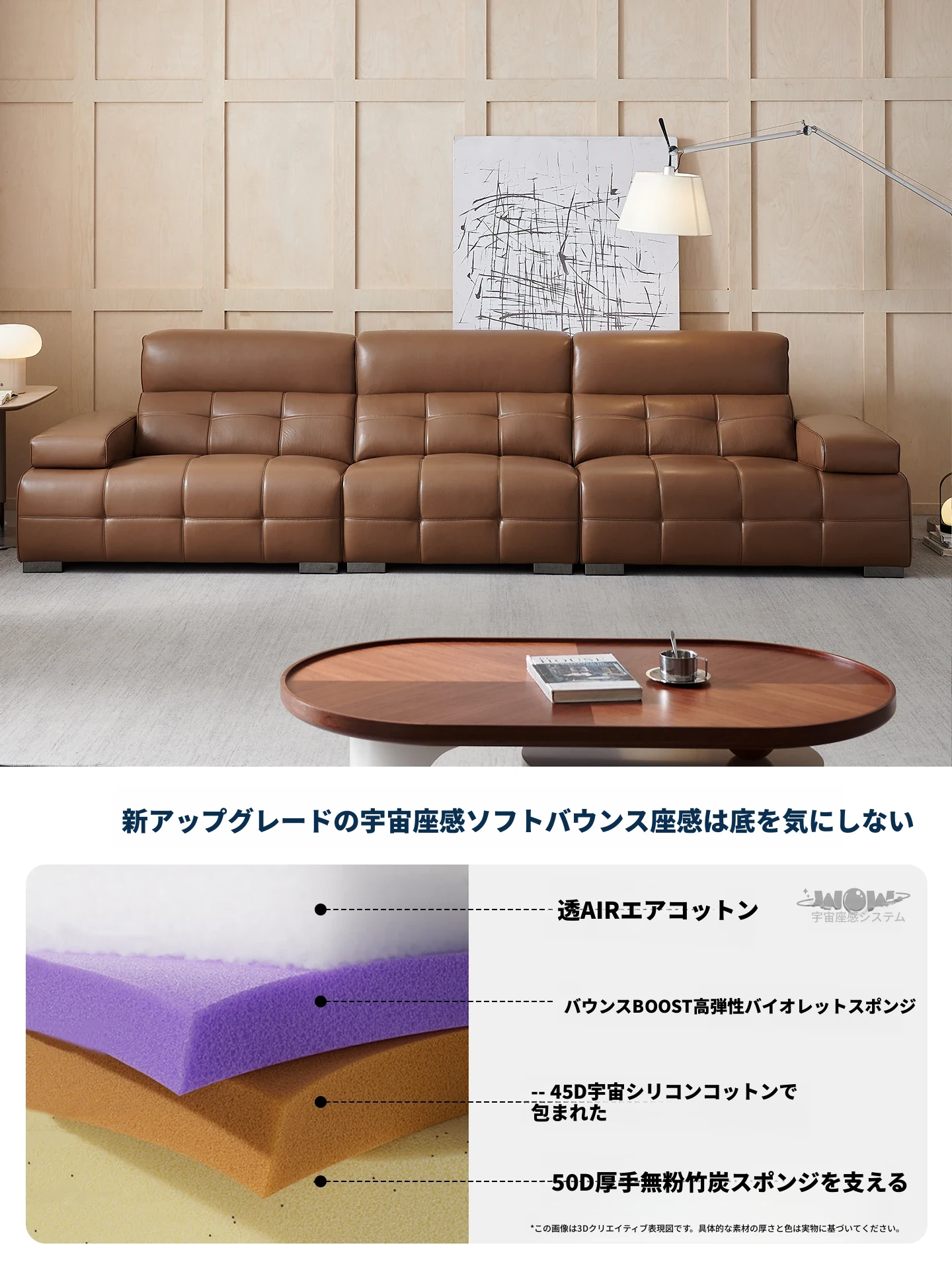 オパイ直排高背ラウレンス本革ソファー - ラグジュアリーなヴィンテージブラウン、上質な牛革使用、小型リビングに最適!