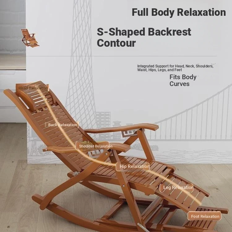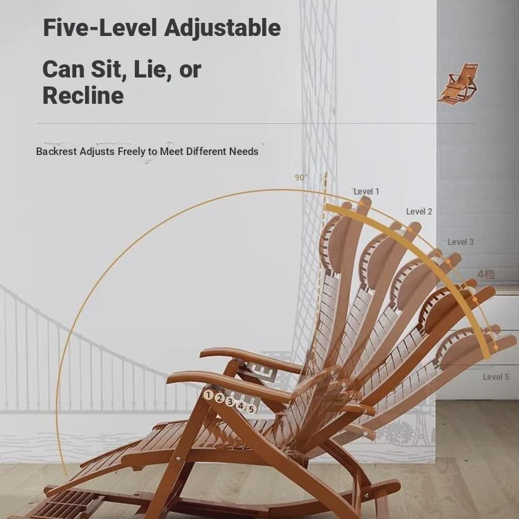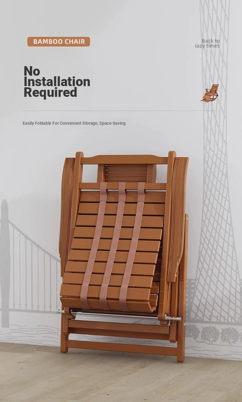 Foldable Bamboo Lounge Chair for Balcony - Comfortable Recliner for Home Relaxation, Perfect for Napping and Leisure, Lightweight and Portable, Ideal for Outdoor and Indoor Use