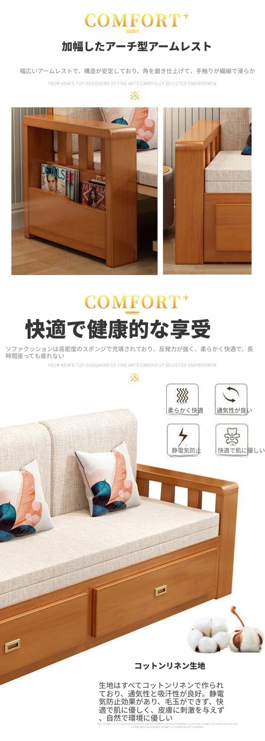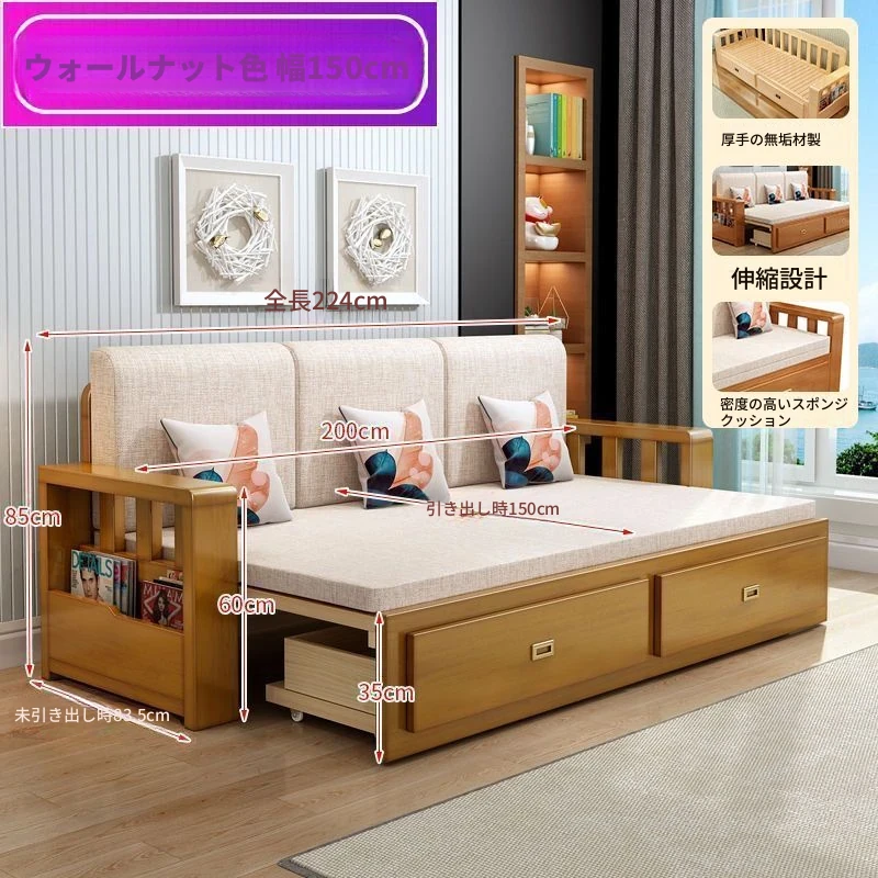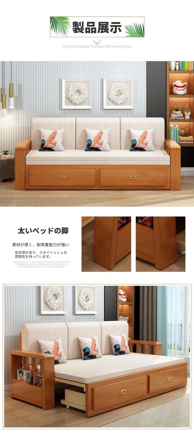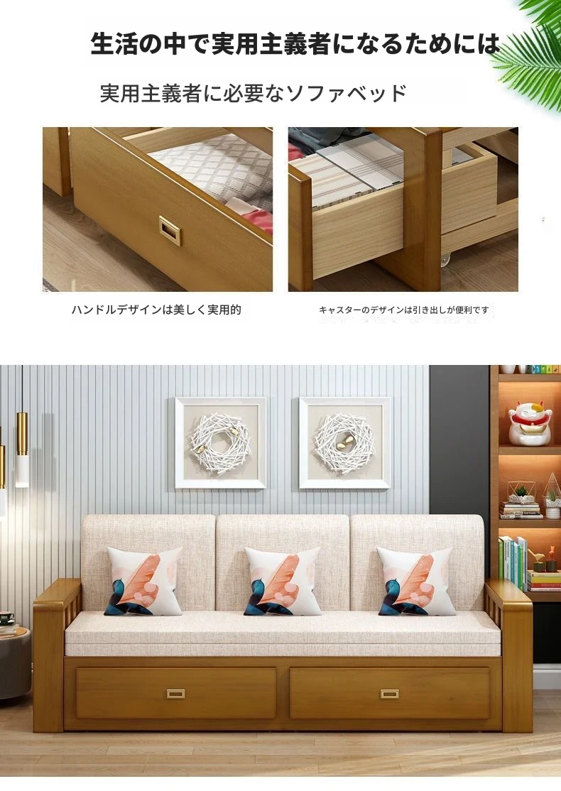 香港・澳门送料無料!折りたたみ式1.5メートル実木ソファベッド、マルチ機能の引き出し付き、リビングにぴったりな小型収納ソファ!快適な空間を演出します!