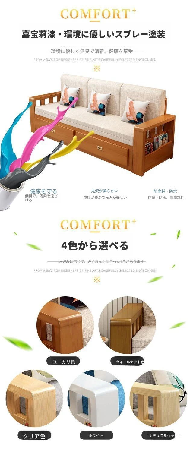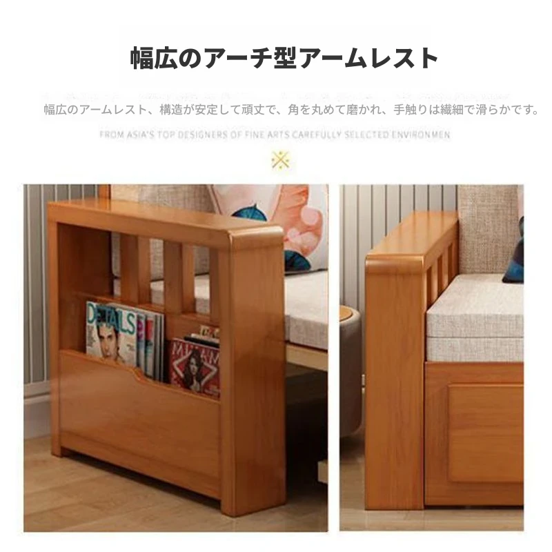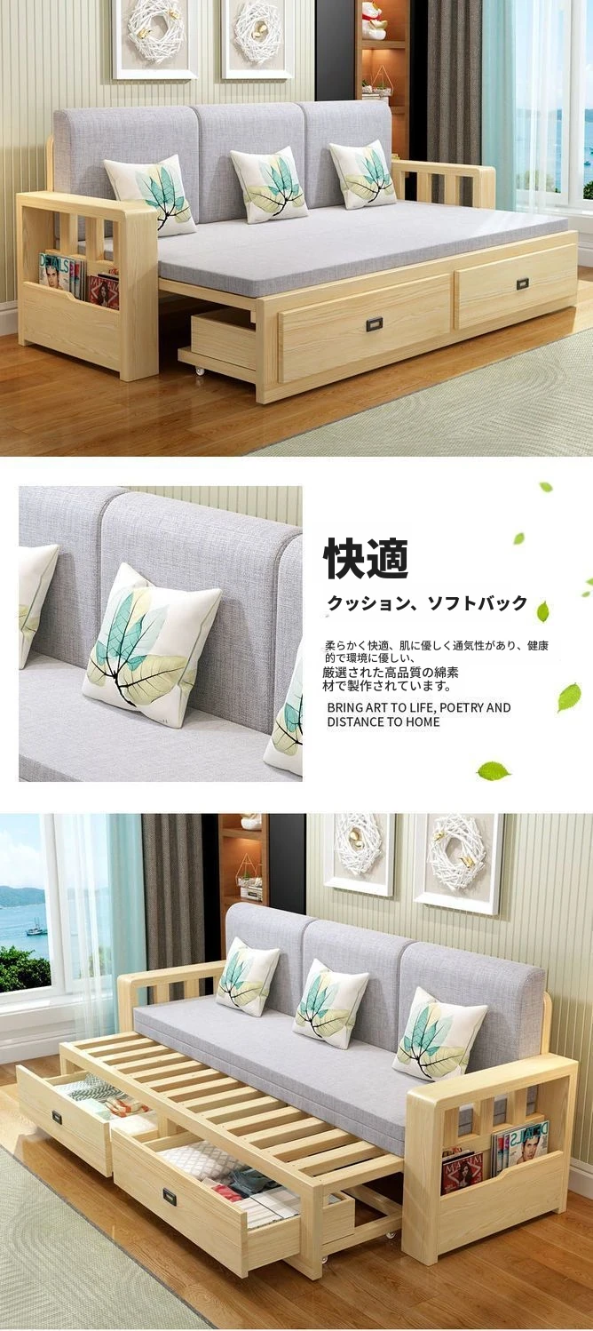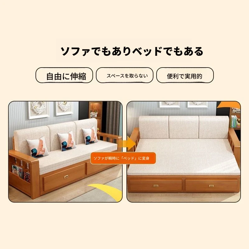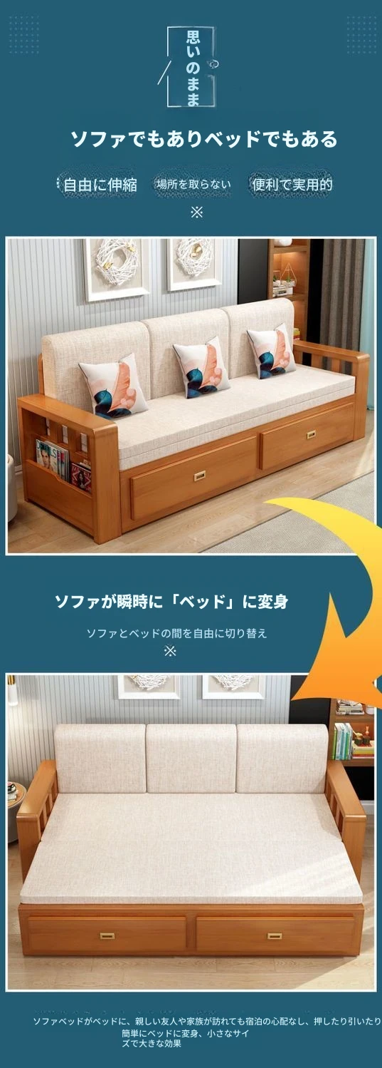 香港・澳门送料無料!折りたたみ式1.5メートル実木ソファベッド、マルチ機能の引き出し付き、リビングにぴったりな小型収納ソファ!快適な空間を演出します!