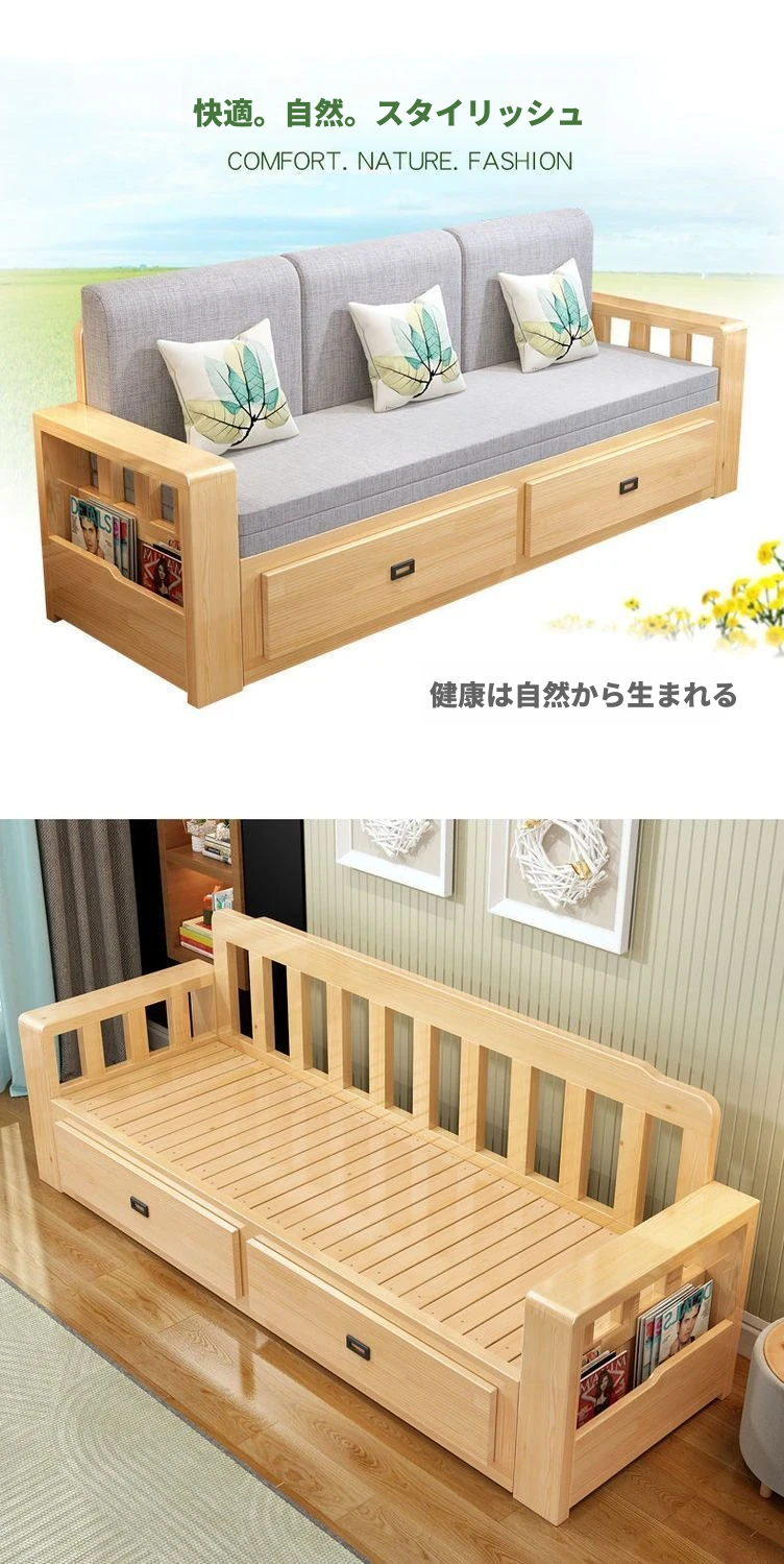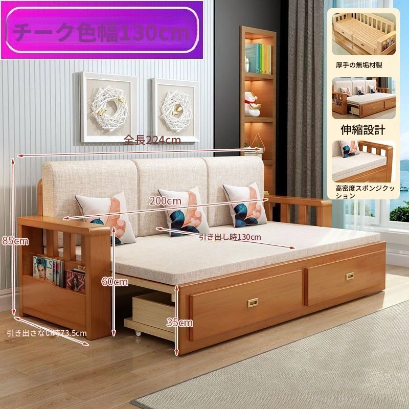 1.3X2.24メートル【伸縮可能+多機能】無料設置/ナチュラルタイプ【無垢材ソファベッド】+洗えるマットレス+複数の豪華ギフト