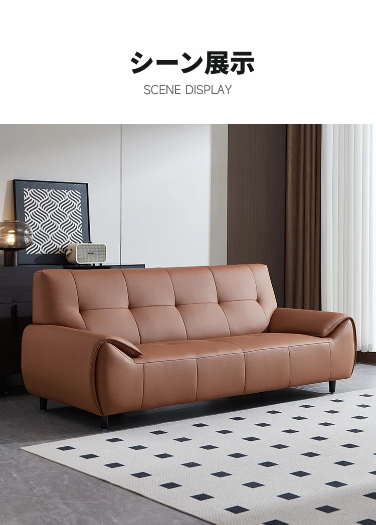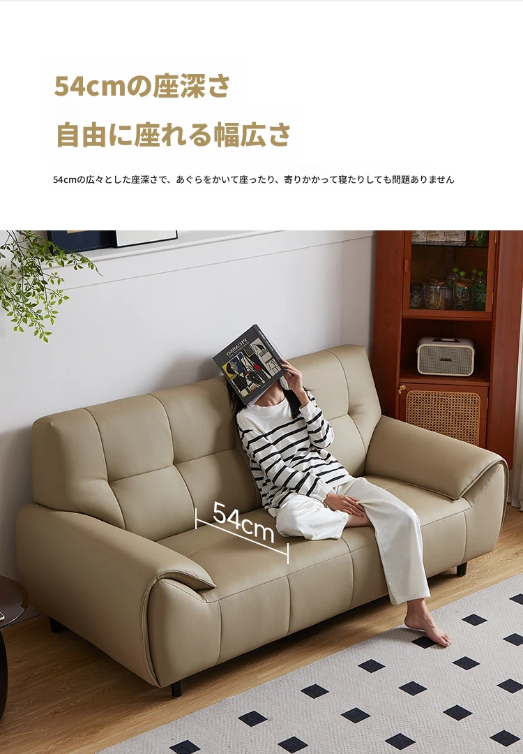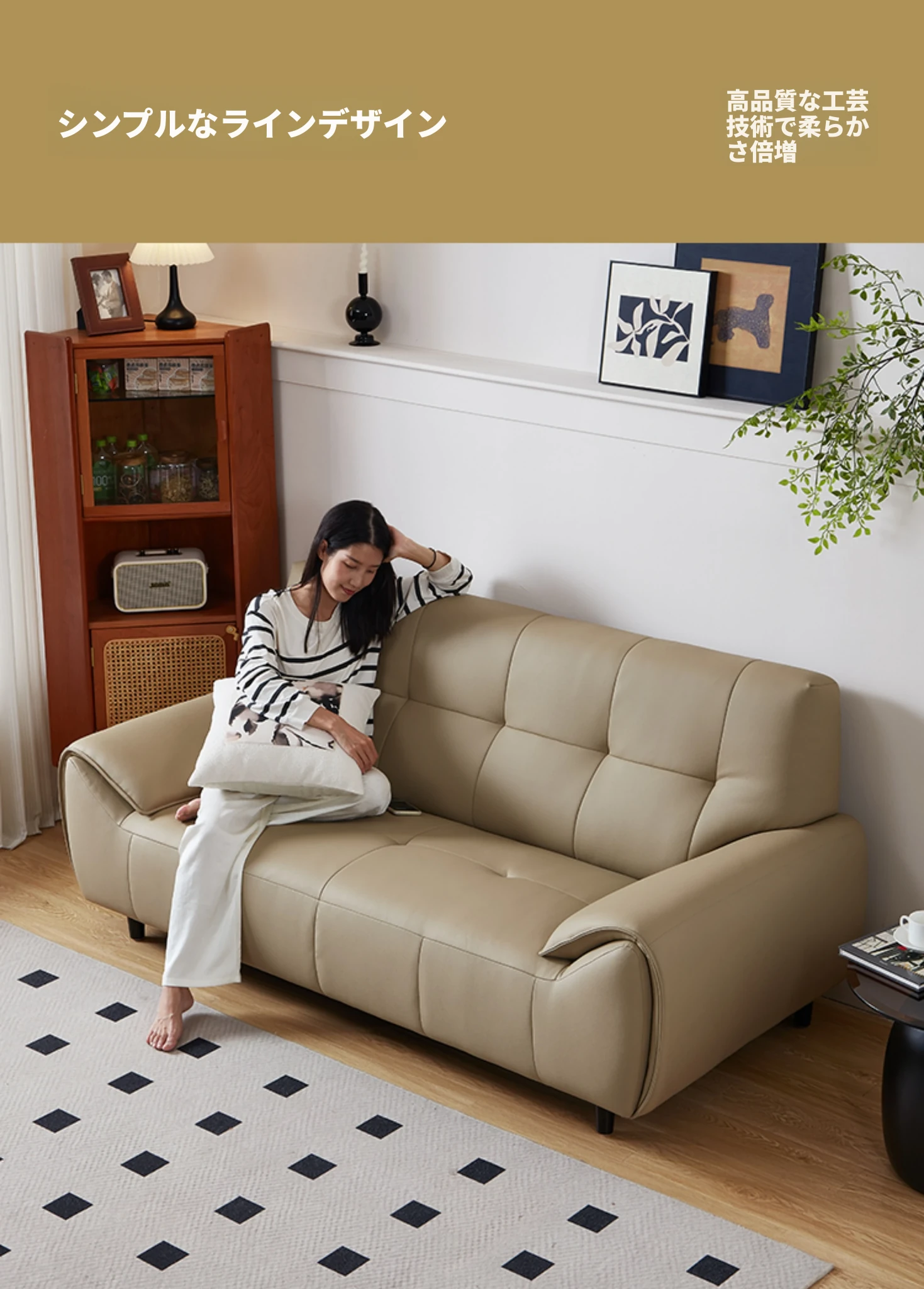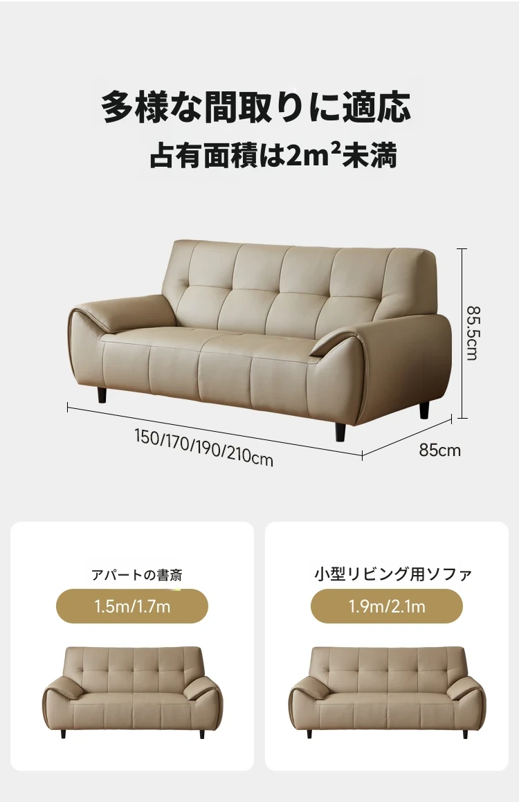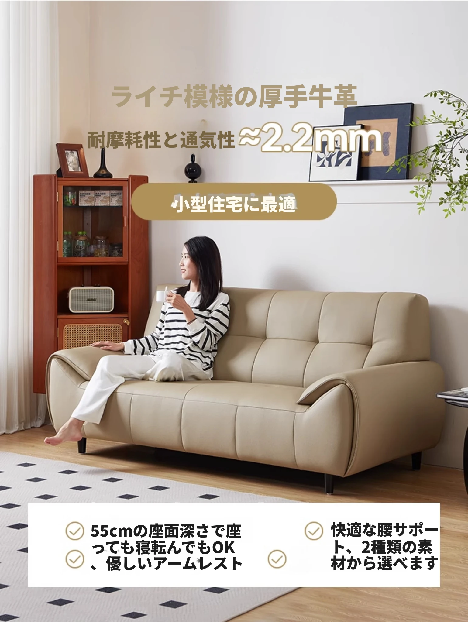 本革使用!リビング・寝室・書斎に最適な3人掛けソファ。高級感あふれる本牛革を使用した軽奢仕様。小型住宅にもぴったりなスタイリッシュなデザイン。あなたの空間を彩る一品です!