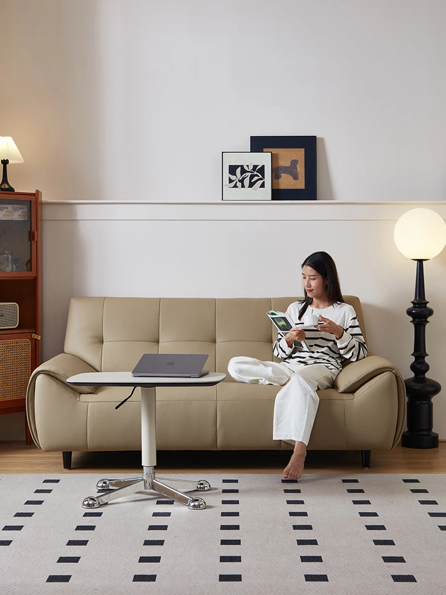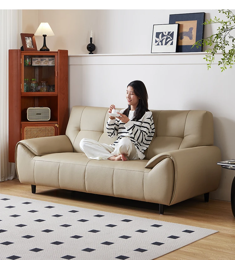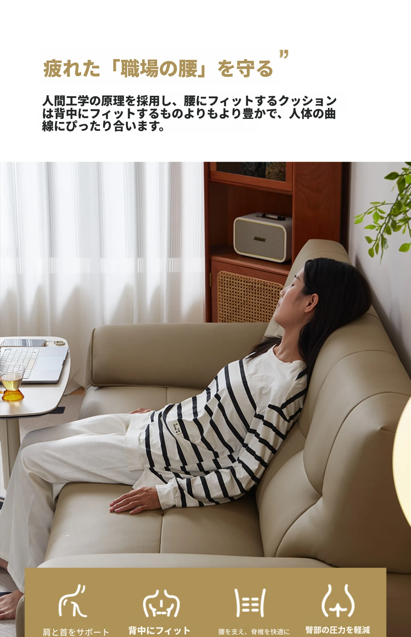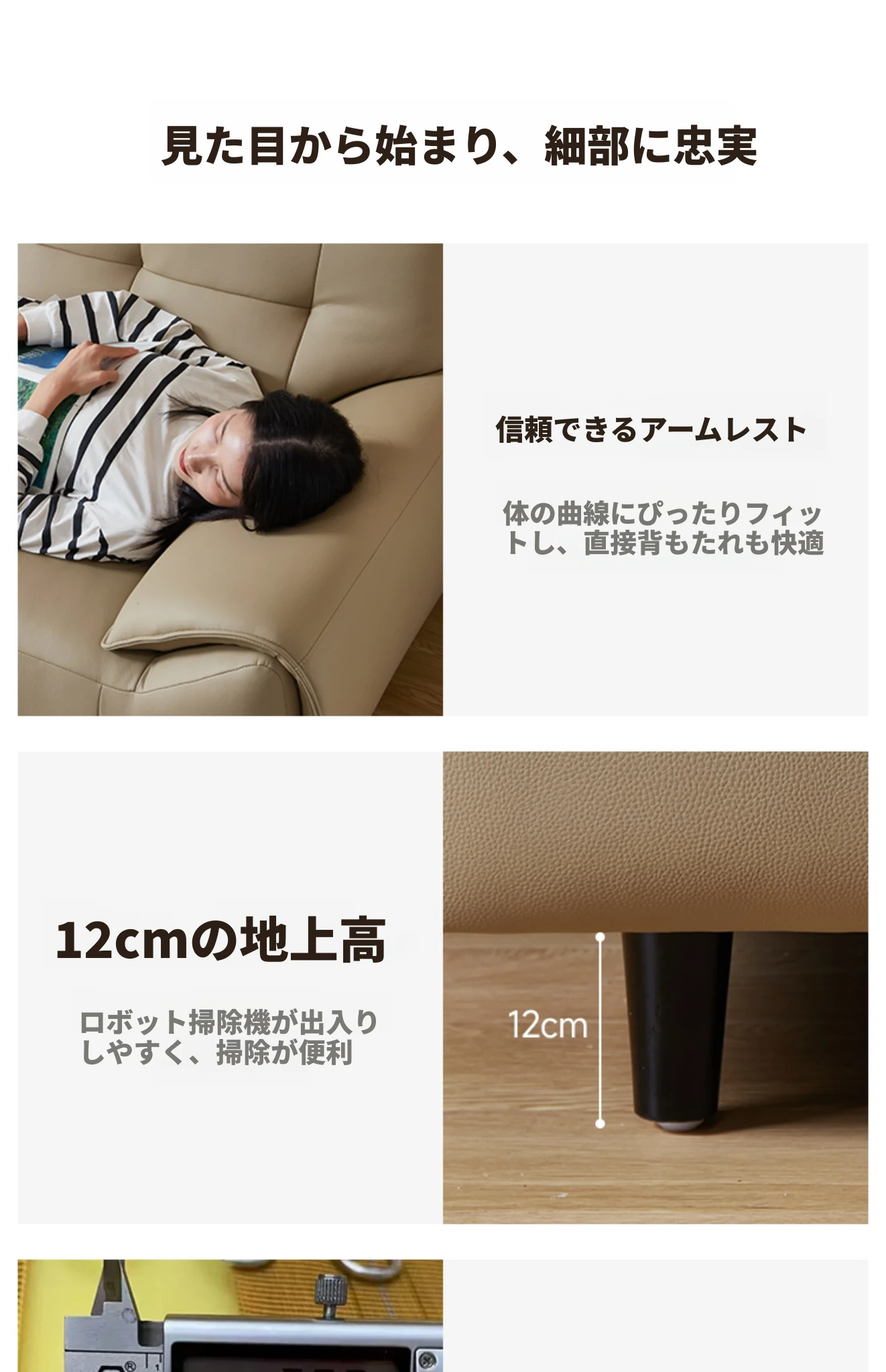 本革使用!リビング・寝室・書斎に最適な3人掛けソファ。高級感あふれる本牛革を使用した軽奢仕様。小型住宅にもぴったりなスタイリッシュなデザイン。あなたの空間を彩る一品です!