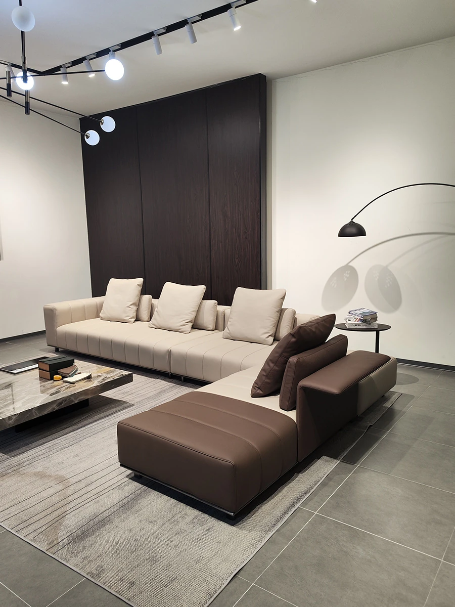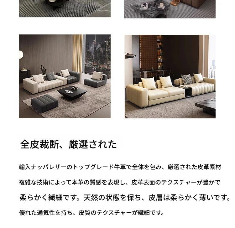 ピアノキー本革ソファ|イタリアンミニマルデザインのミロティ|広々としたラグジュアリーなリビング向け高級別荘ソファで、洗練された空間を演出!