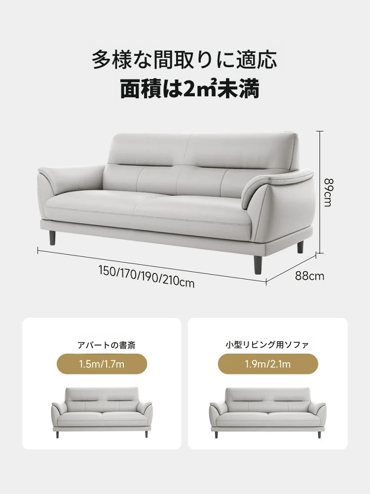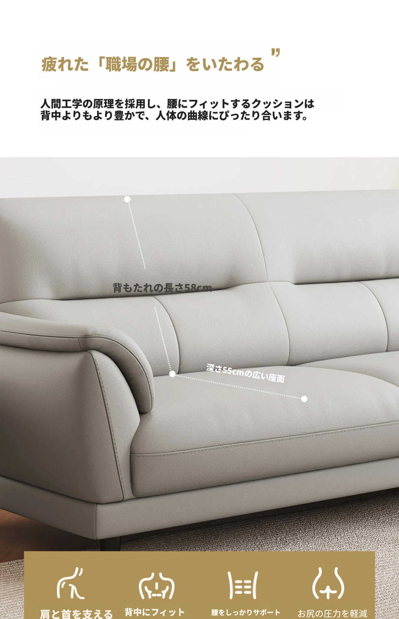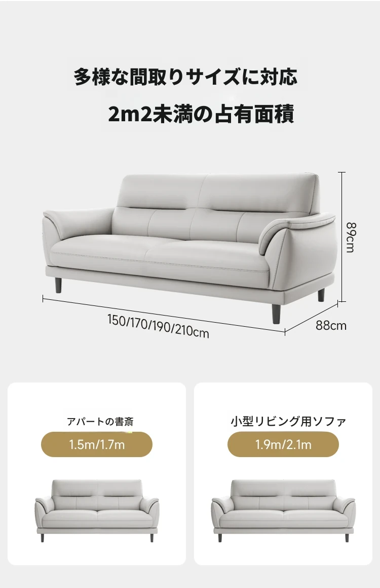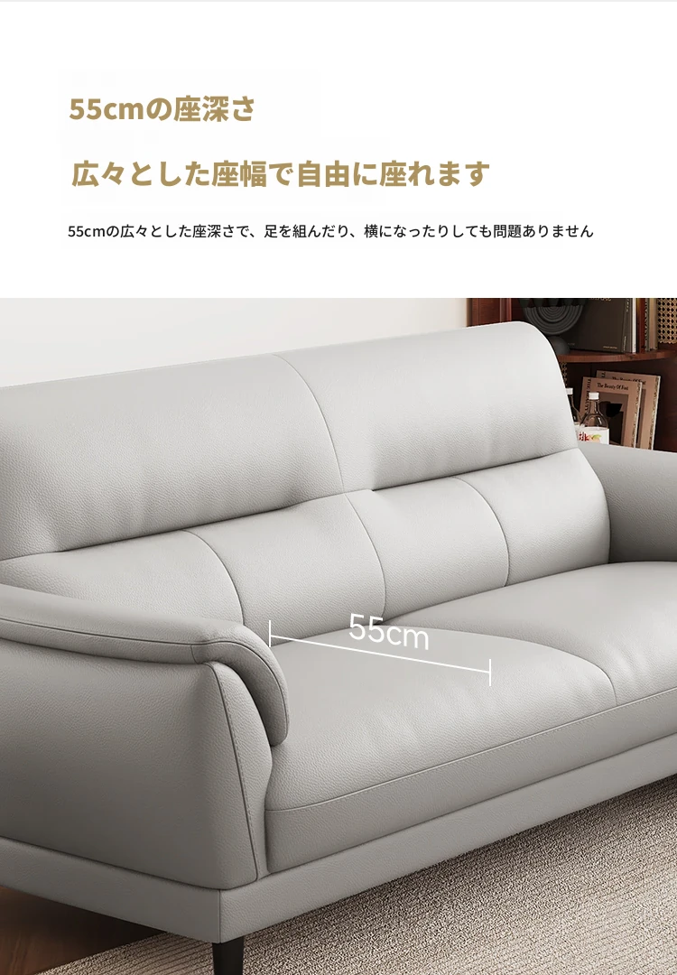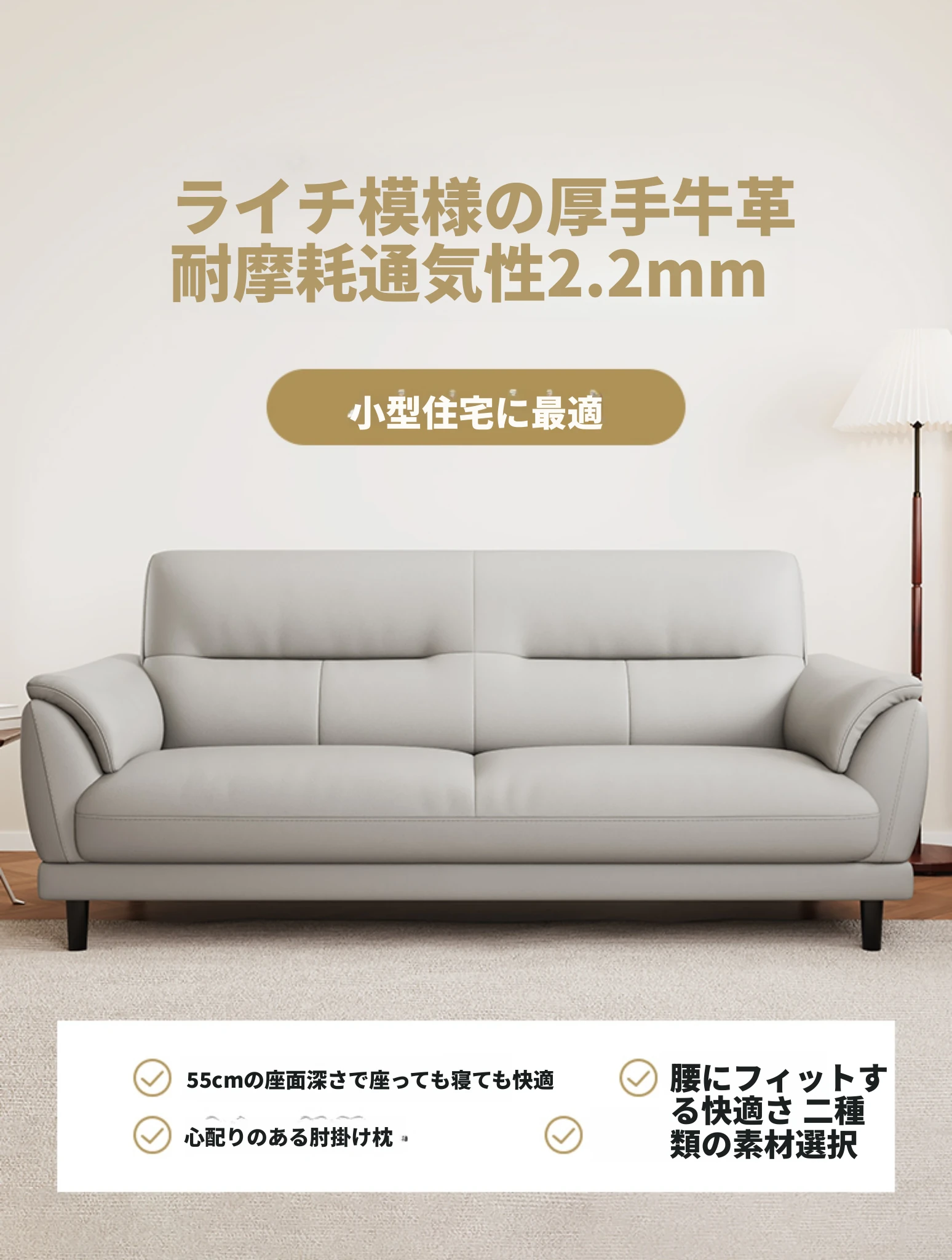 本革製ソファ|リビング・寝室・アパートにぴったり!トレンドの小型3人掛け、上質な牛革使用のダブルソファ。狭い空間にもフィットするスタイリッシュなデザインで、快適なひとときをお届けします!