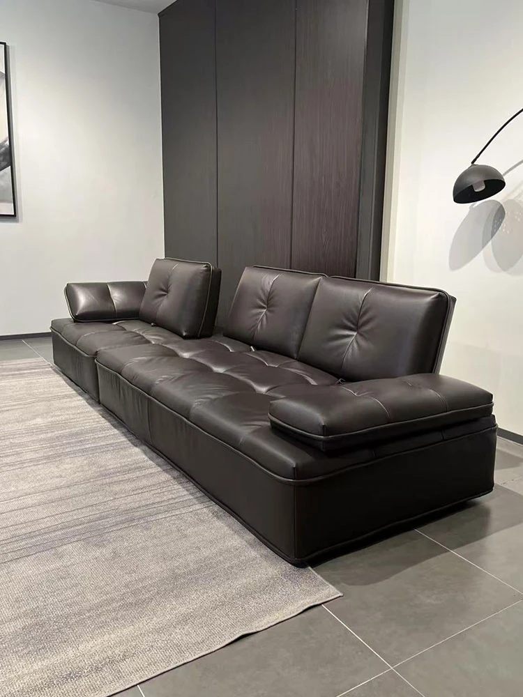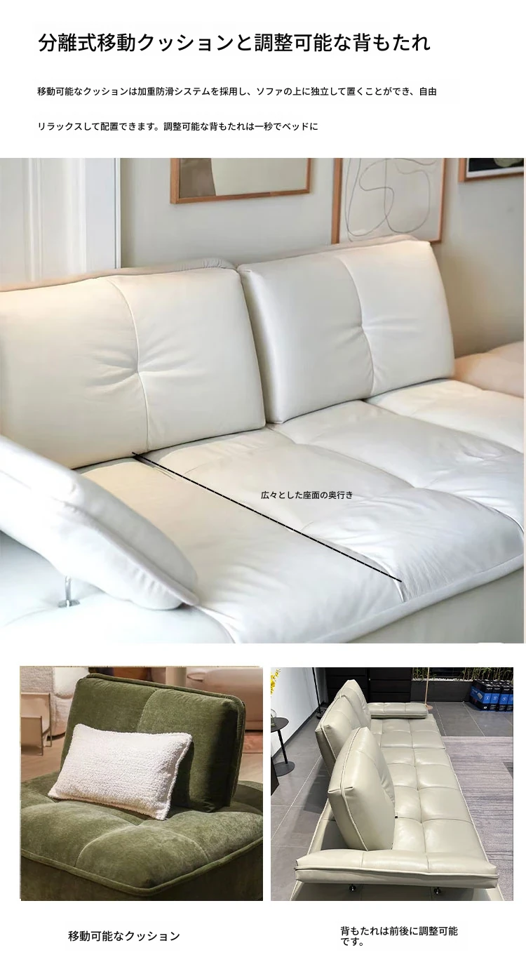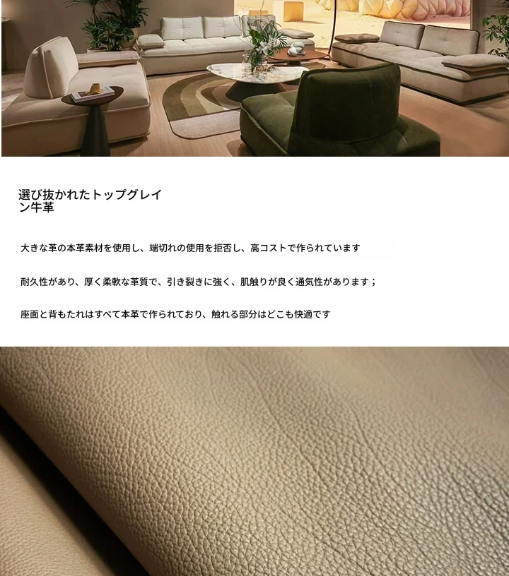 イタリアンC294ピクセルソファ、動き自在な背もたれ、フルグレインレザー使用のクリーム色、広々とした座面と深いデザイン、多様なモジュール組み合わせが可能で、あなたのリビングをスタイリッシュに演出します!