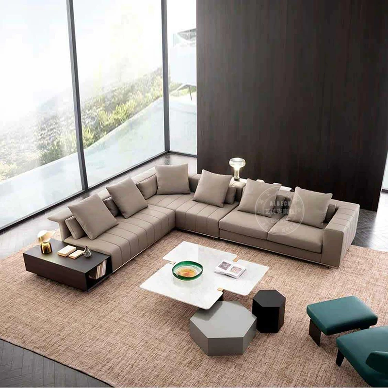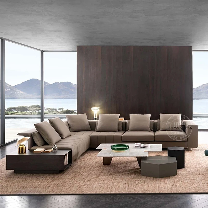 イタリアンラグジュアリー 本革ソファ 大型デザイン ヴィラ向け ピアノキー風 シンプルモダンソファ リビングルームに最適 2024年新作!高級感と快適さを兼ね備えた一品。