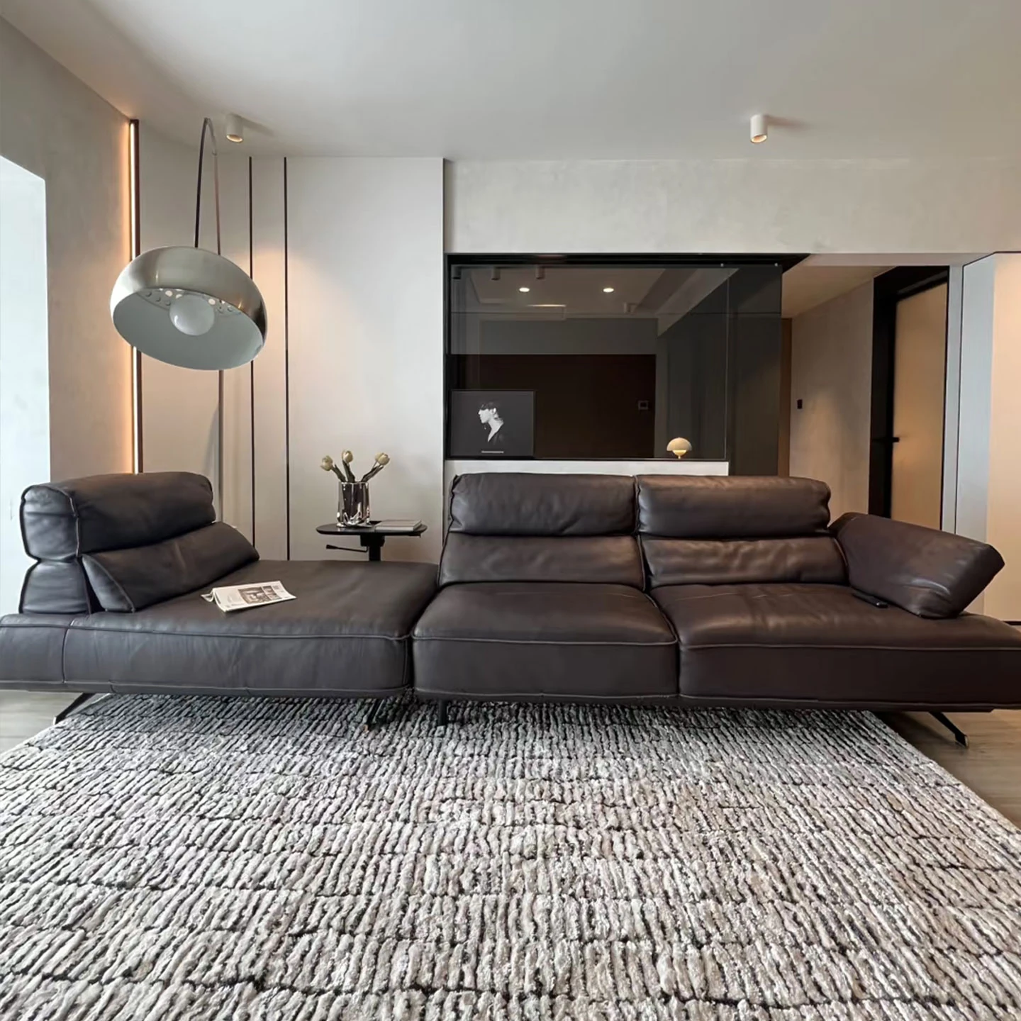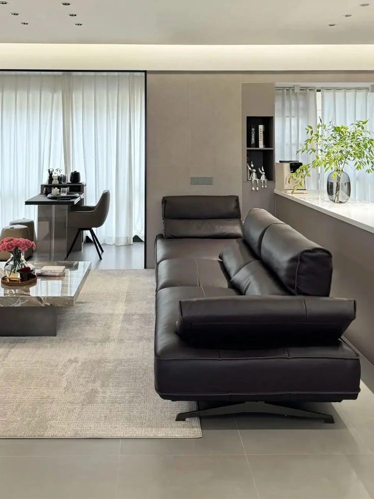 イタリアンミニマル調整可能な本革ソファ、広々とした深さ9659、夢の時を感じる女王の休息ソファ。エレガントなデザインで、快適な座り心地を実現!
