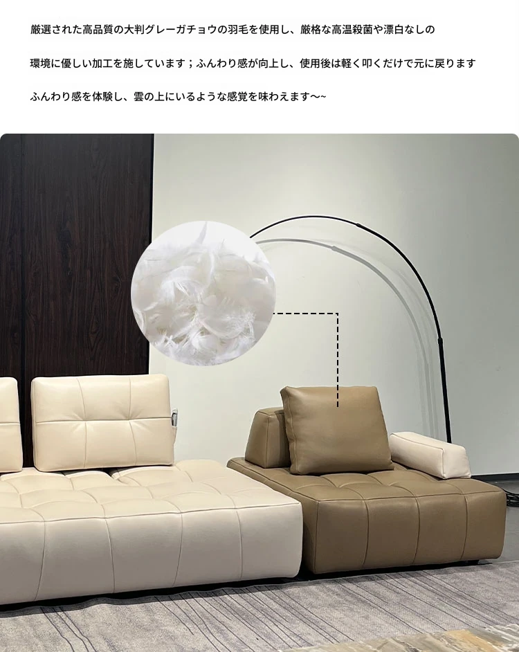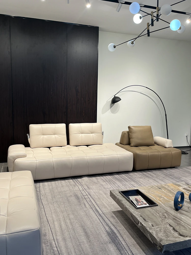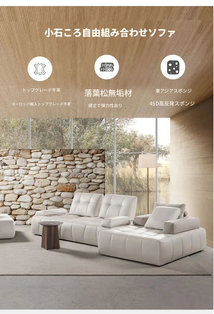 イタリアンミニマル電動機能付き本革ソファー - 自由に組み合わせ可能なペブルデザイン、快適なリビング空間を演出するTE27モデル!