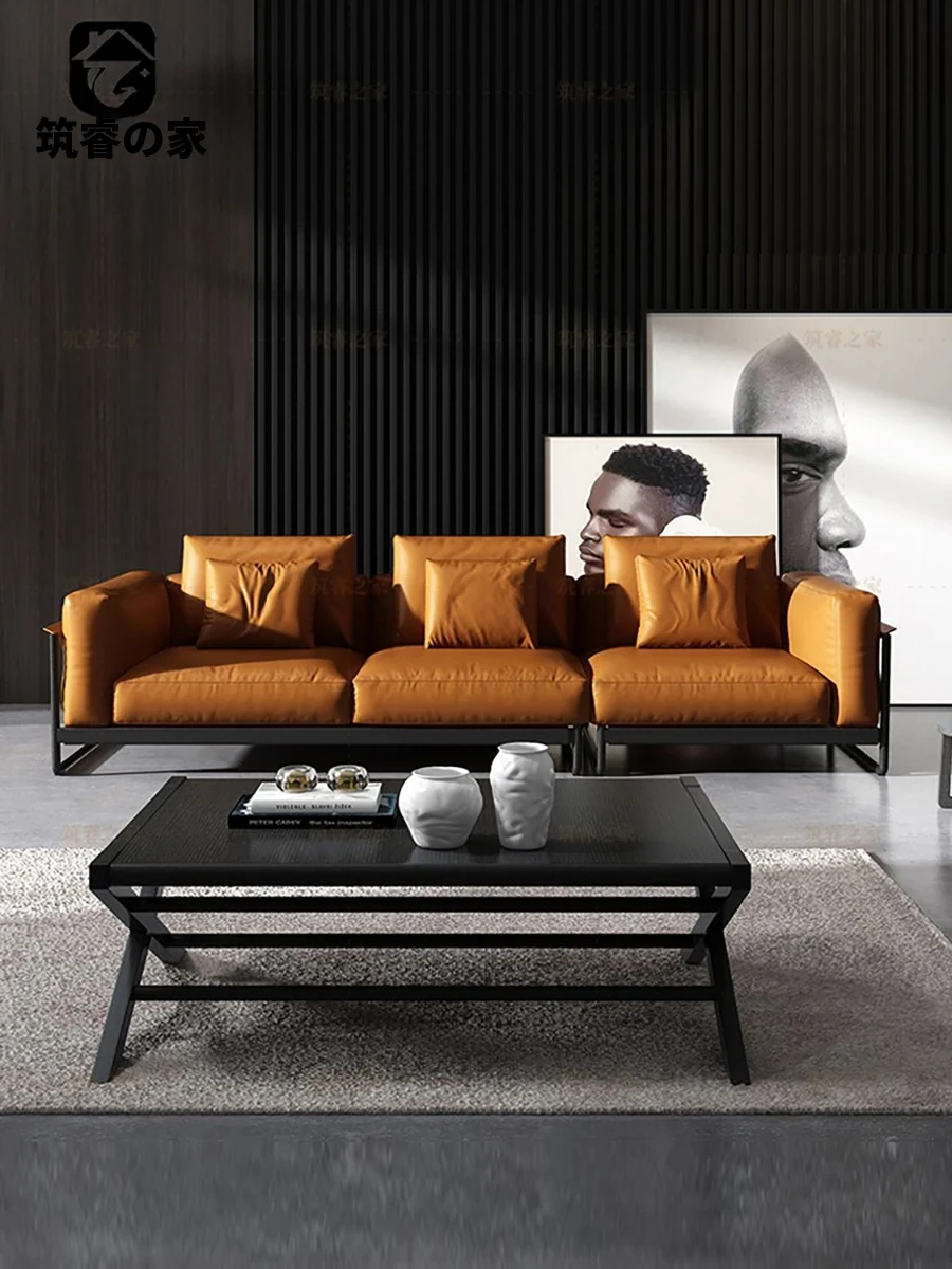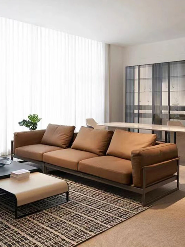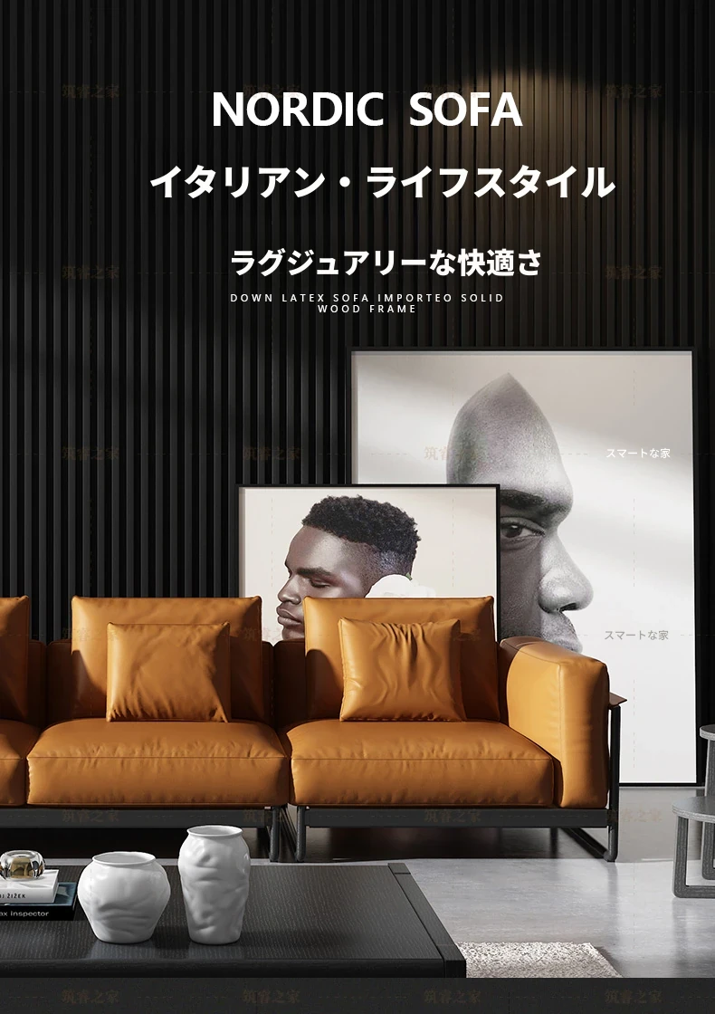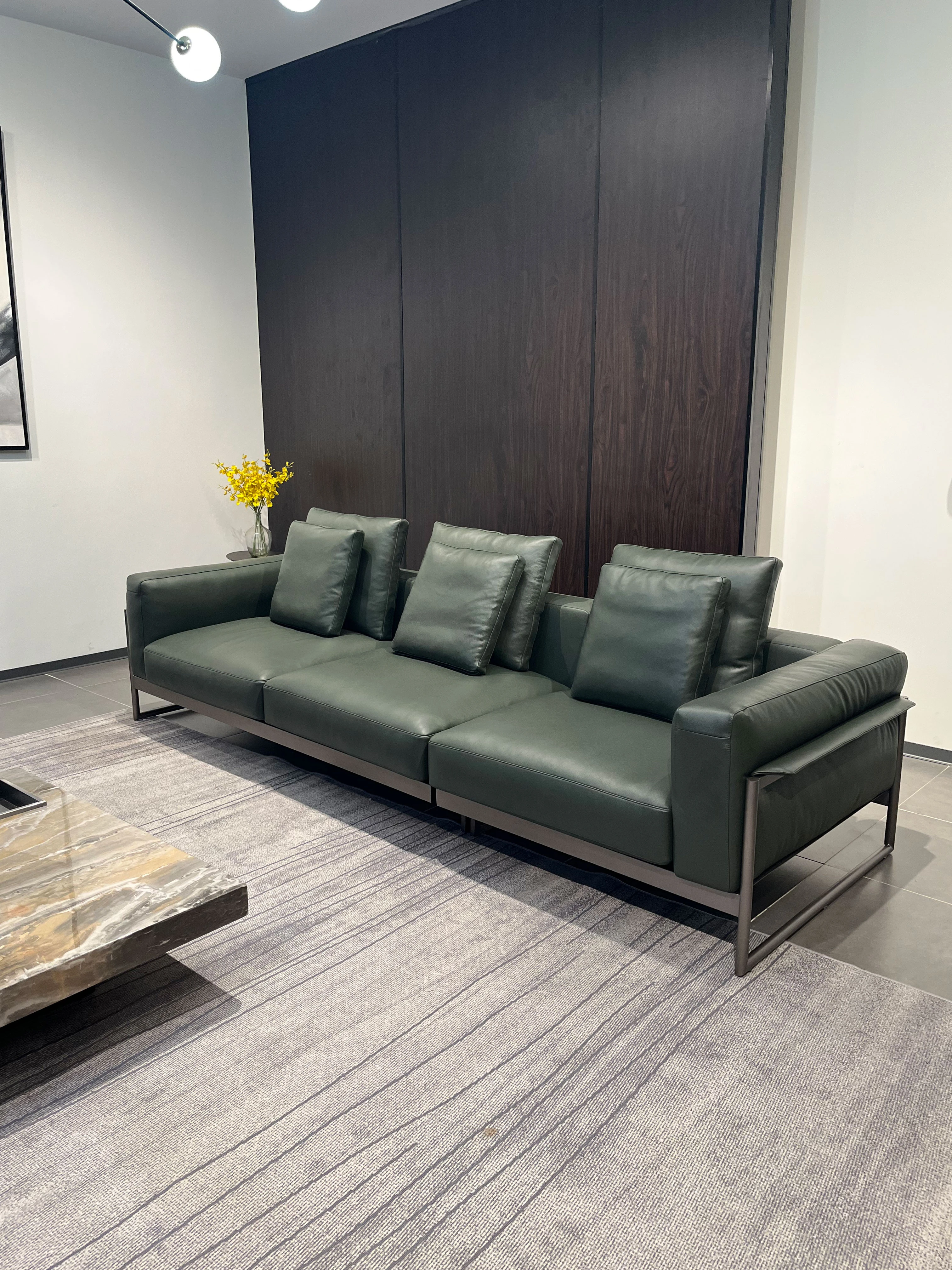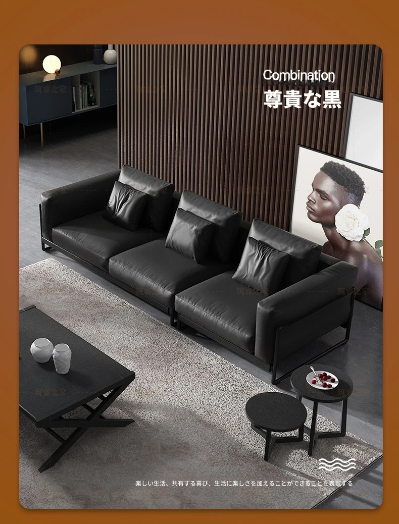 イタリアンミニマリズムの本革ソファ!上質な牛革とステンレスフレームを使用したデザイナーズソファ。羽毛クッションで快適さ抜群!小さな部屋にもぴったりのスタイリッシュな選択肢。