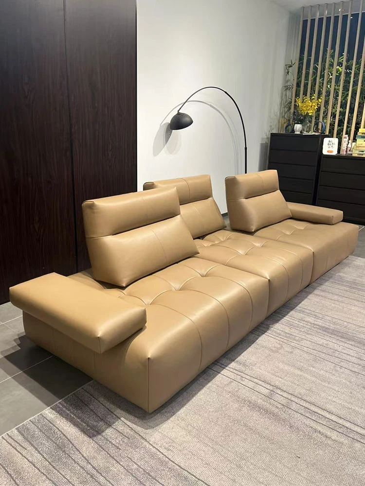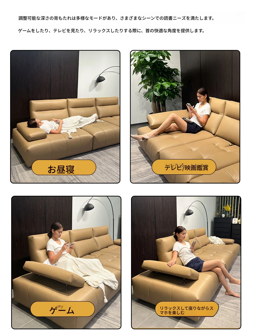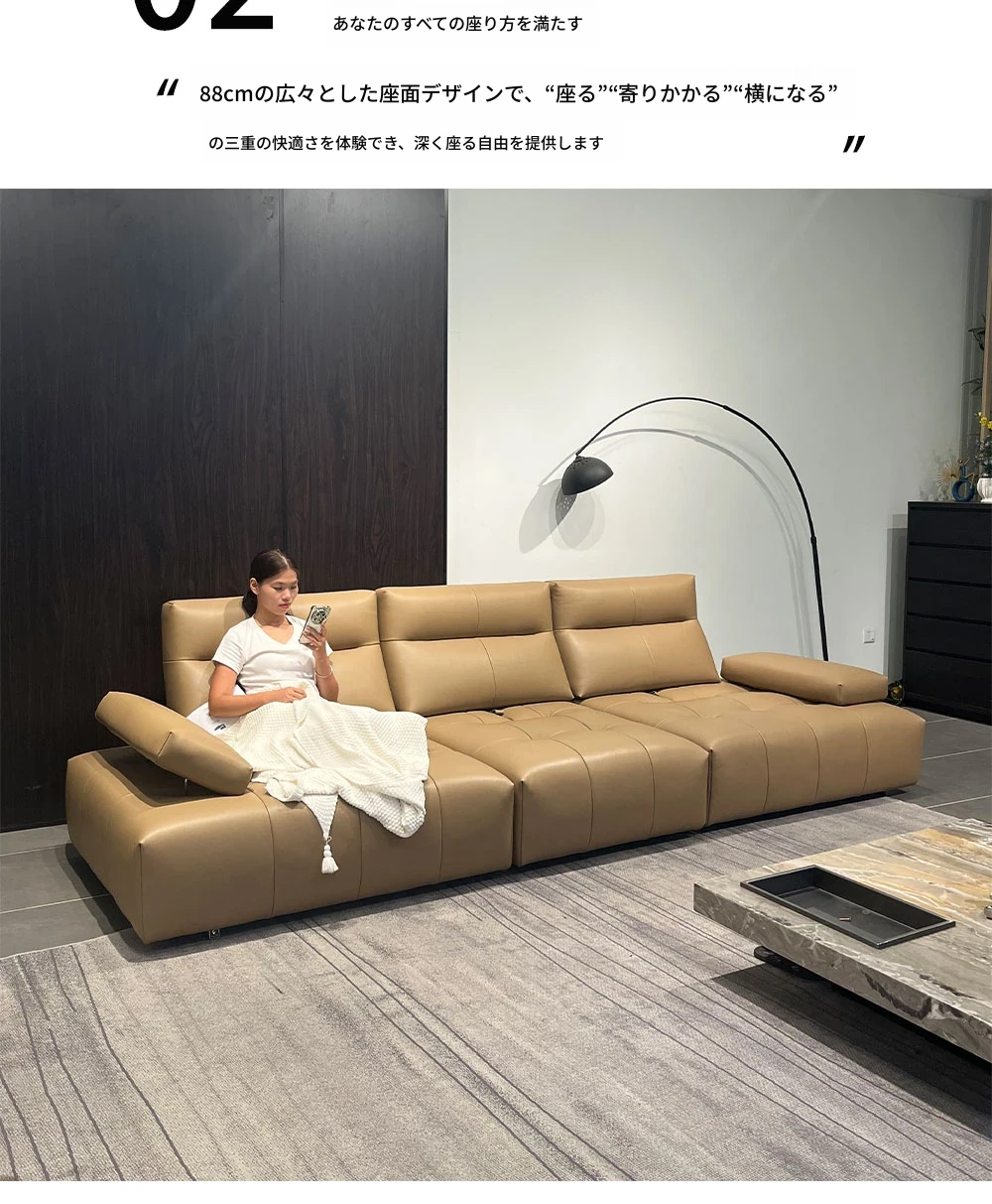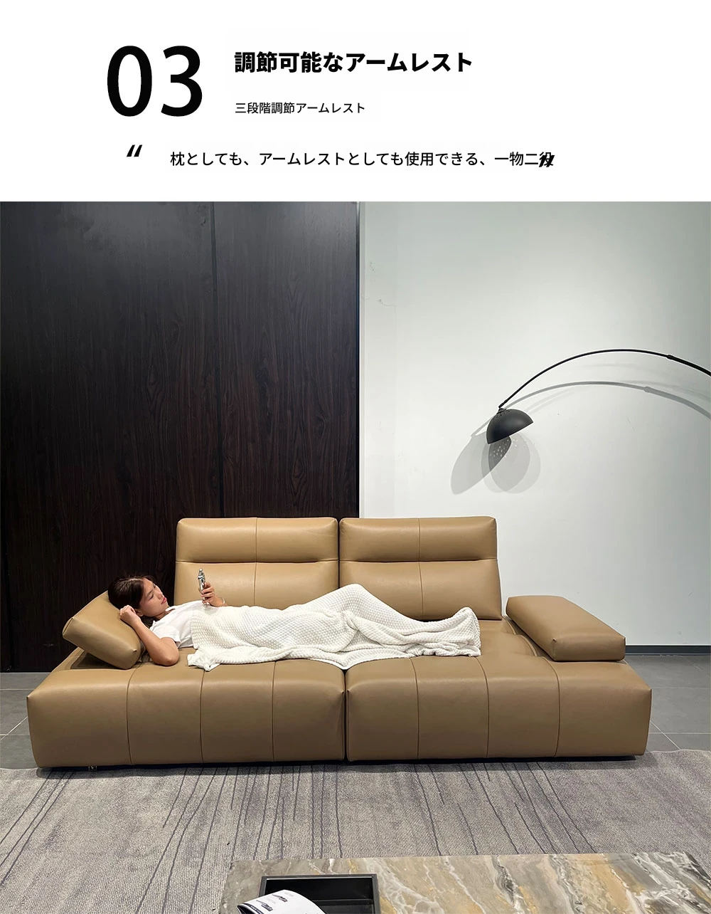 イタリアンミニマルデザイン 本革製トップグレイン牛革 リクライニングソファ 超ワイドシート 深い座面 センレモ818