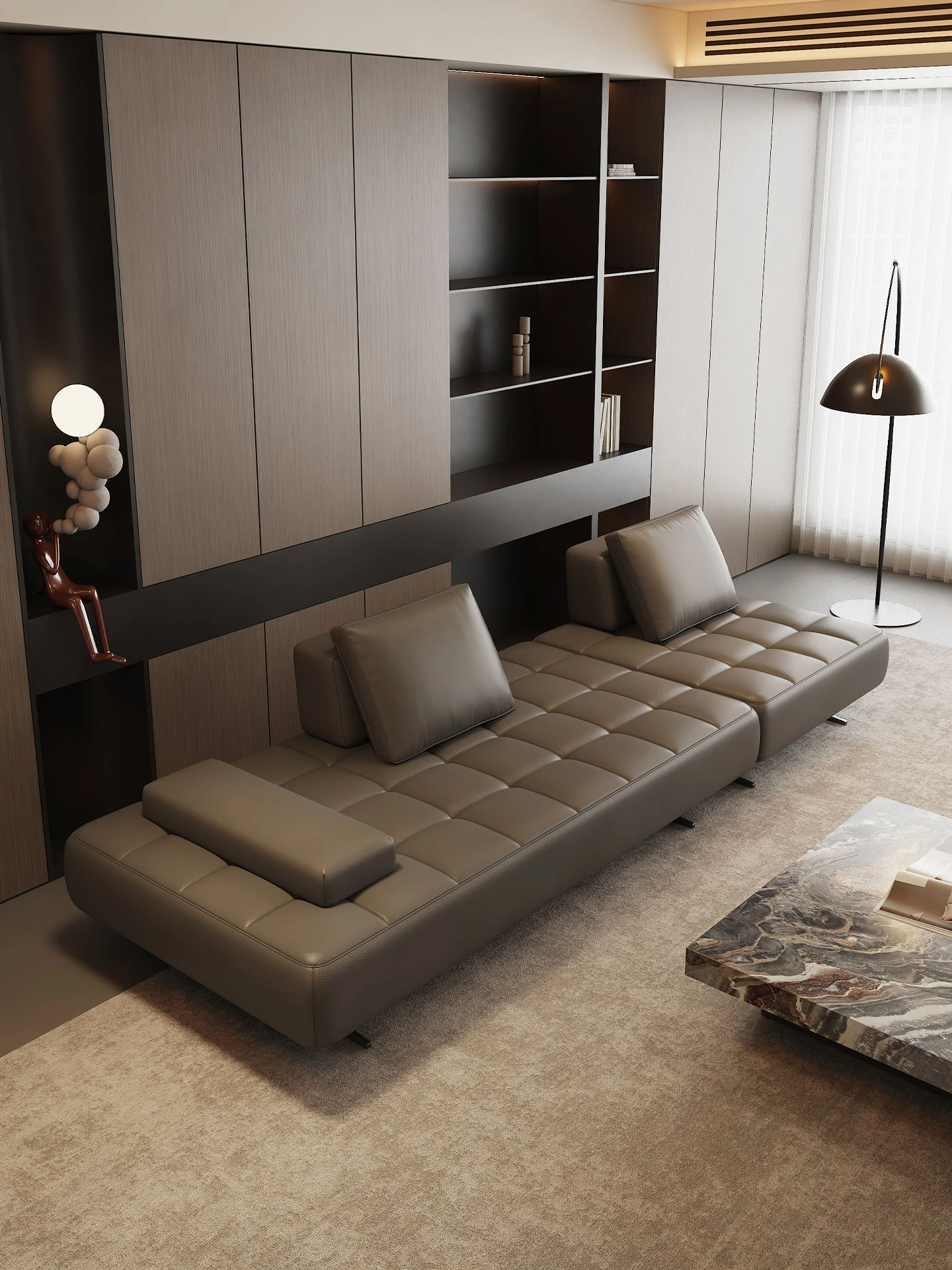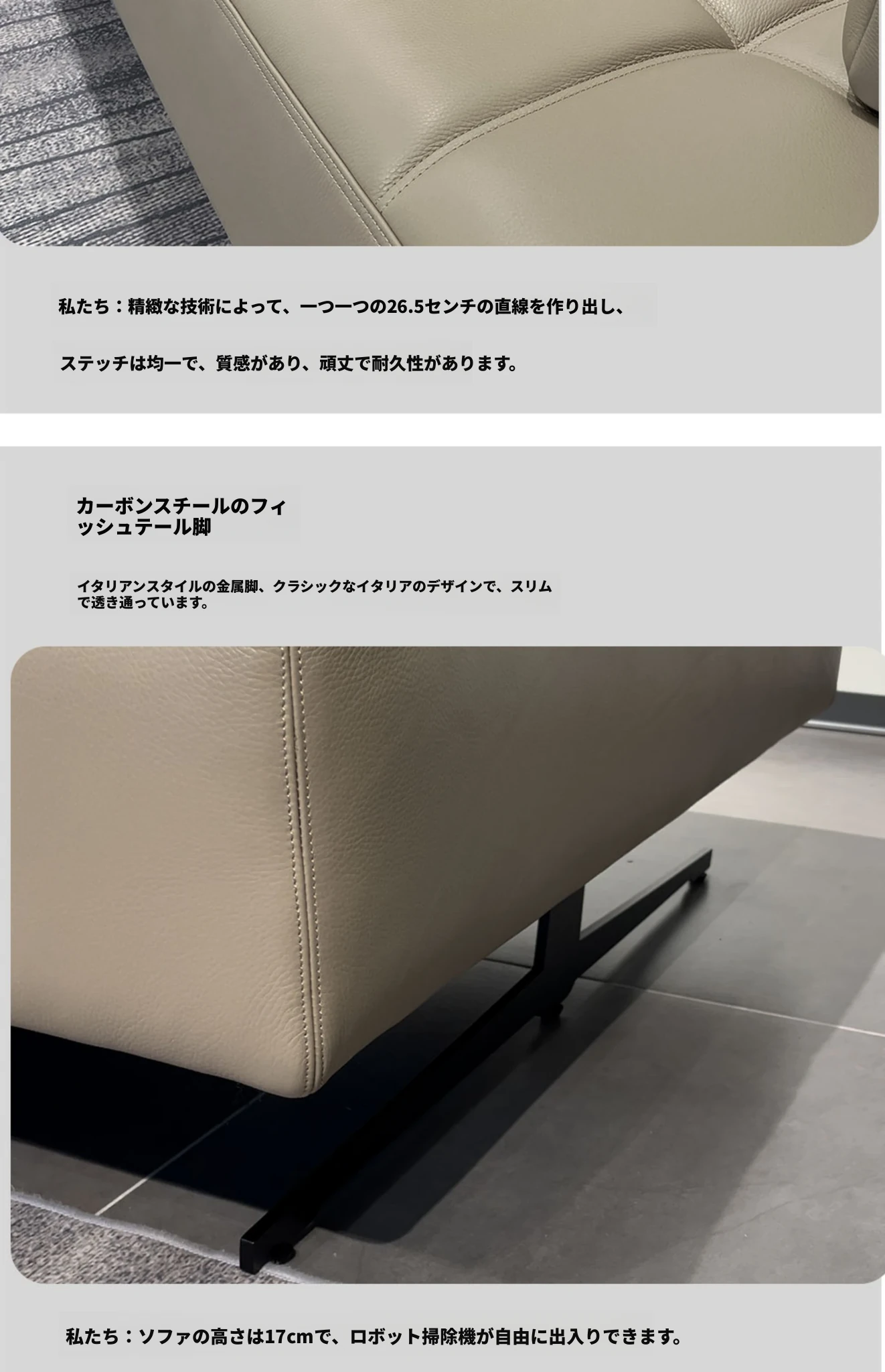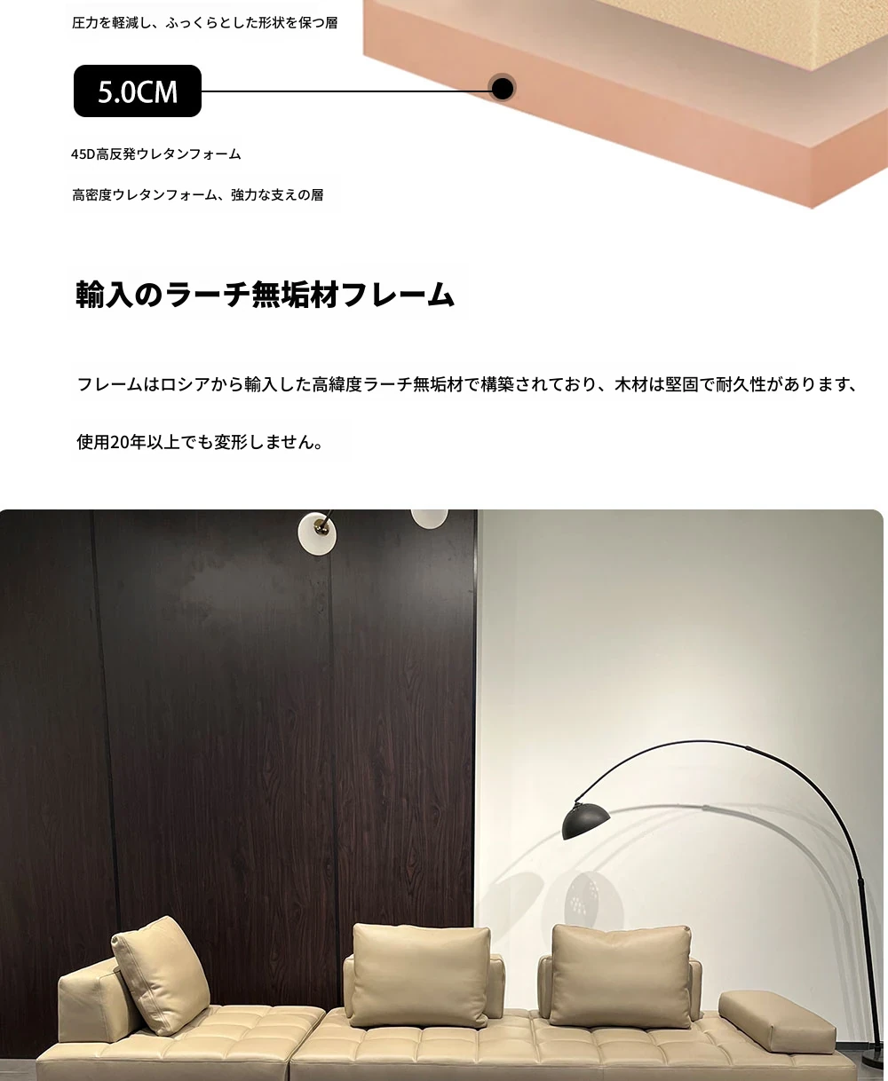 イタリアンミニマル・メビウス本革ソファ - ラグジュアリーな大平層別荘に最適!モジュール式で自由自在に配置可能、移動可能な背もたれで快適さを追求。あなたのリビングに洗練されたスタイルを。