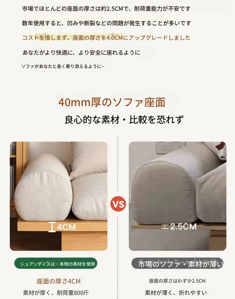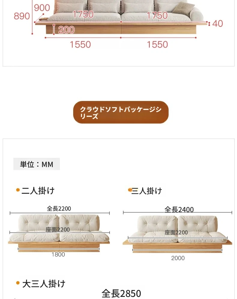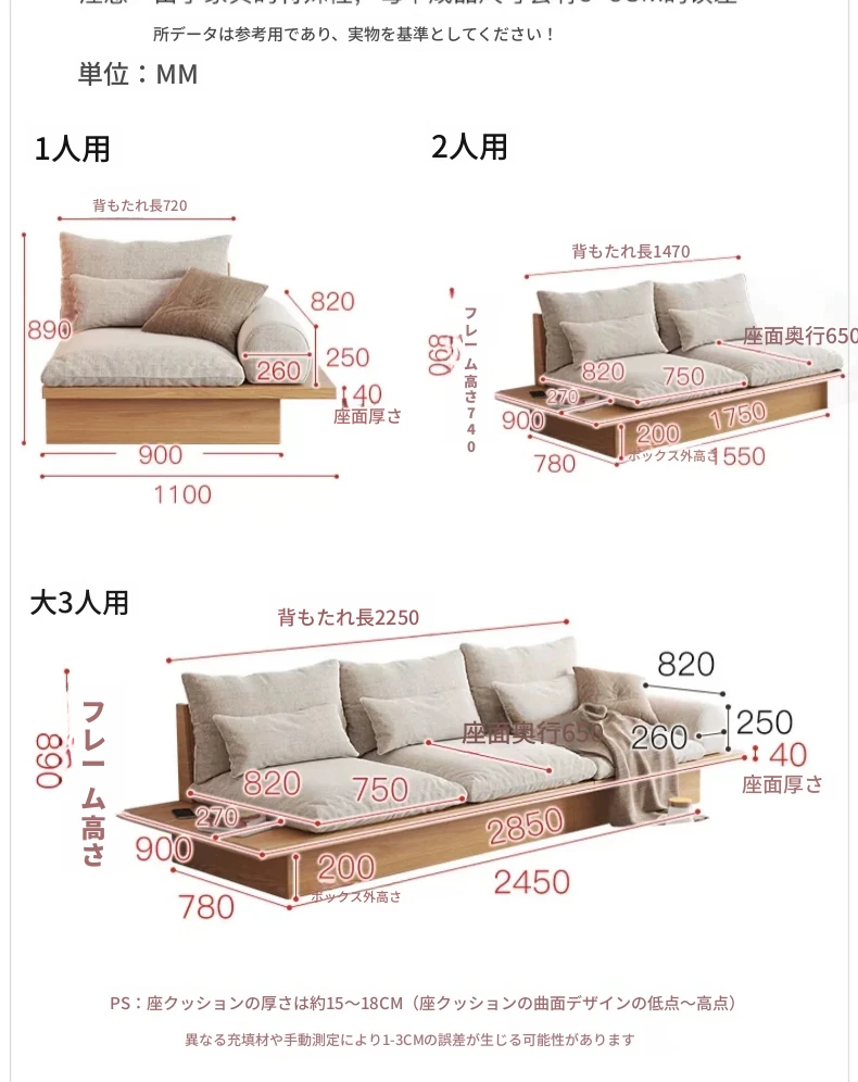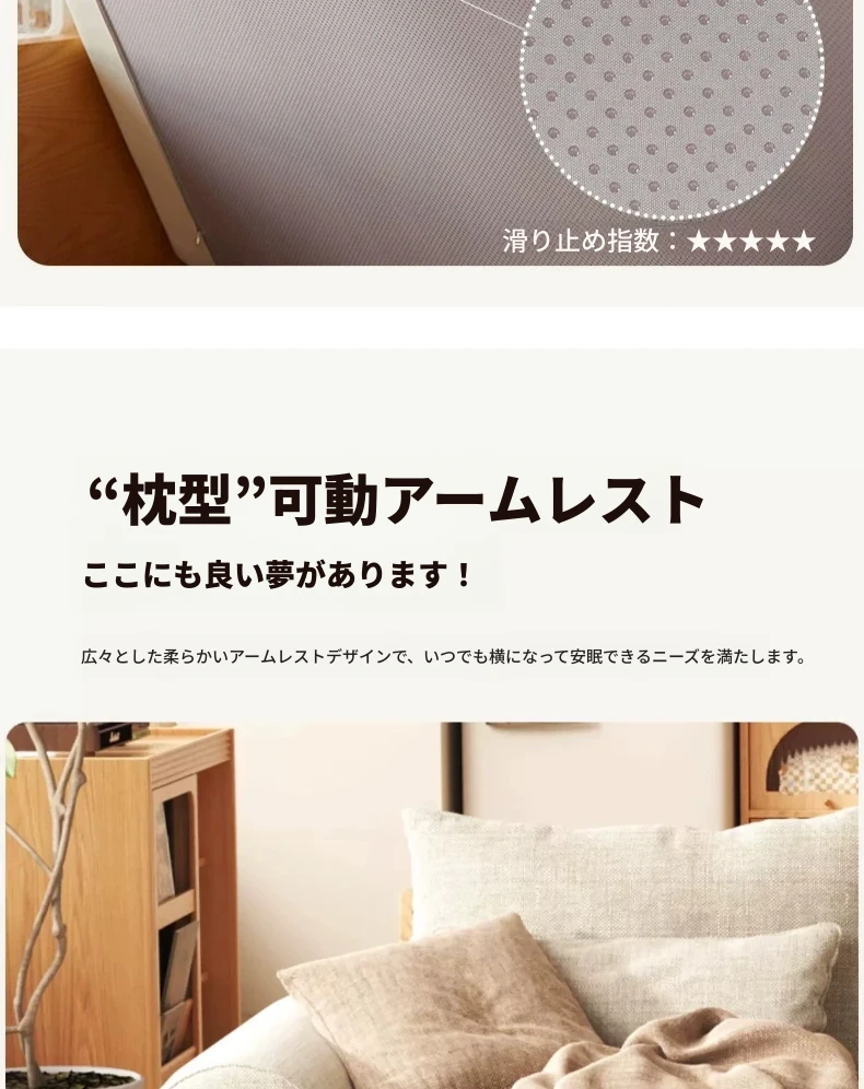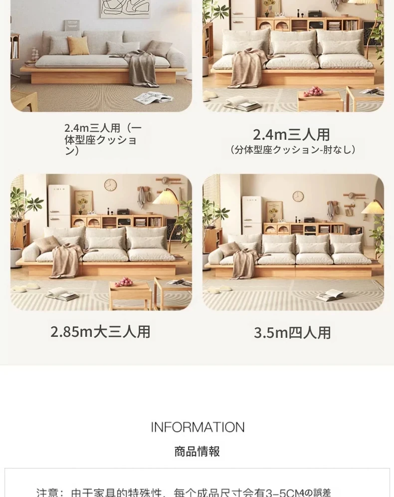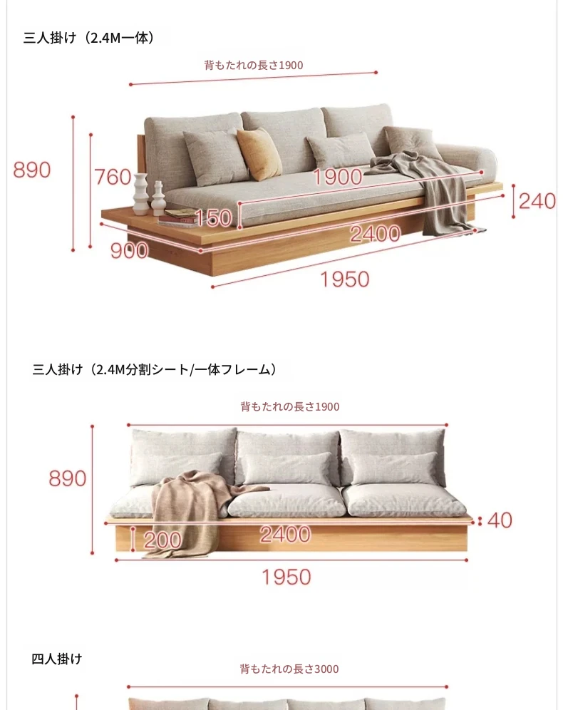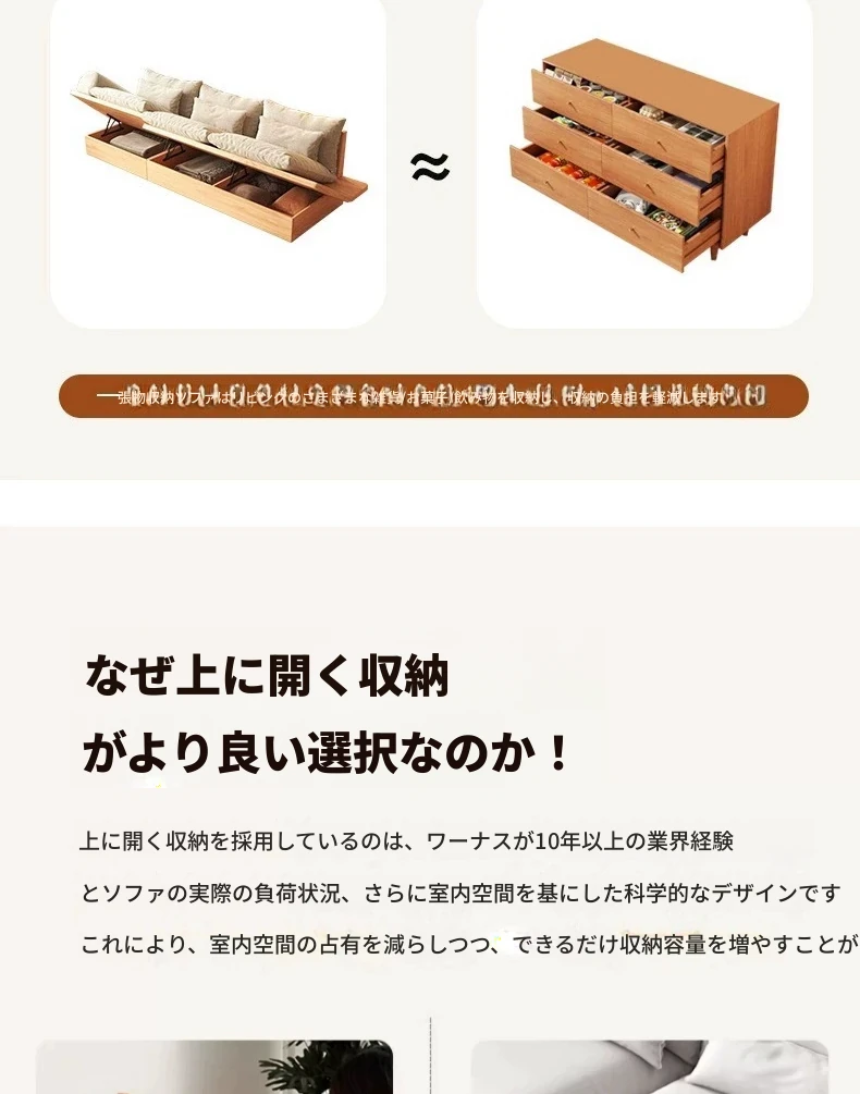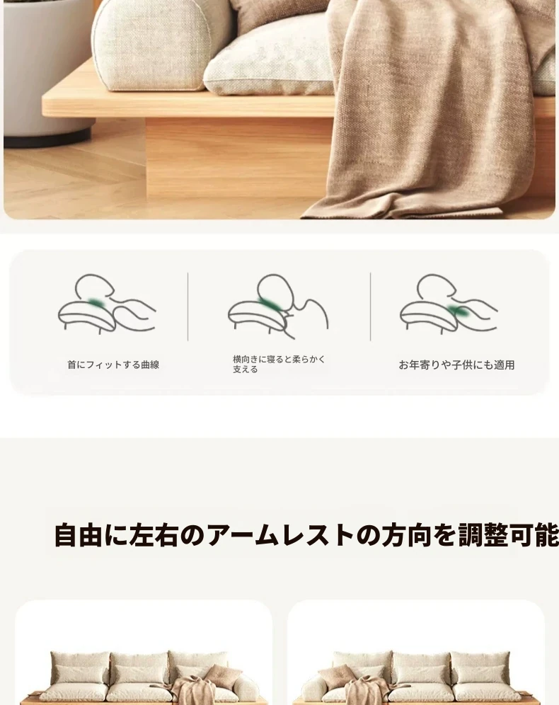 和風の無垢材リビングソファ - シンプルでモダンな小型スペース向け、収納機能付きの侘寂スタイル・フロアソファ。心地よい木の温もりで、あなたのリビングをスタイリッシュに演出します。