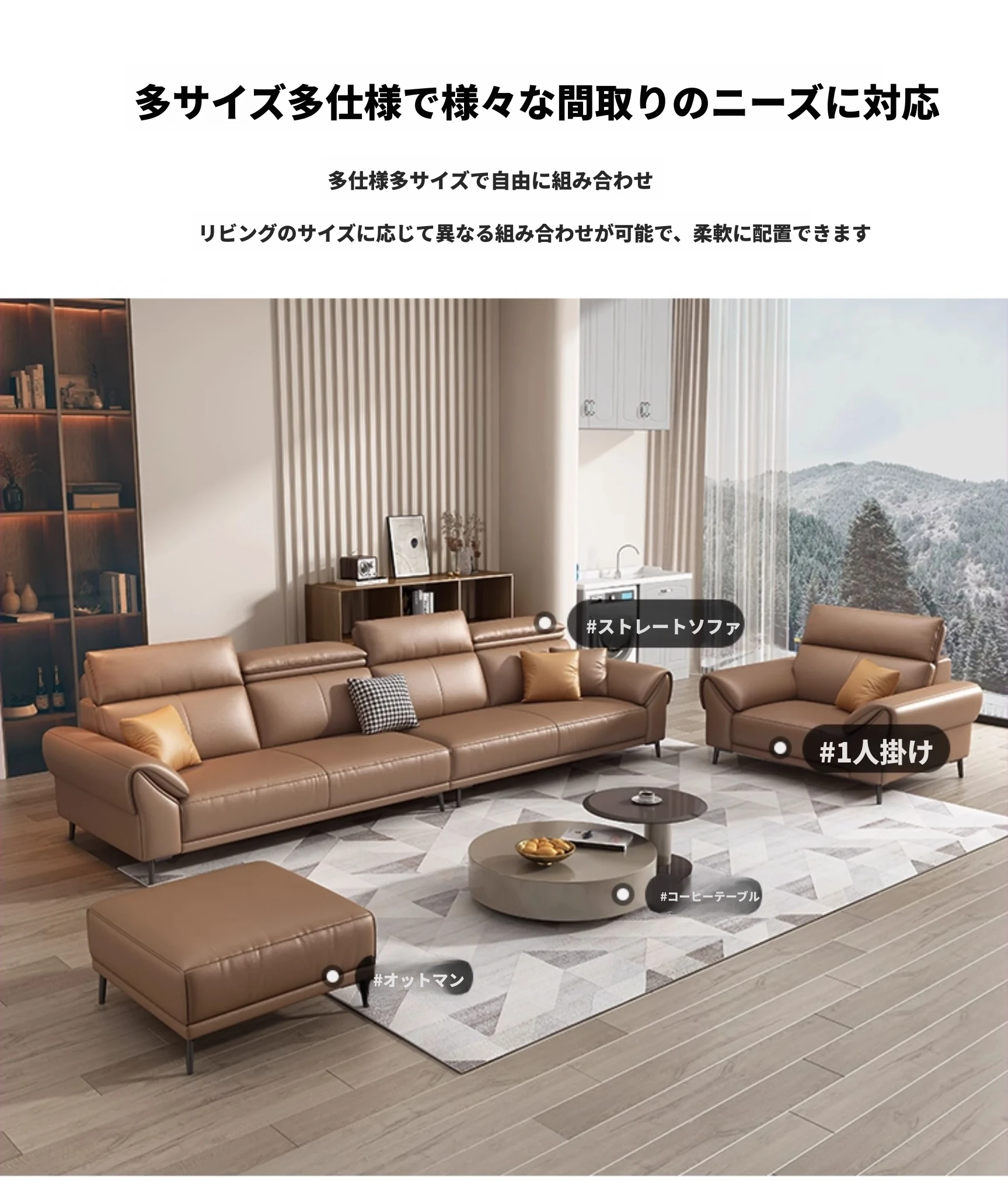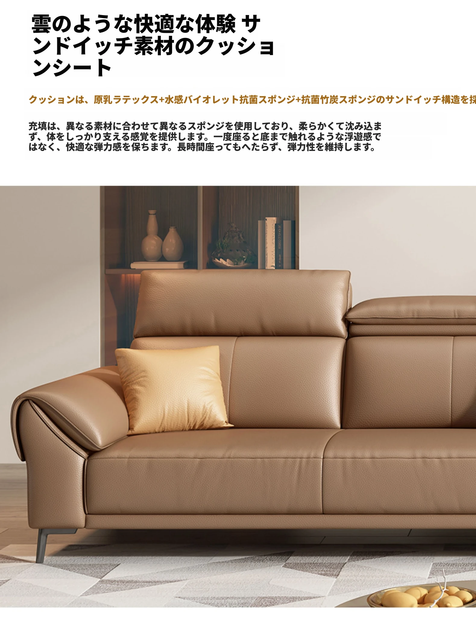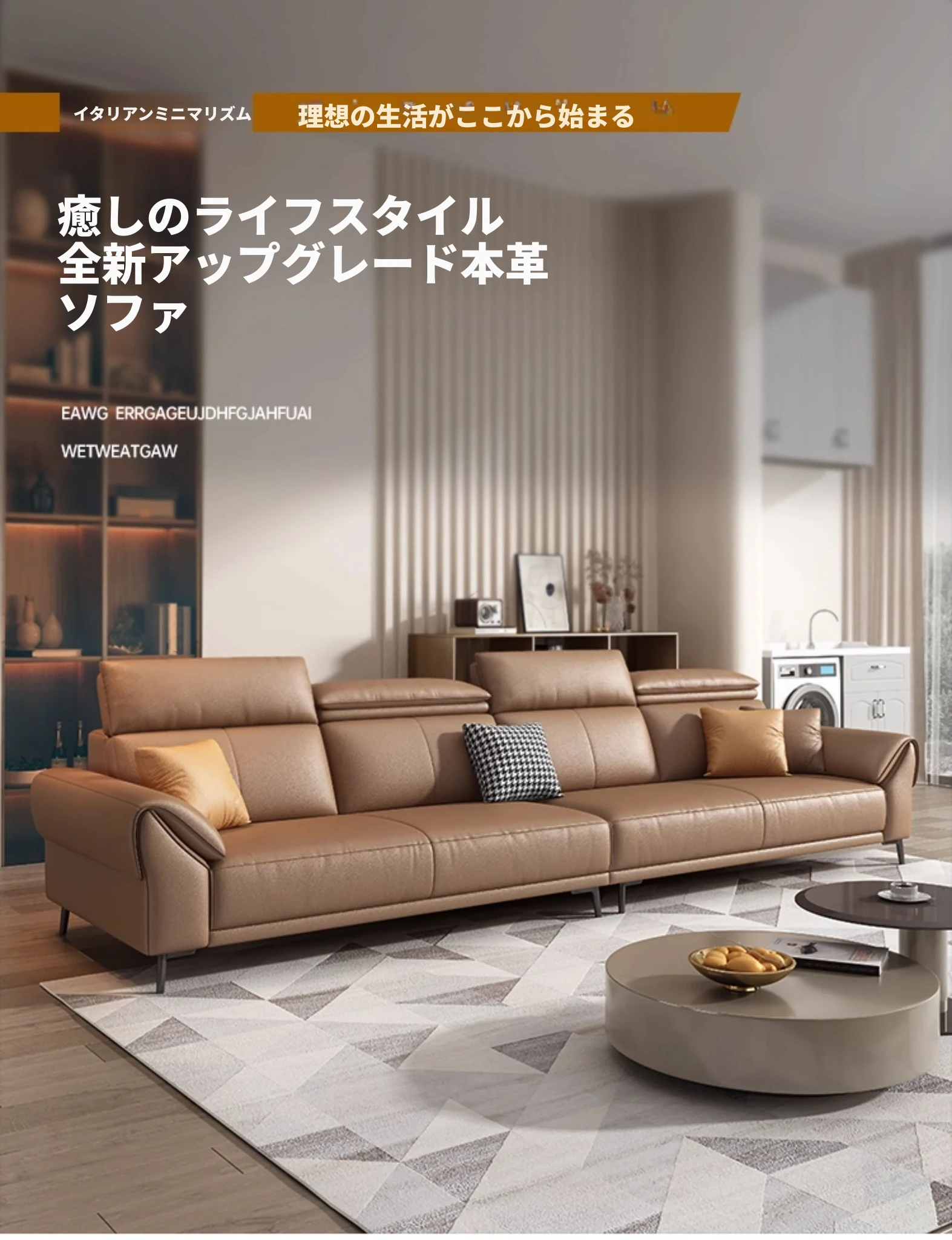 見葉本革ソファ イタリアンミニマリズム リビングルーム用 ヴィンテージ風 小型スペースにぴったり 上質なトップグレイン牛革使用 直線的なデザイン 三人掛け皮革ソファ