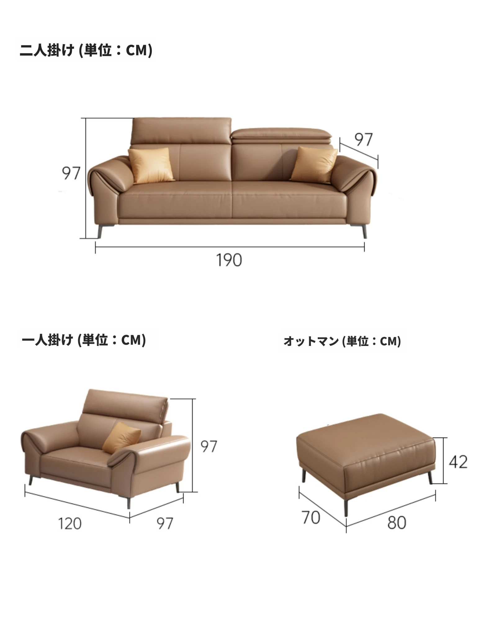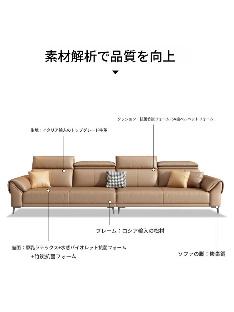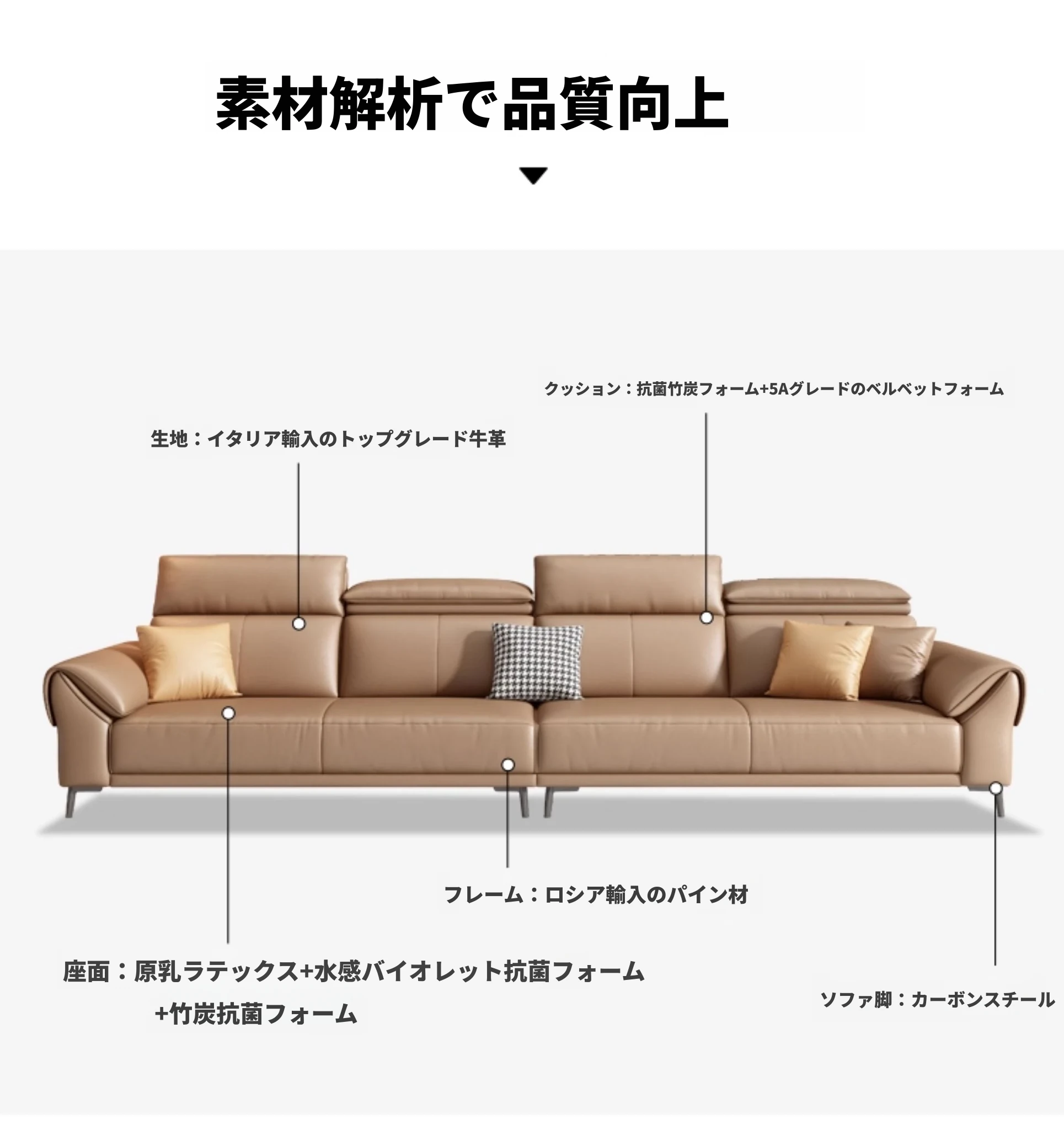 見葉本革ソファ イタリアンミニマリズム リビングルーム用 ヴィンテージ風 小型スペースにぴったり 上質なトップグレイン牛革使用 直線的なデザイン 三人掛け皮革ソファ
