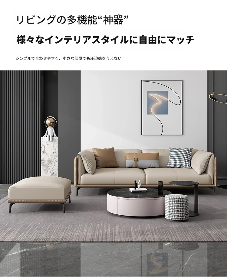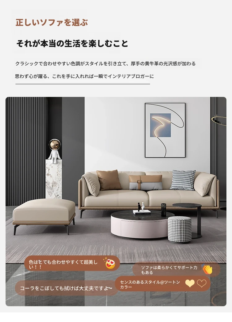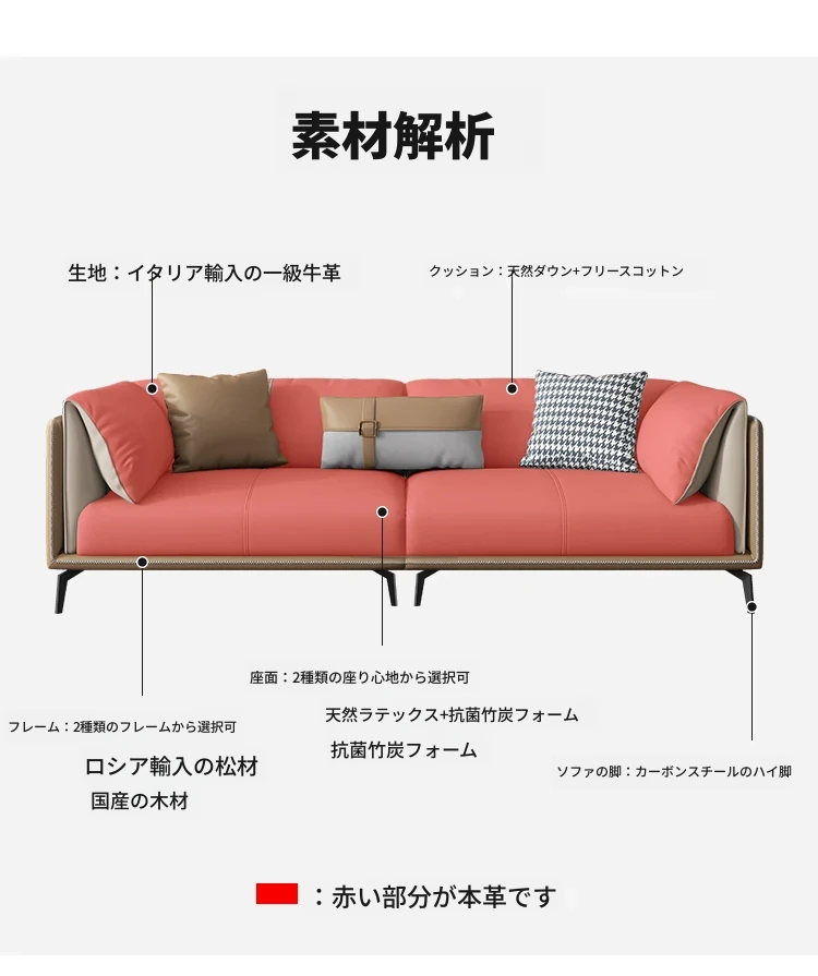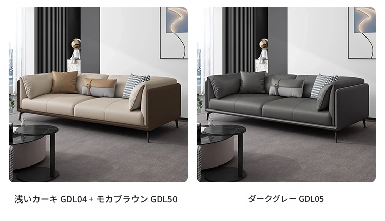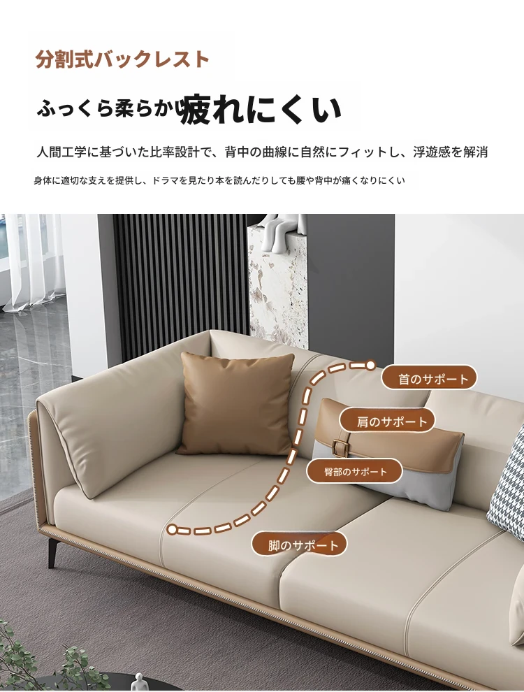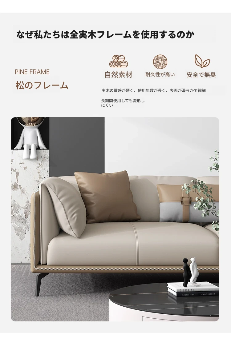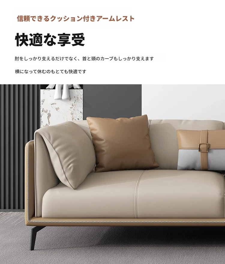 見葉イタリアンミニマル本革ソファ - 高級感溢れるレザー使用、コンパクトな三人掛けデザインで、小さな空間にもぴったり!ダウン入りで贅沢な座り心地を実現。