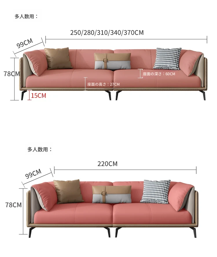 【輸出版】2人掛け+貴妃掛け2.85メートル