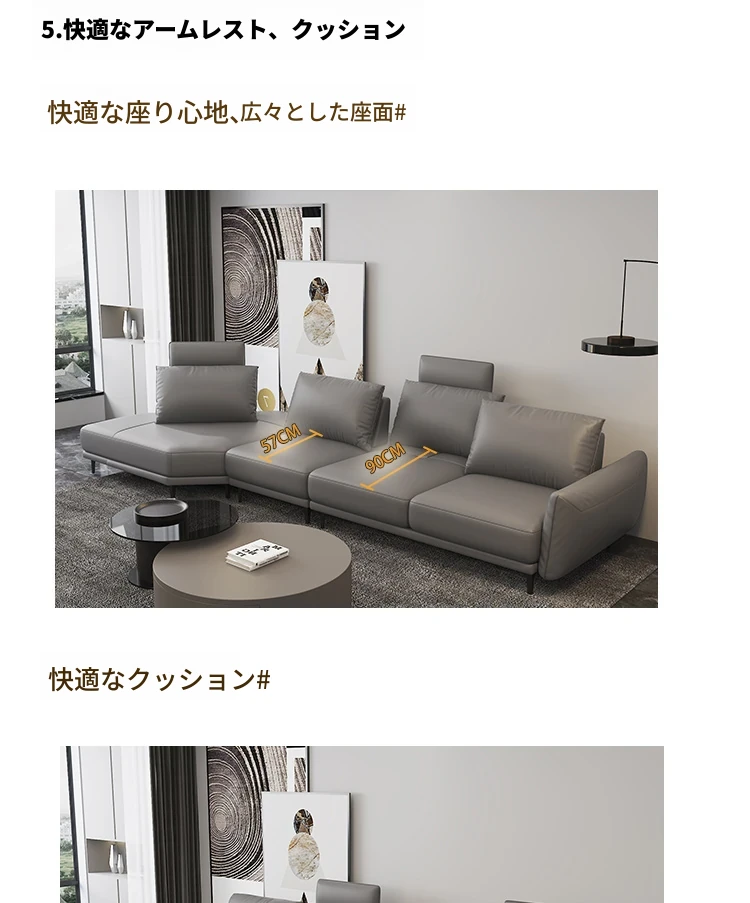 本革製ソファ 左右コーナー組合式 リクライニング機能付き ミニマルデザイン 超深座面 ジュリア2563 - 快適さとスタイルを両立した究極のリビング空間を実現!
