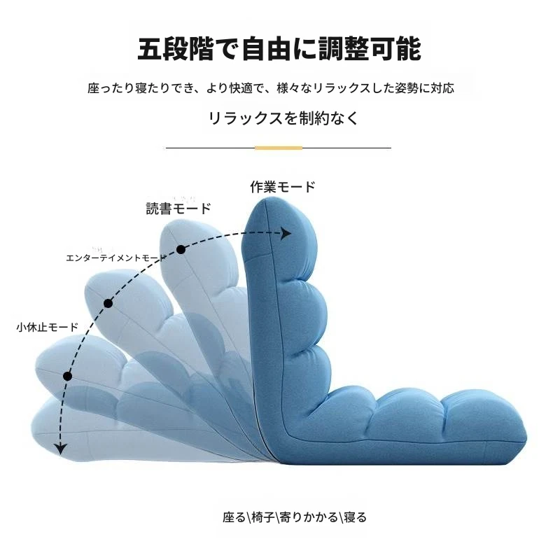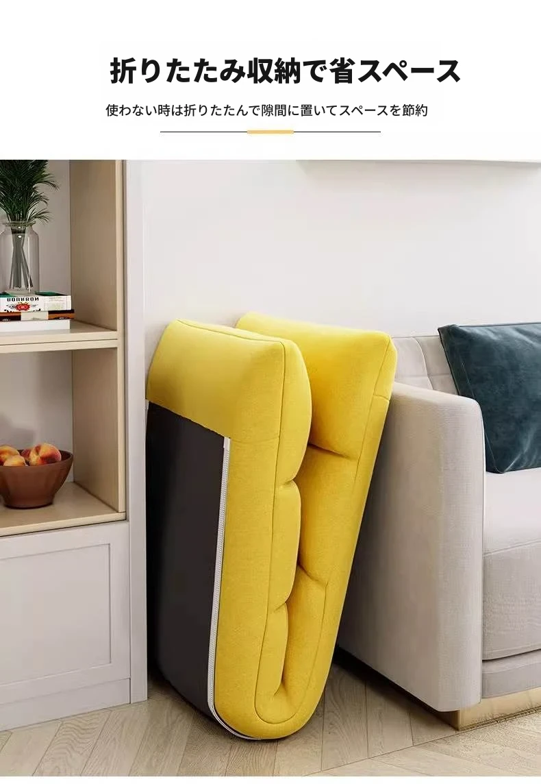 リラックスできる!日本風の一人用折りたたみソファ。タタミスタイルで、ベッドサイドや寮に最適。快適な背もたれ付き、パソコン作業にも最適!