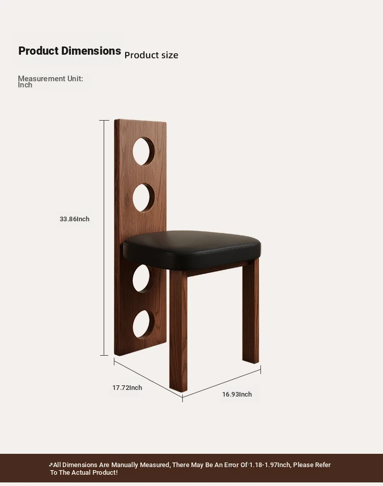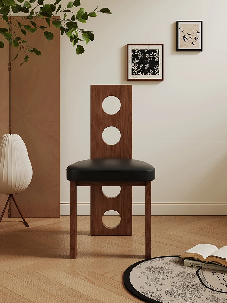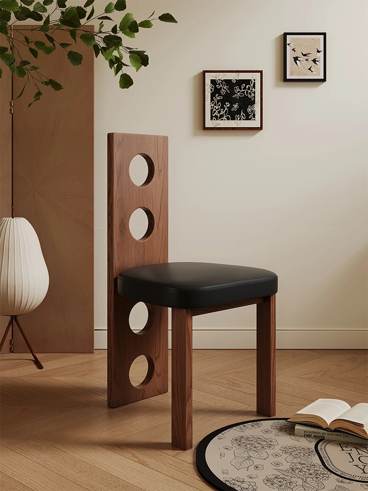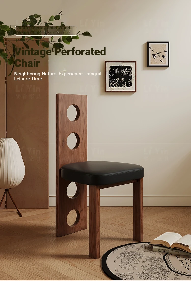 Liyin Vintage Scandinavian Wabi-Sabi Solid Wood Dining Chair - Creative Designer Furniture for Guesthouses, Cozy Armchair with Backrest for Relaxation