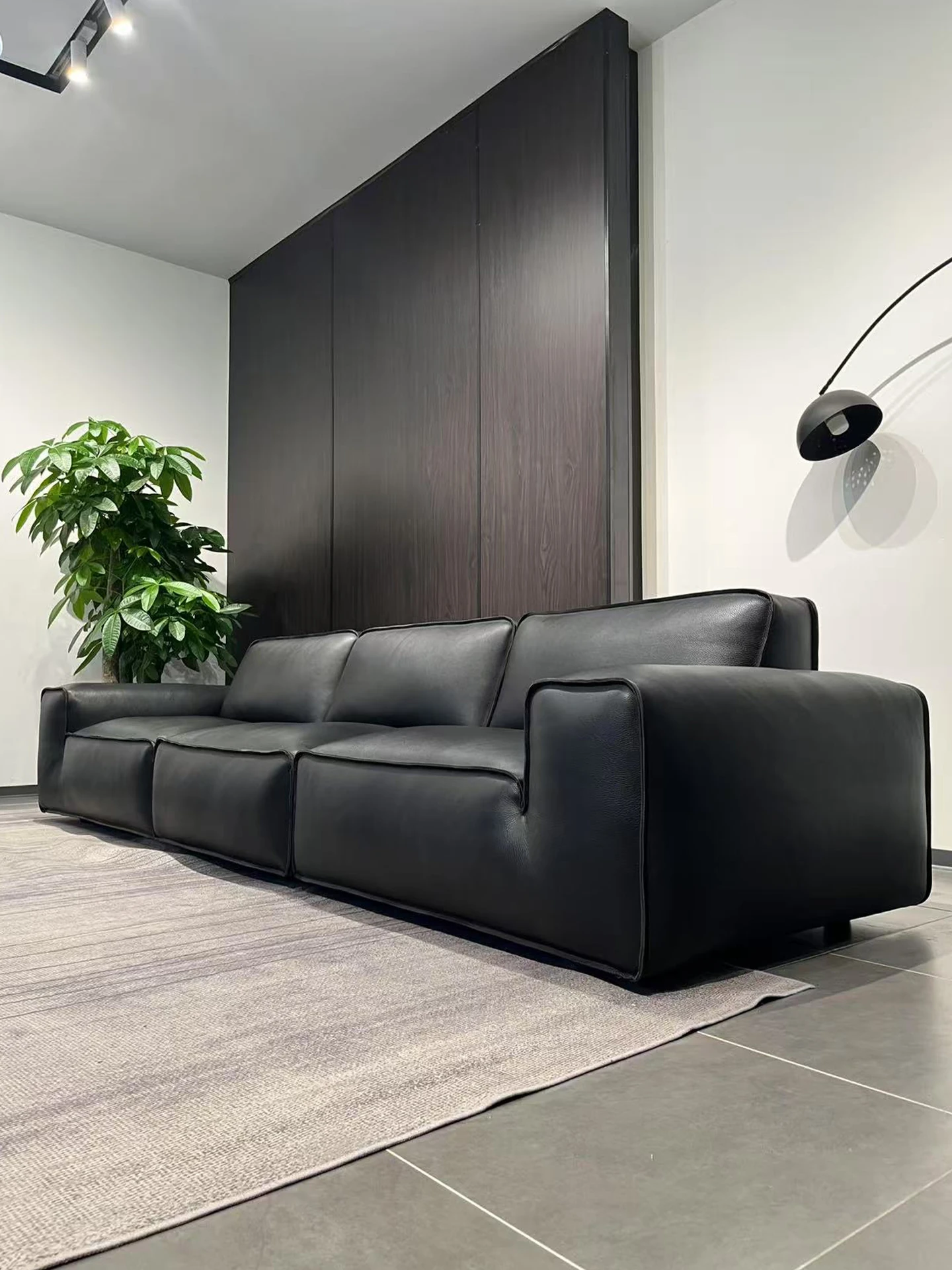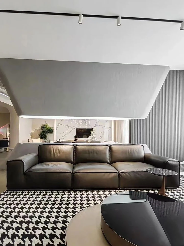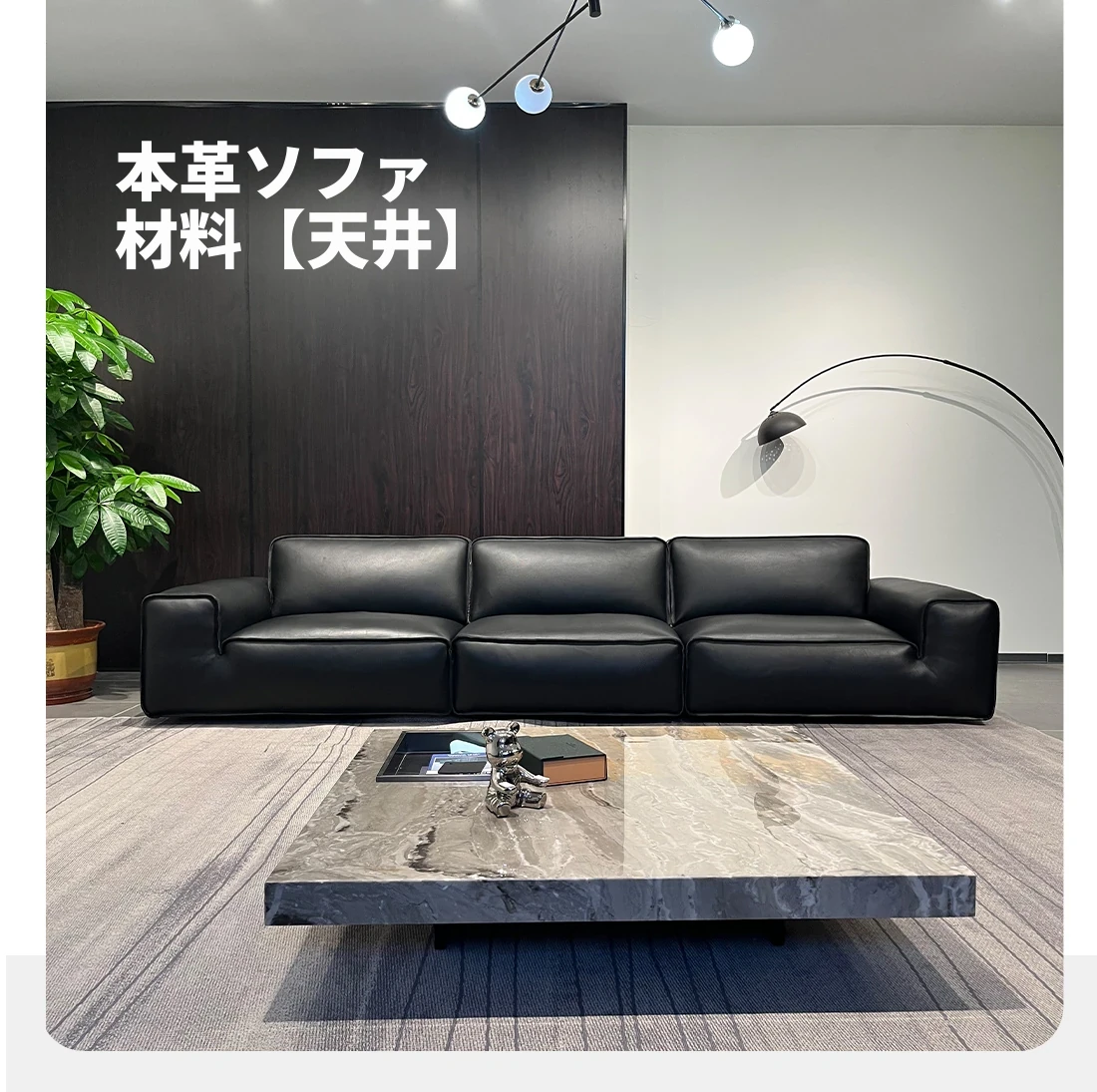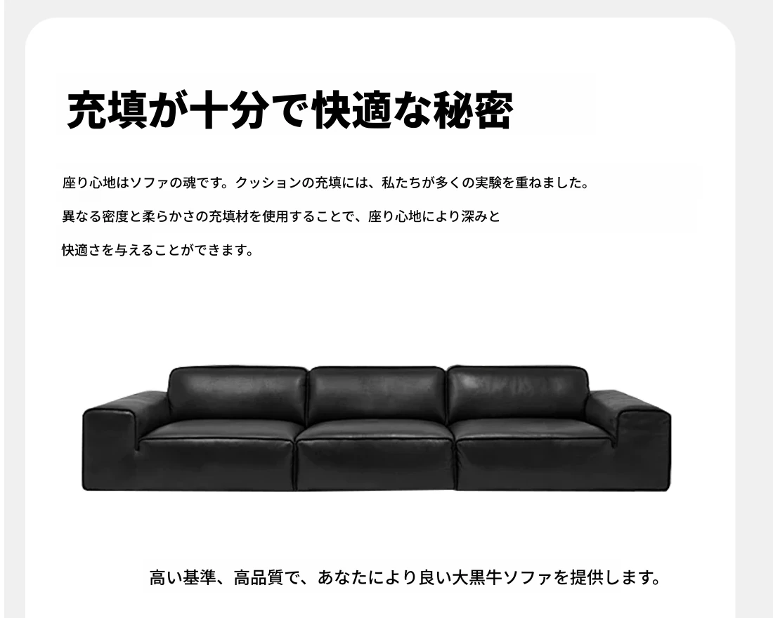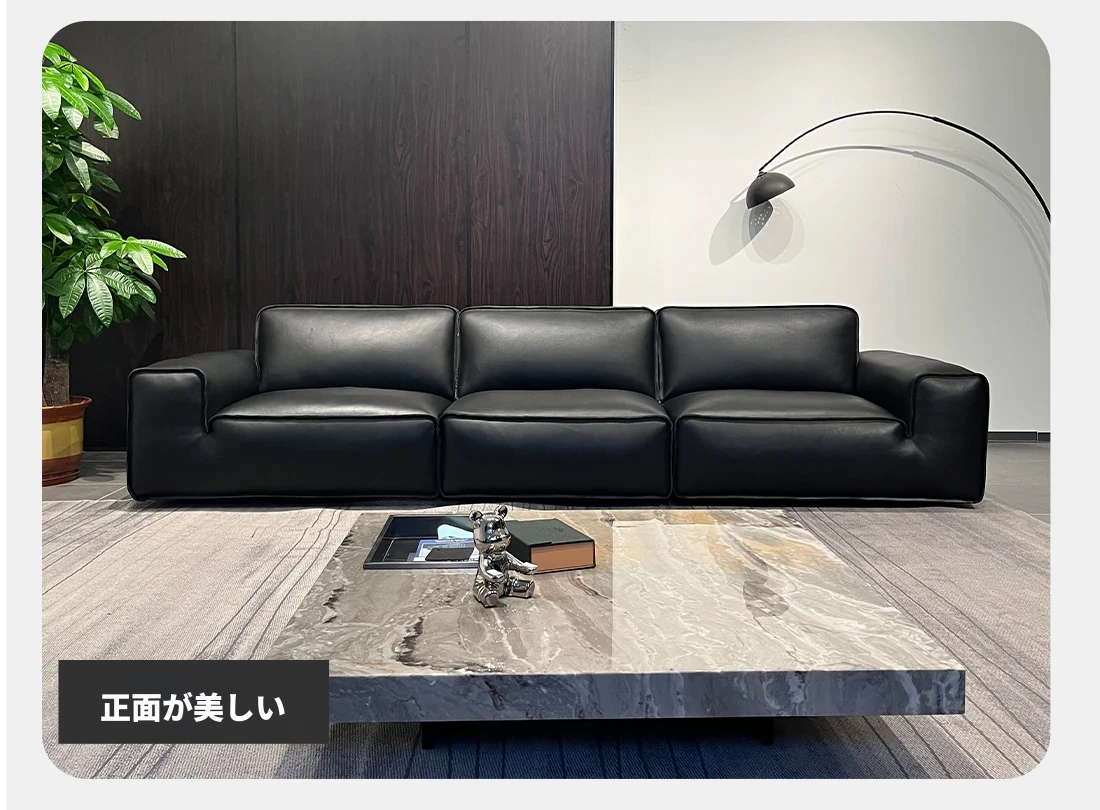 ダイヘイギュウ本革全青革ソファー - イタリアンミニマルデザインの高級ダウンソファー、リビングにぴったりなスタイリッシュな直排スタイル!