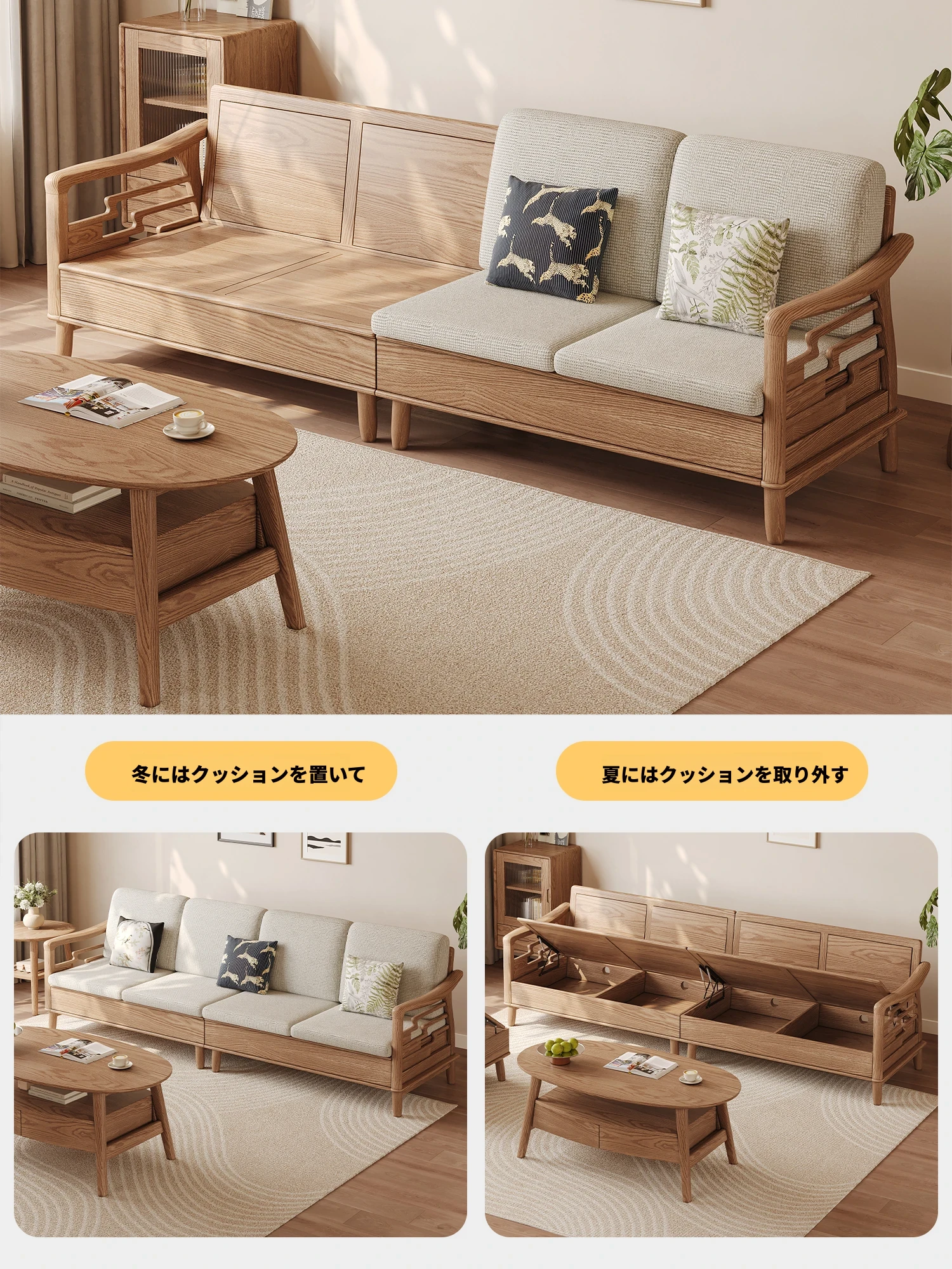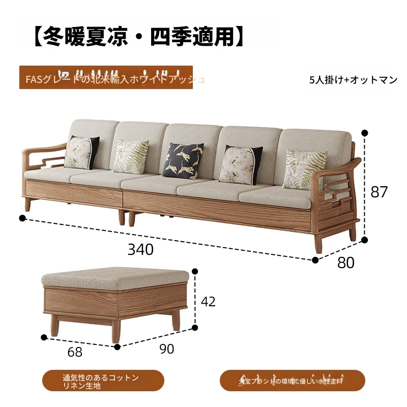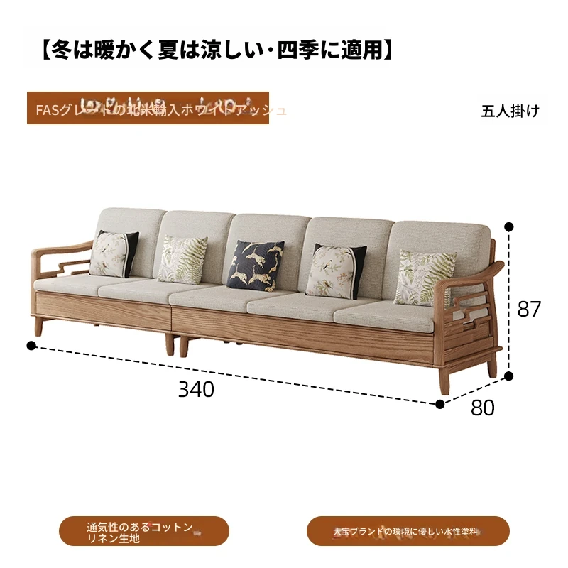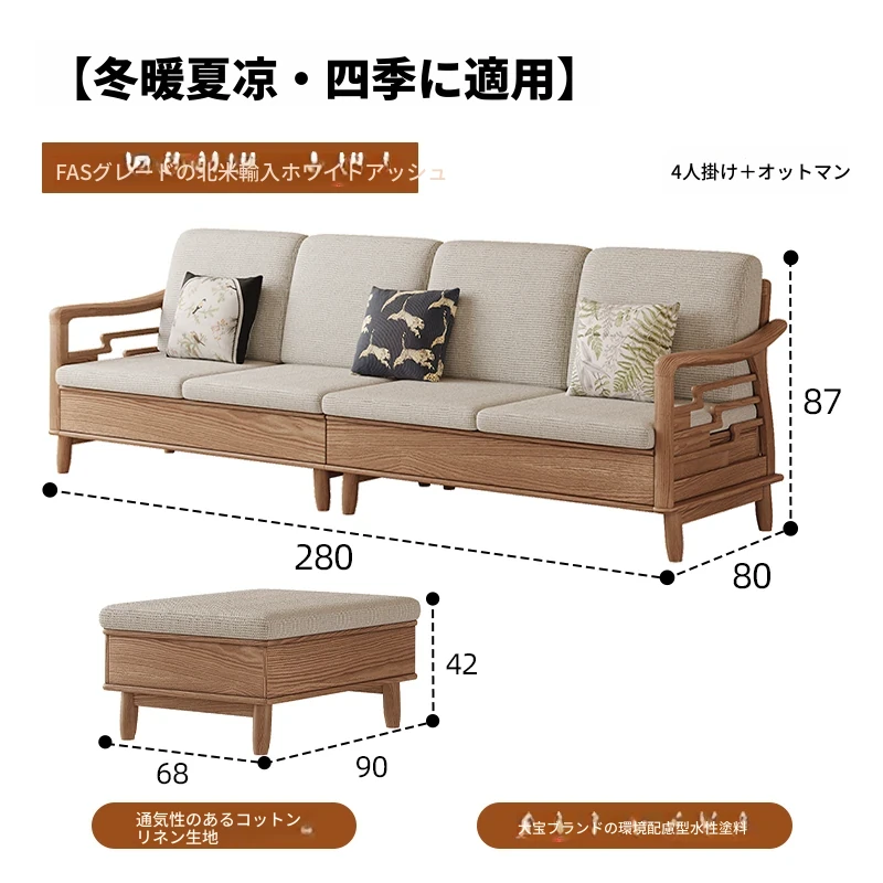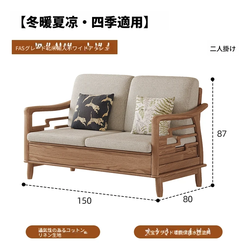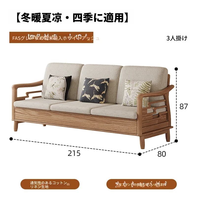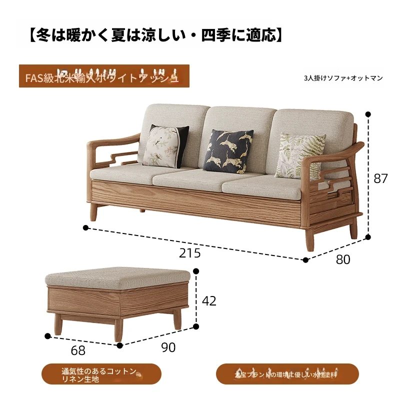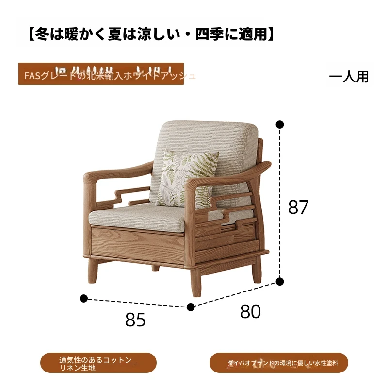 ホワイトアッシュ無垢材ソファセット|モダンミニマリストデザイン|小型リビングに最適|冬夏両用&高収納力|おしゃれで機能的な家具