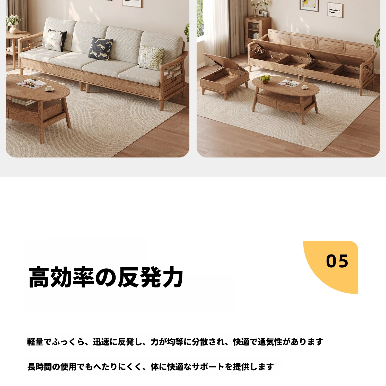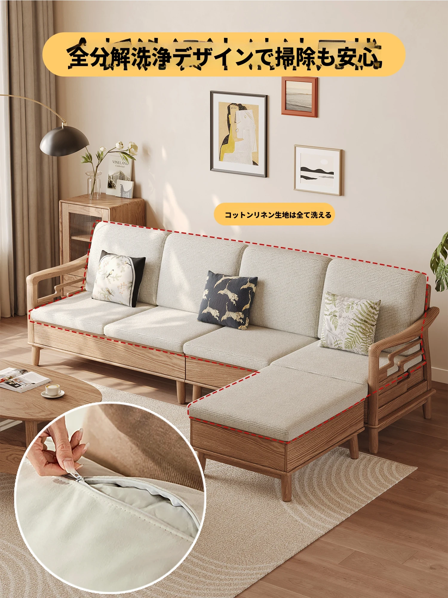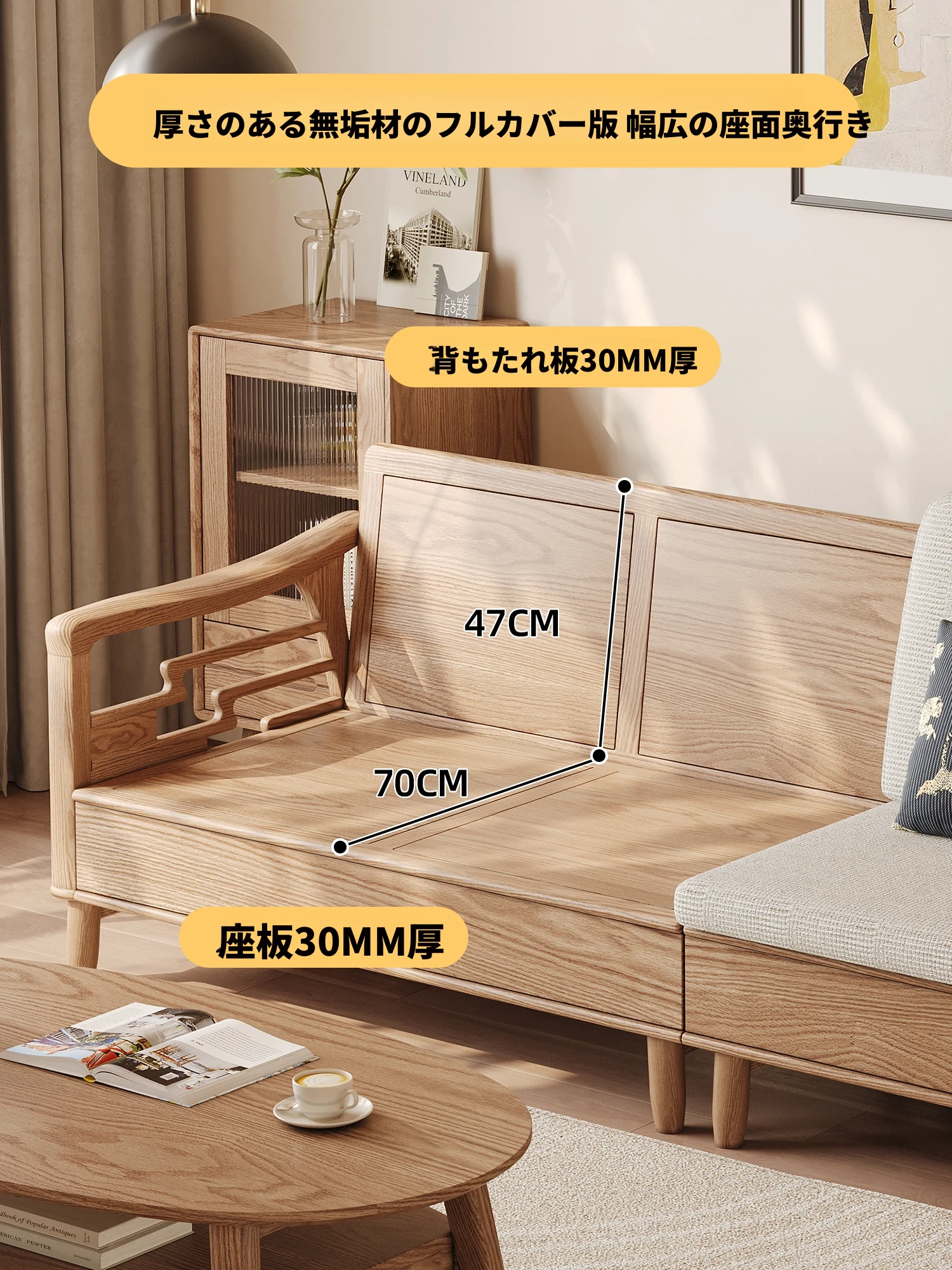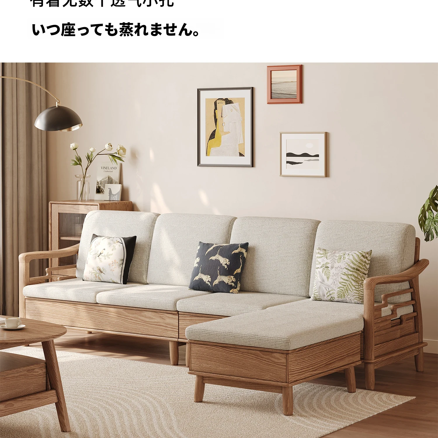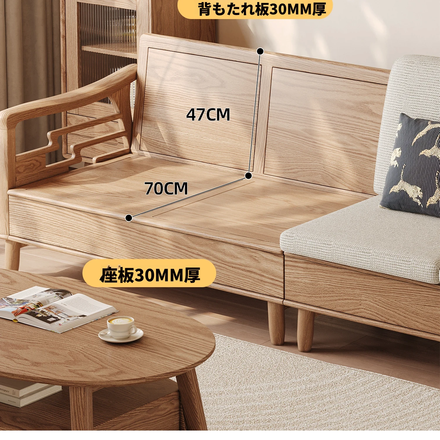 ホワイトアッシュ無垢材ソファセット|モダンミニマリストデザイン|小型リビングに最適|冬夏両用&高収納力|おしゃれで機能的な家具