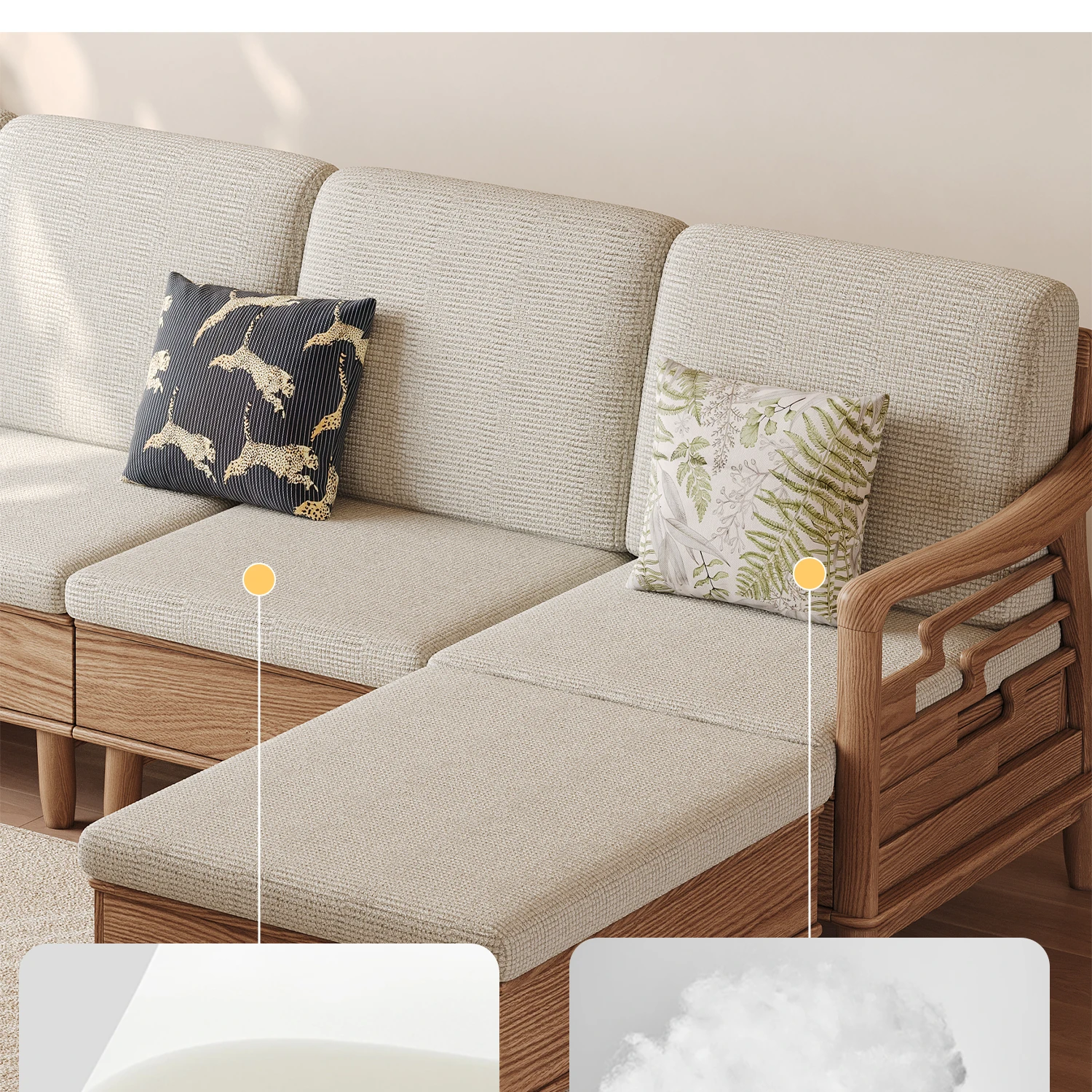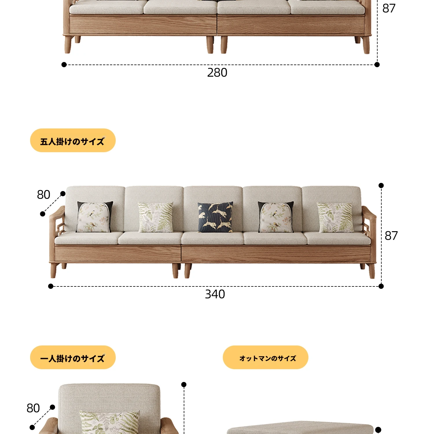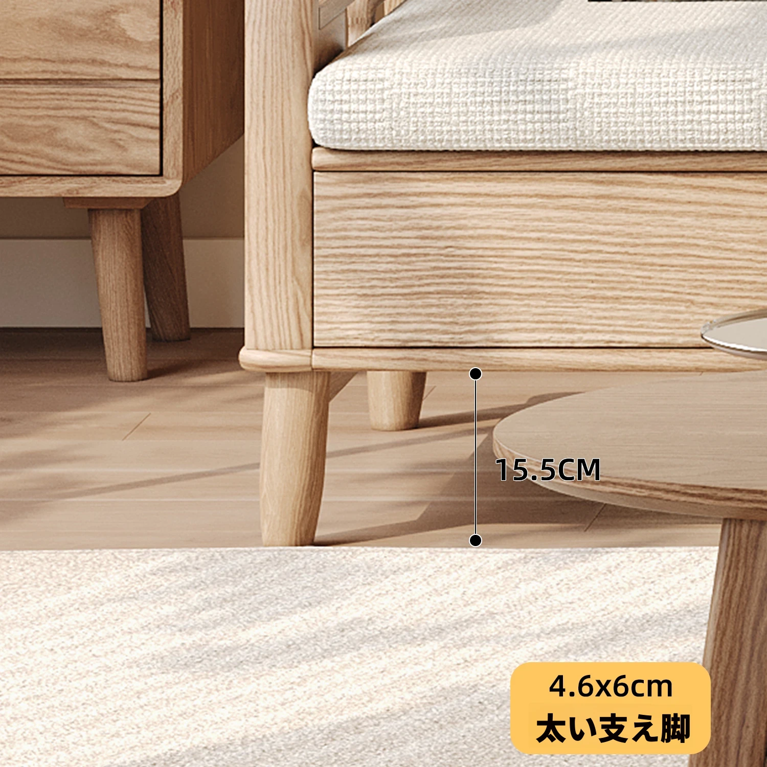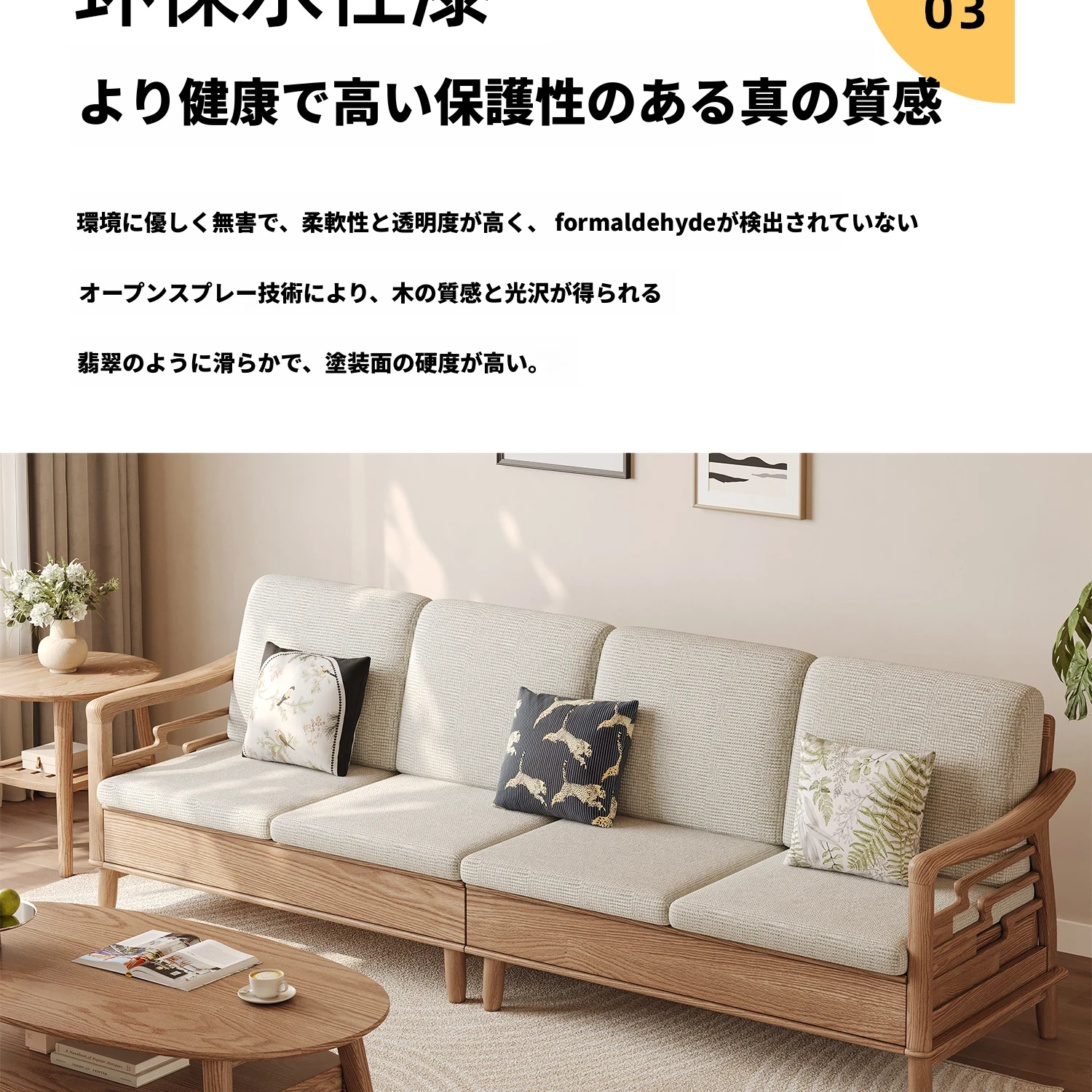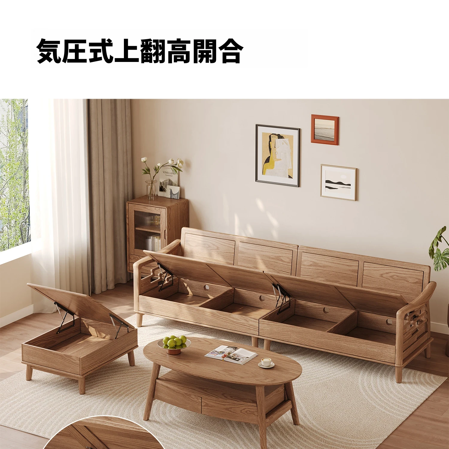 ホワイトアッシュ無垢材ソファセット|モダンミニマリストデザイン|小型リビングに最適|冬夏両用&高収納力|おしゃれで機能的な家具