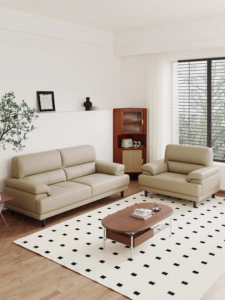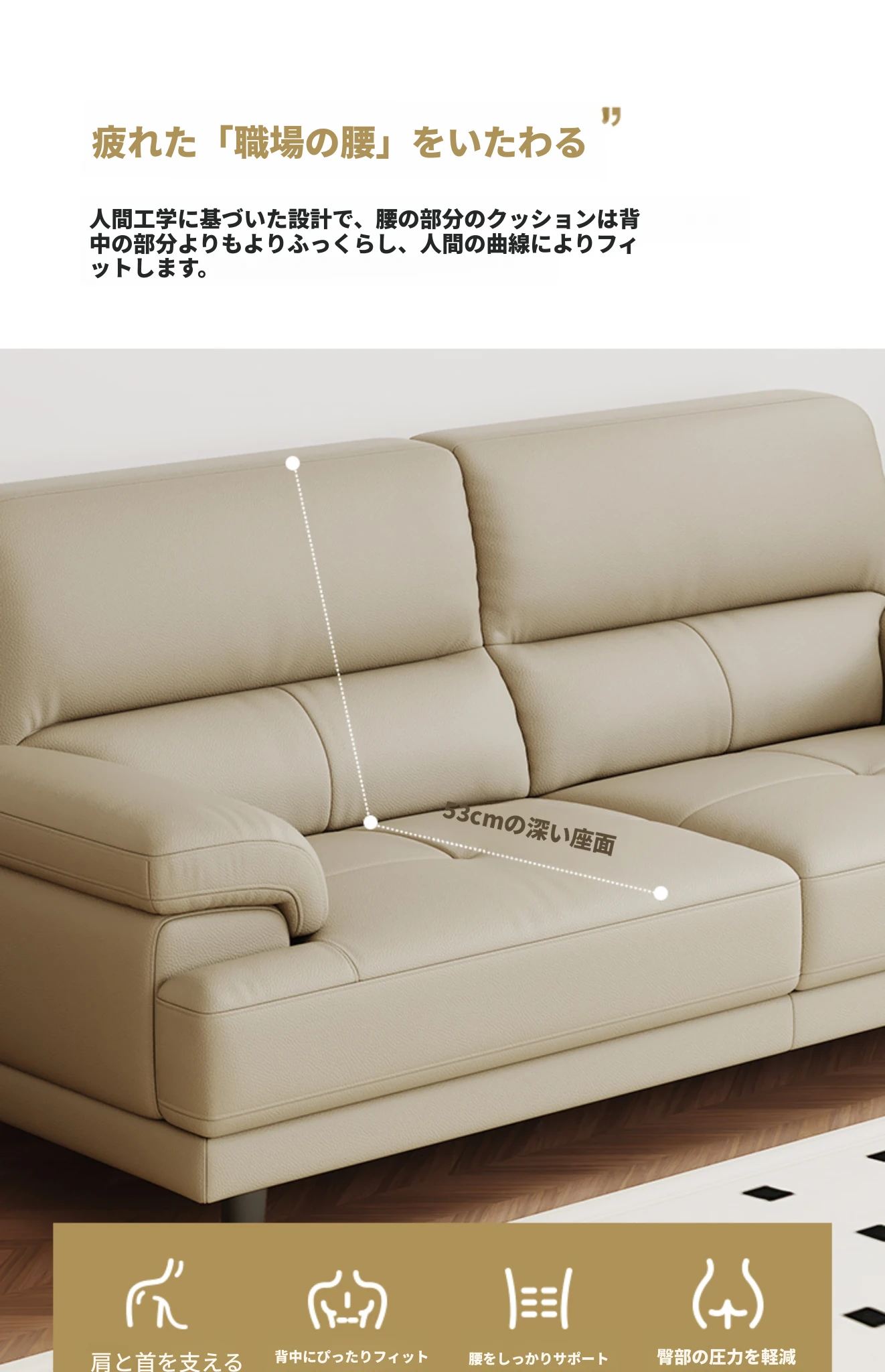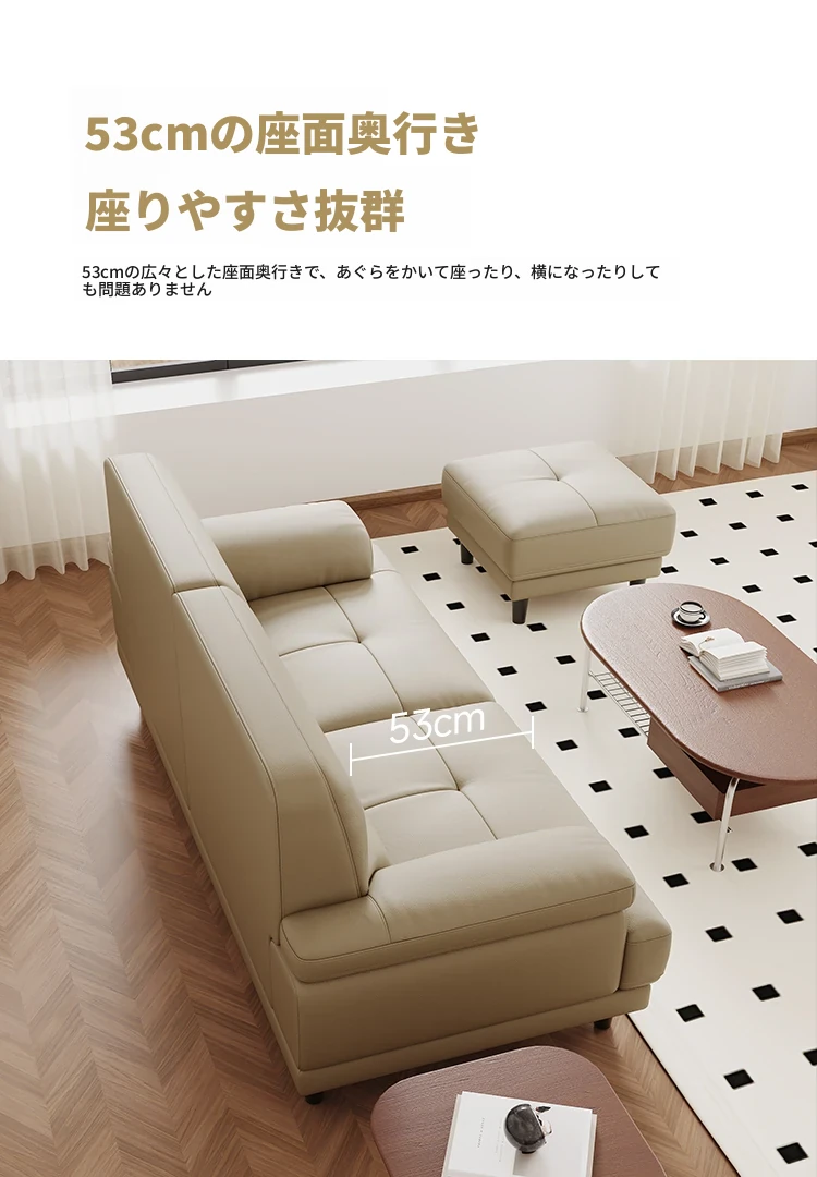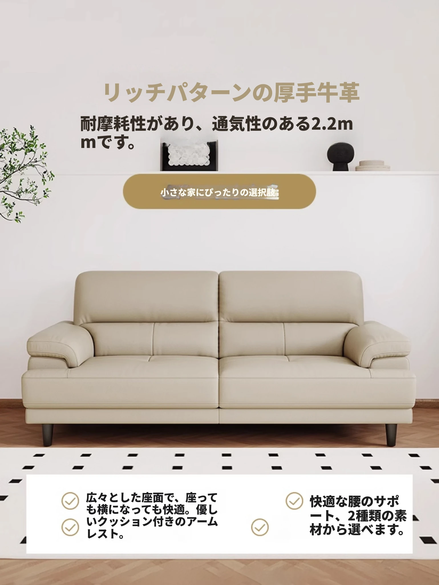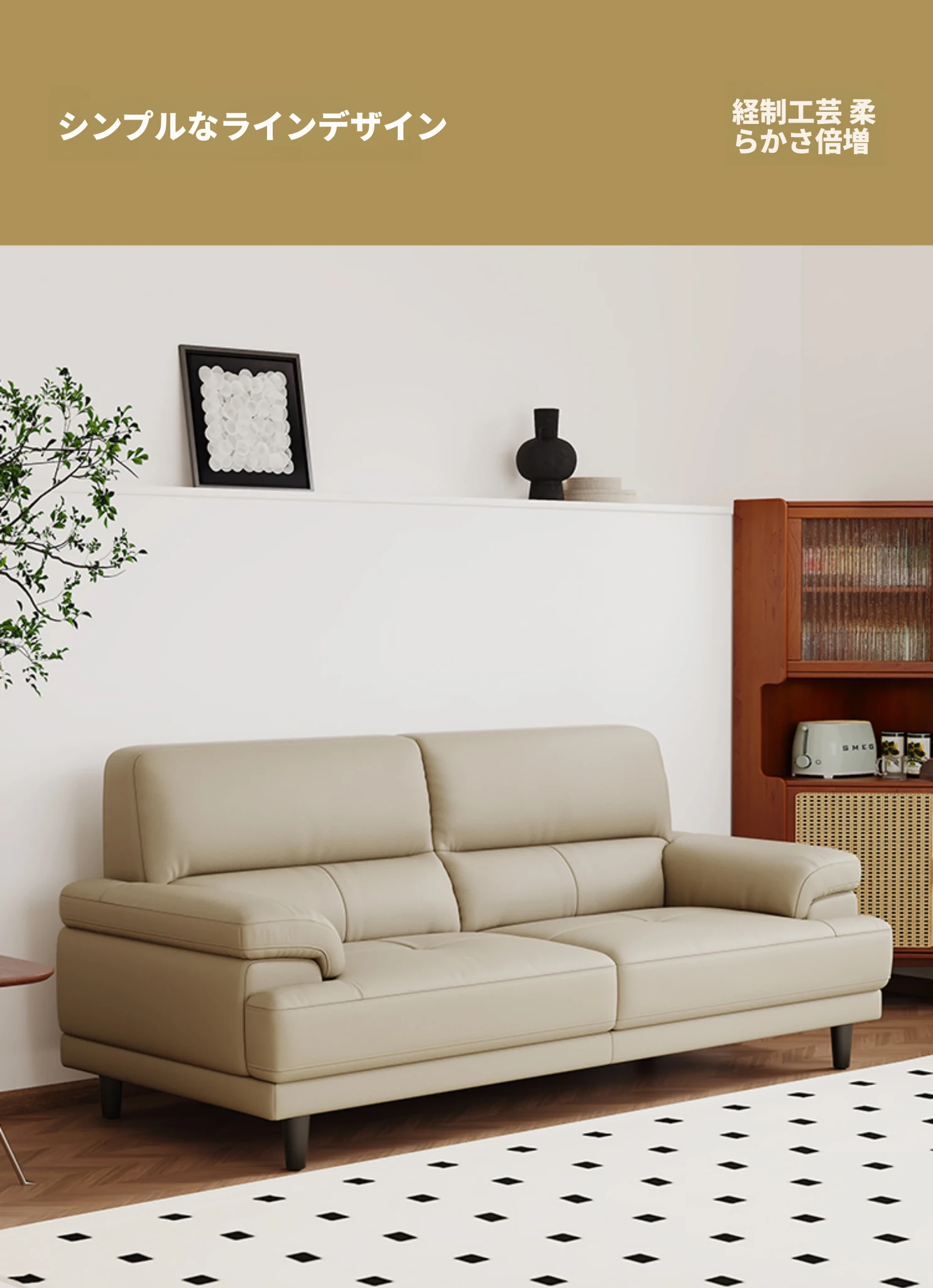 シンプルでモダンな本革ソファ|高品質なトップグレイン牛皮使用|リビングに最適な新作家具|ミニマリストデザインのダブルソファ|快適な座り心地と洗練されたスタイルで、あなたの空間を格上げ!