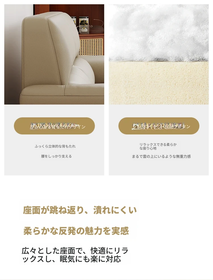 プレミアム版-【厚手牛革≈2.2mm】(一人掛け1.12m)ラテックスタイプ+無垢材フレーム