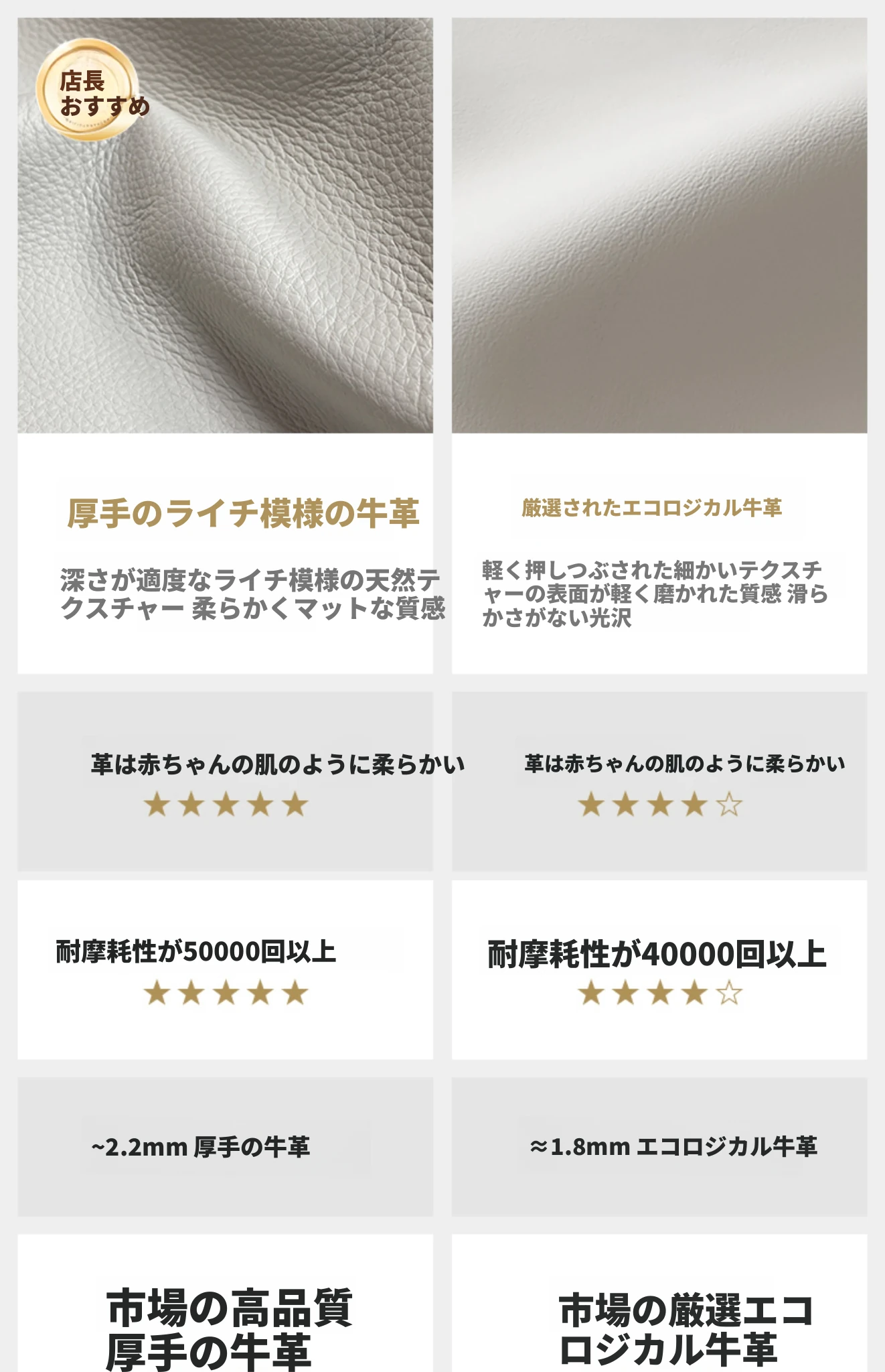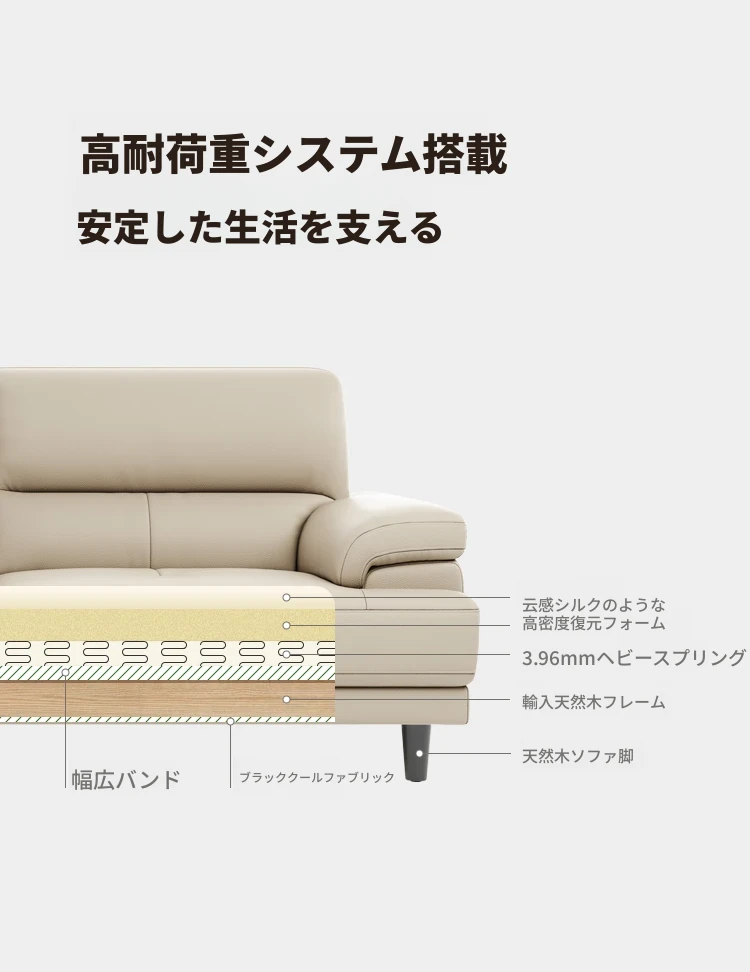 プレミアム版-【厚手牛革≈2.2mm】(三人掛け1.9m)ラテックスタイプ+無垢材フレーム