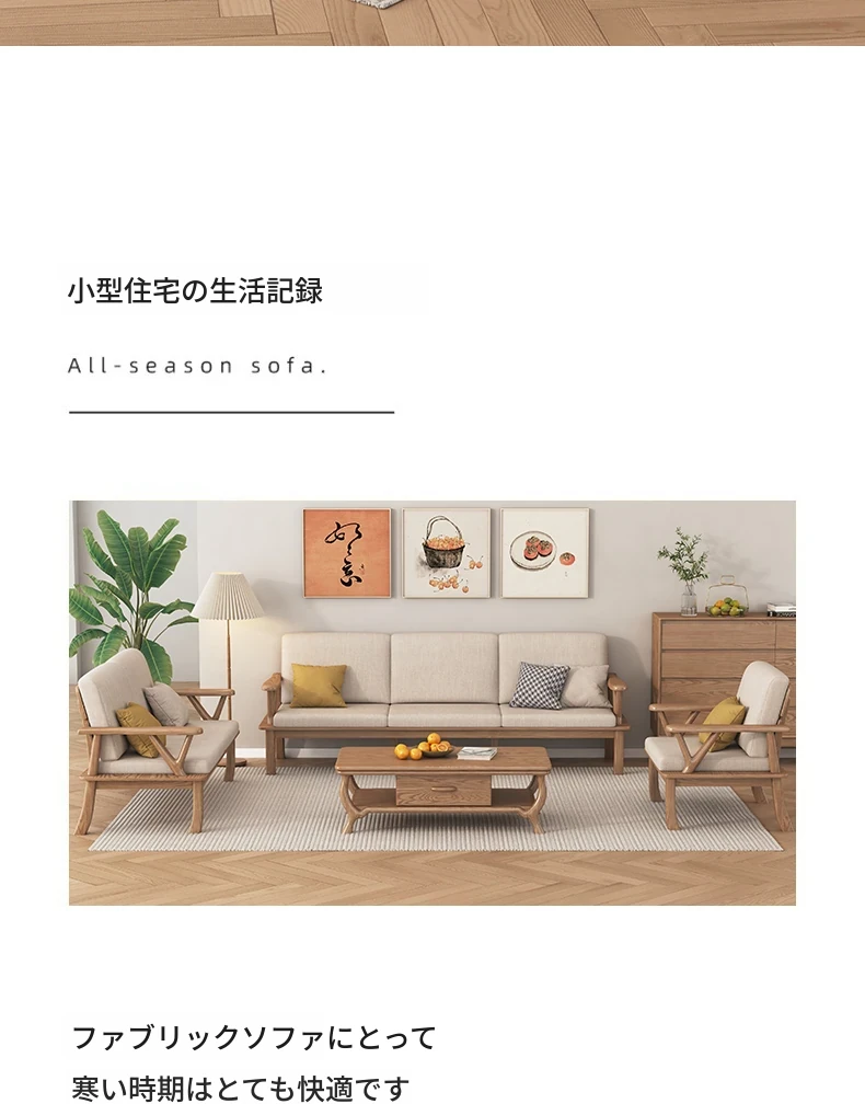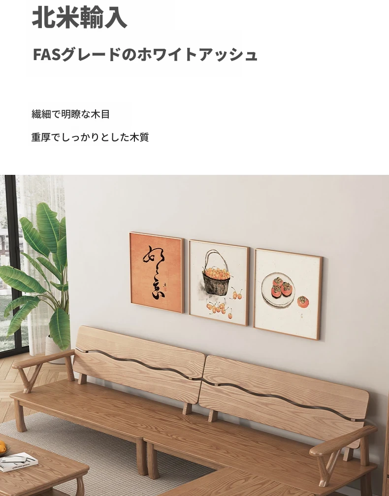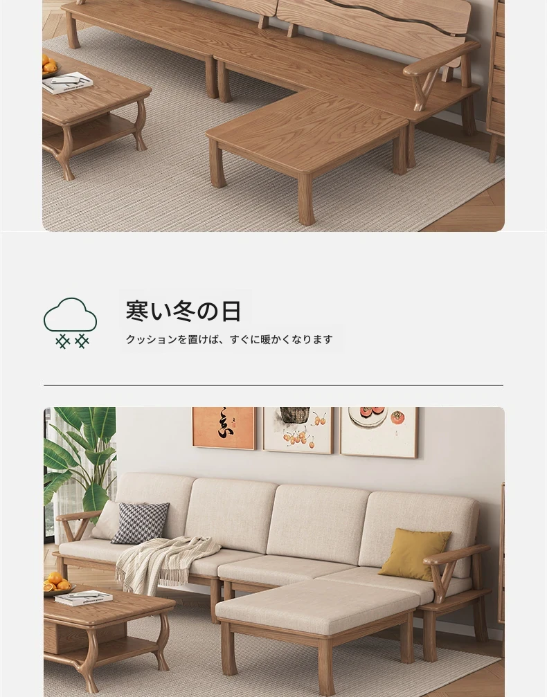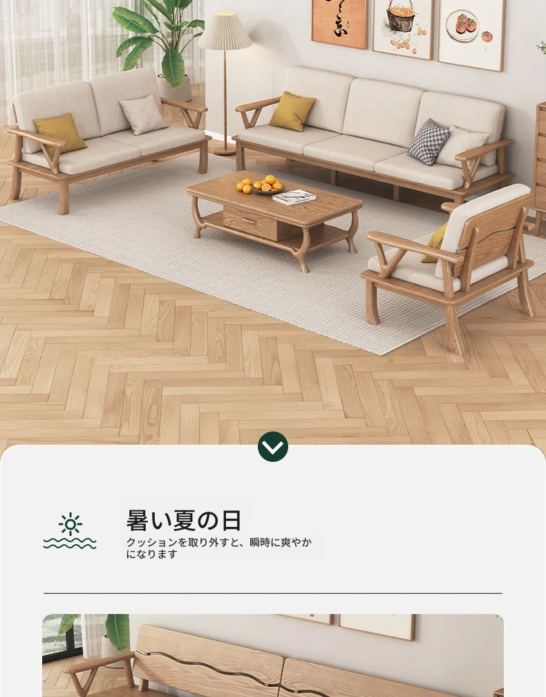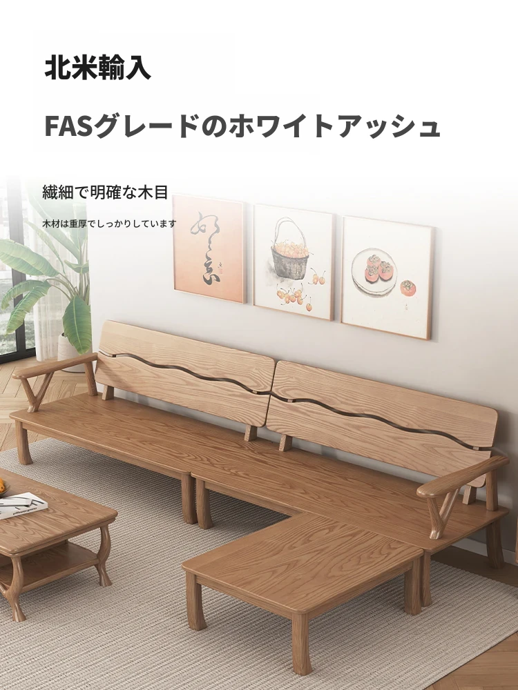 新中式スタイルの無垢材ソファ、小型住宅向け!ホワイトアッシュ素材を使用したモダンでシンプルなリビングルーム用2025年新作、テーブルとソファの魅力的なコンビネーション!