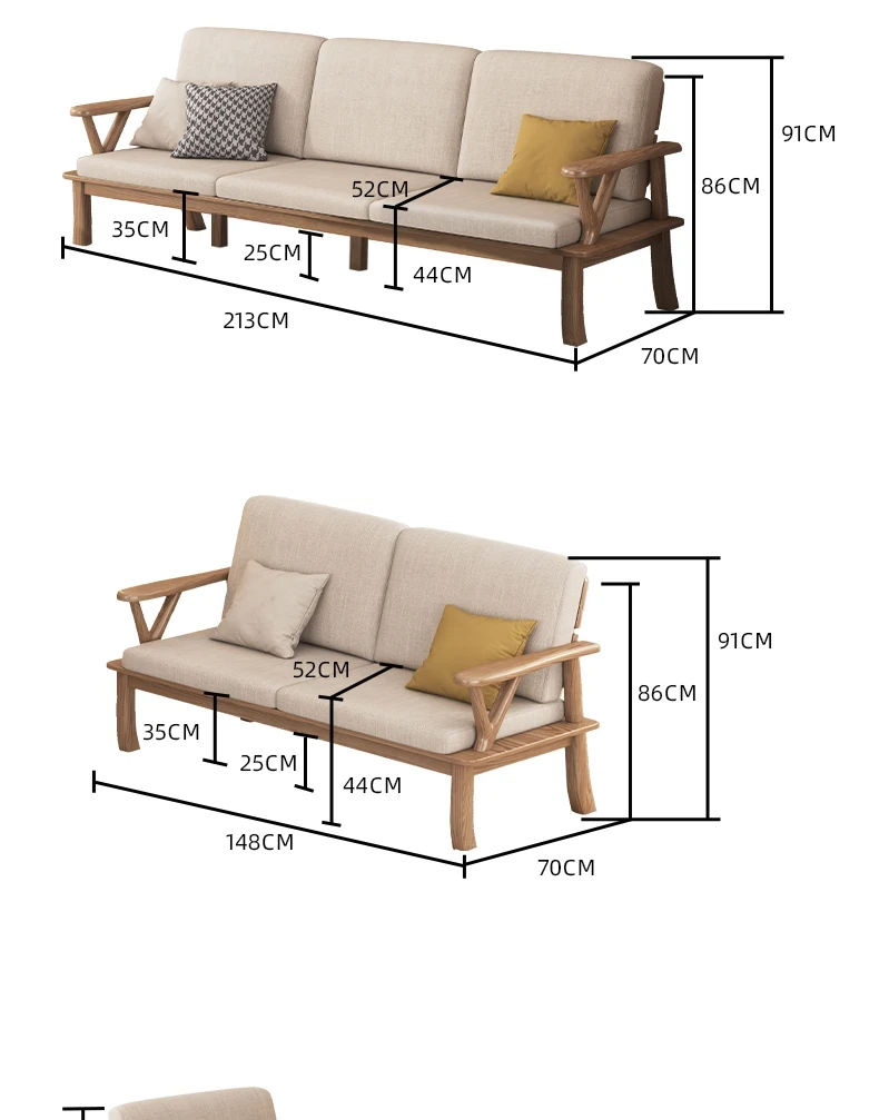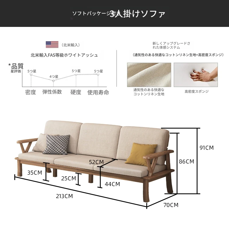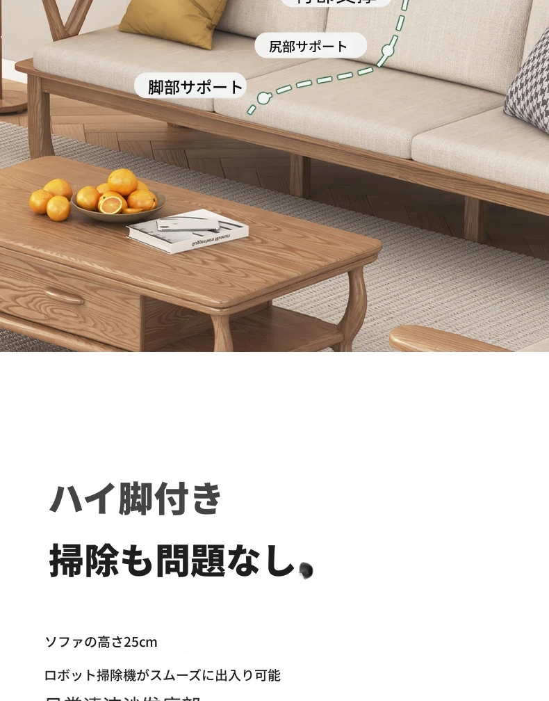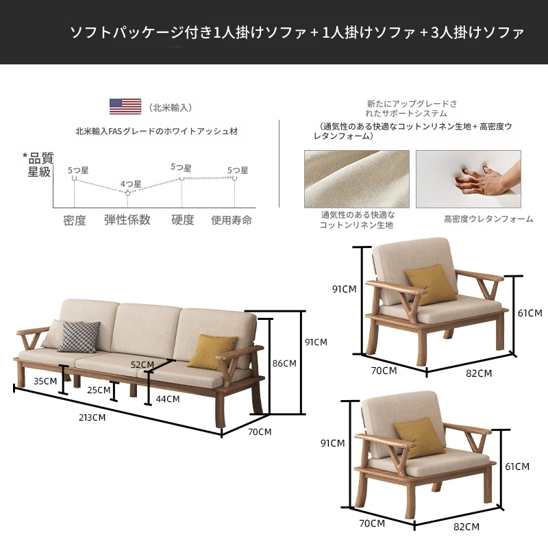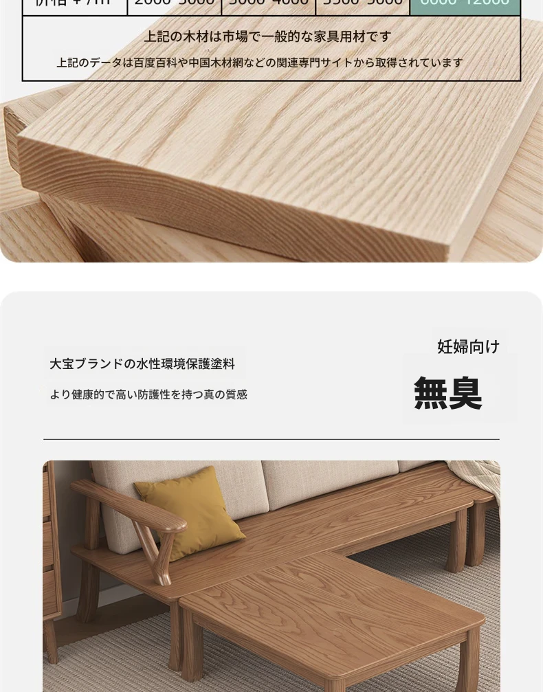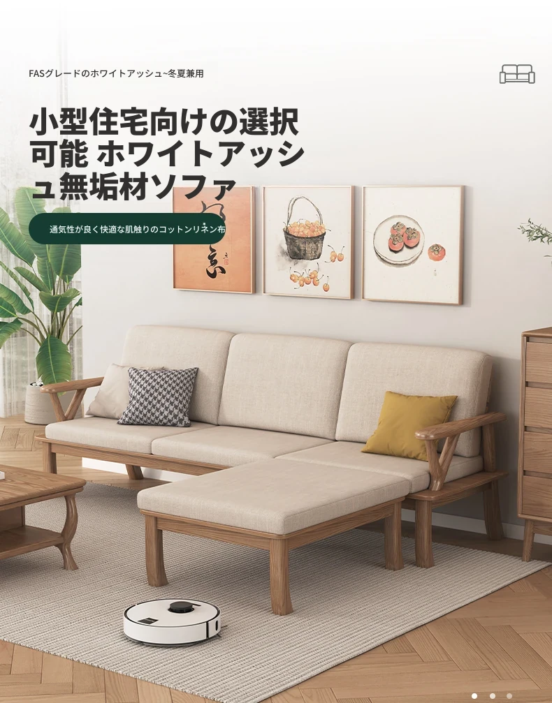 新中式スタイルの無垢材ソファ、小型住宅向け!ホワイトアッシュ素材を使用したモダンでシンプルなリビングルーム用2025年新作、テーブルとソファの魅力的なコンビネーション!