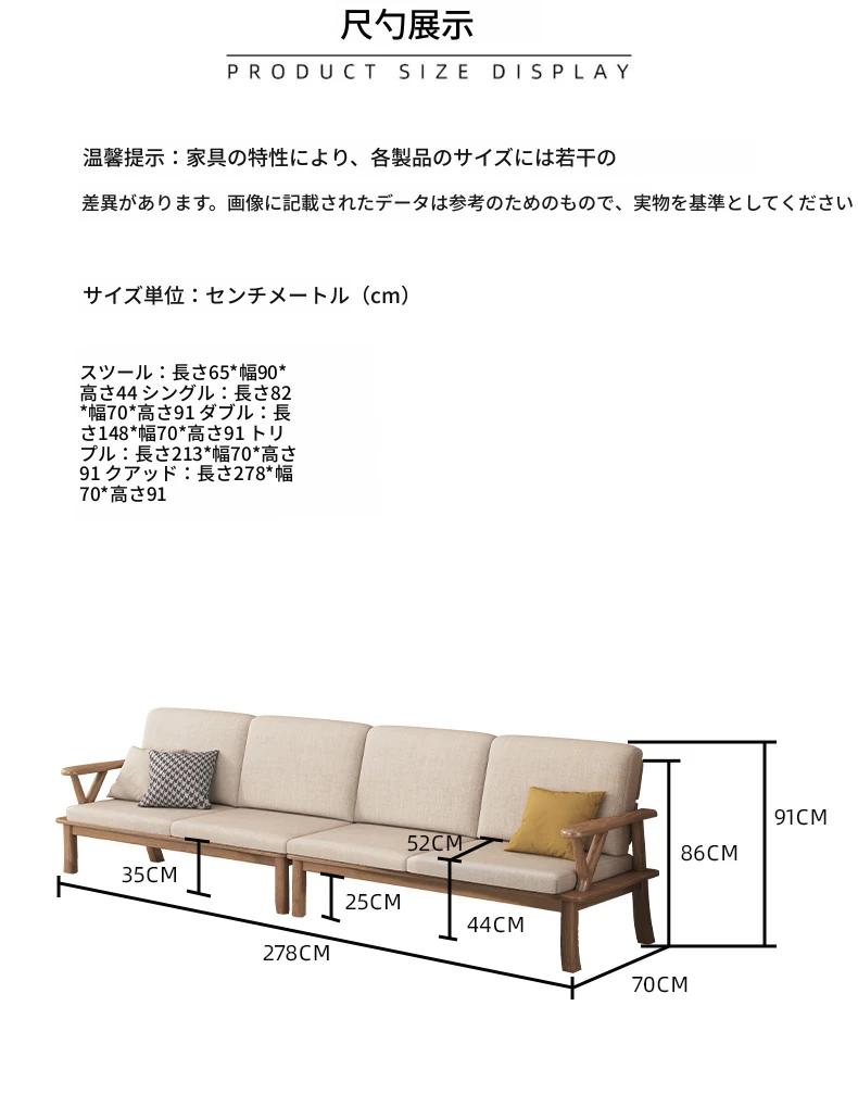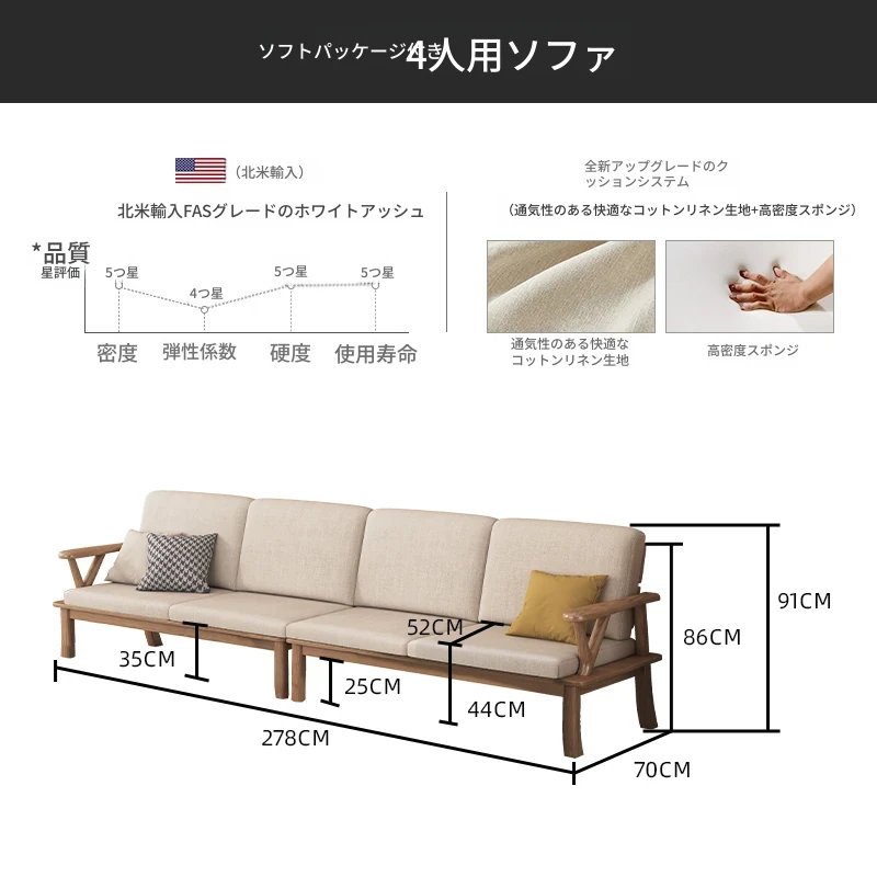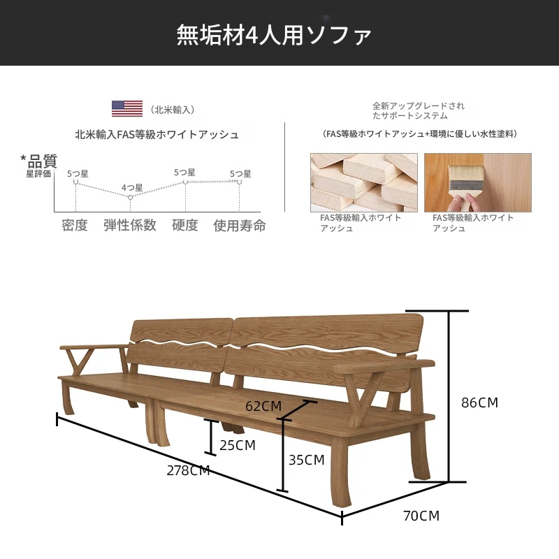 【完全無垢材 4人用ソファ】