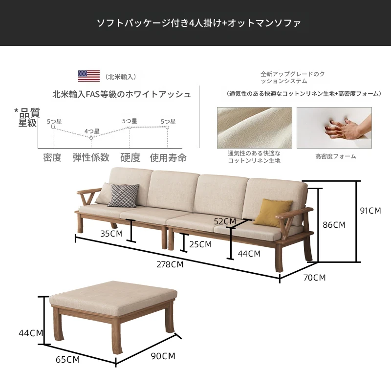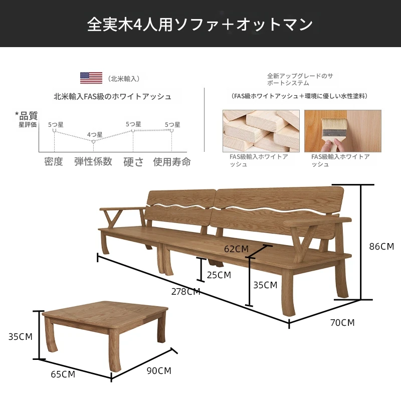 【完全無垢材 4人用 + 脚踏みソファ】