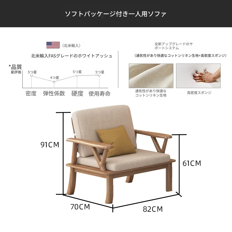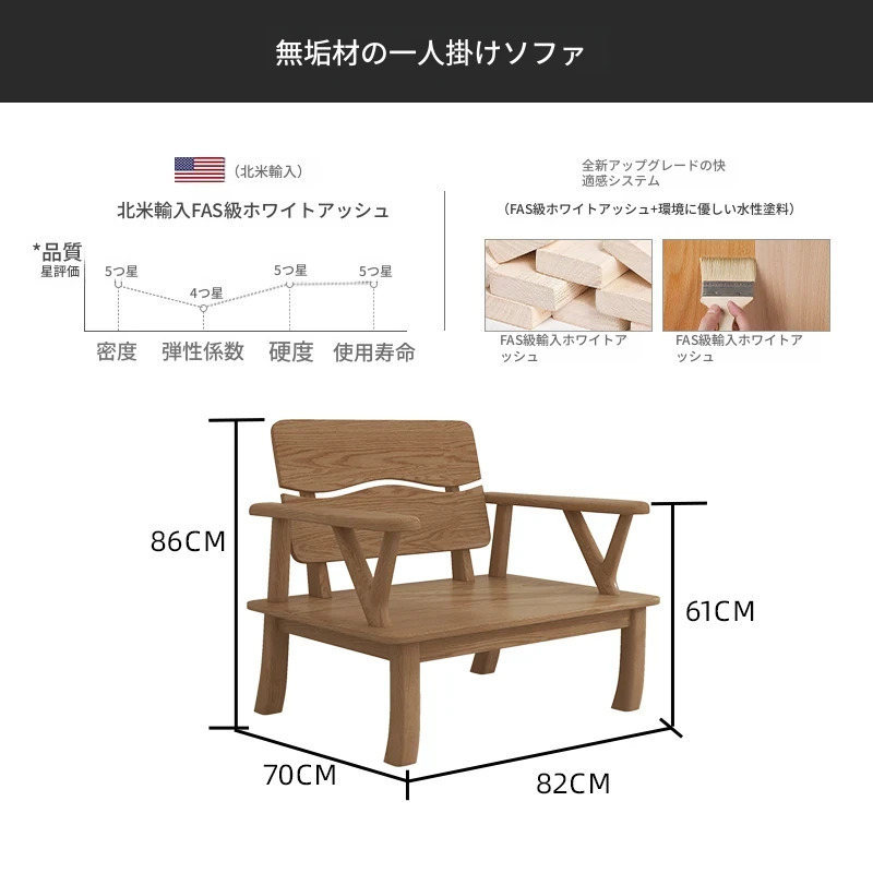 【完全無垢材 1人用ソファ】