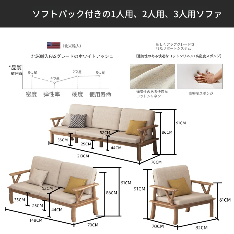 【完全無垢材 3人用ソファ】