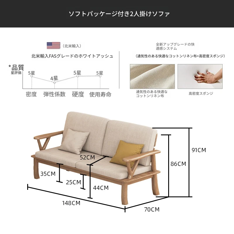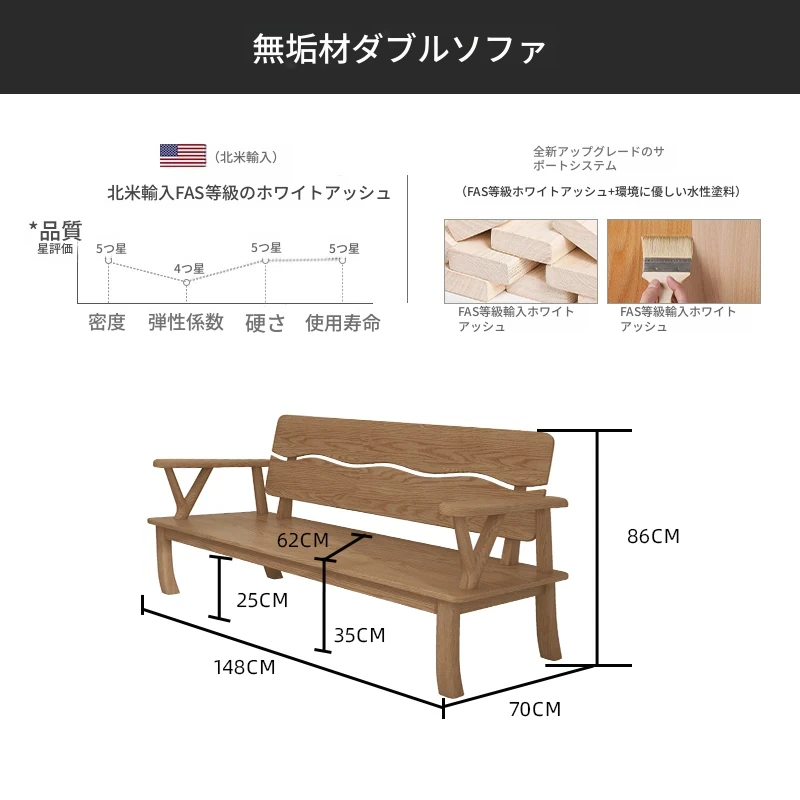 【完全無垢材 2人用ソファ】