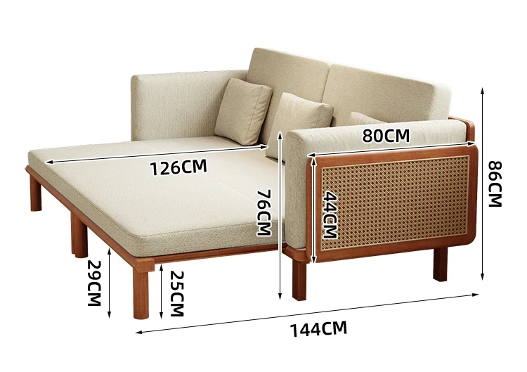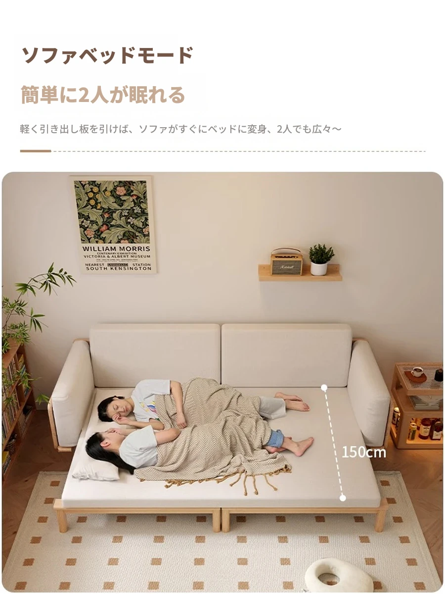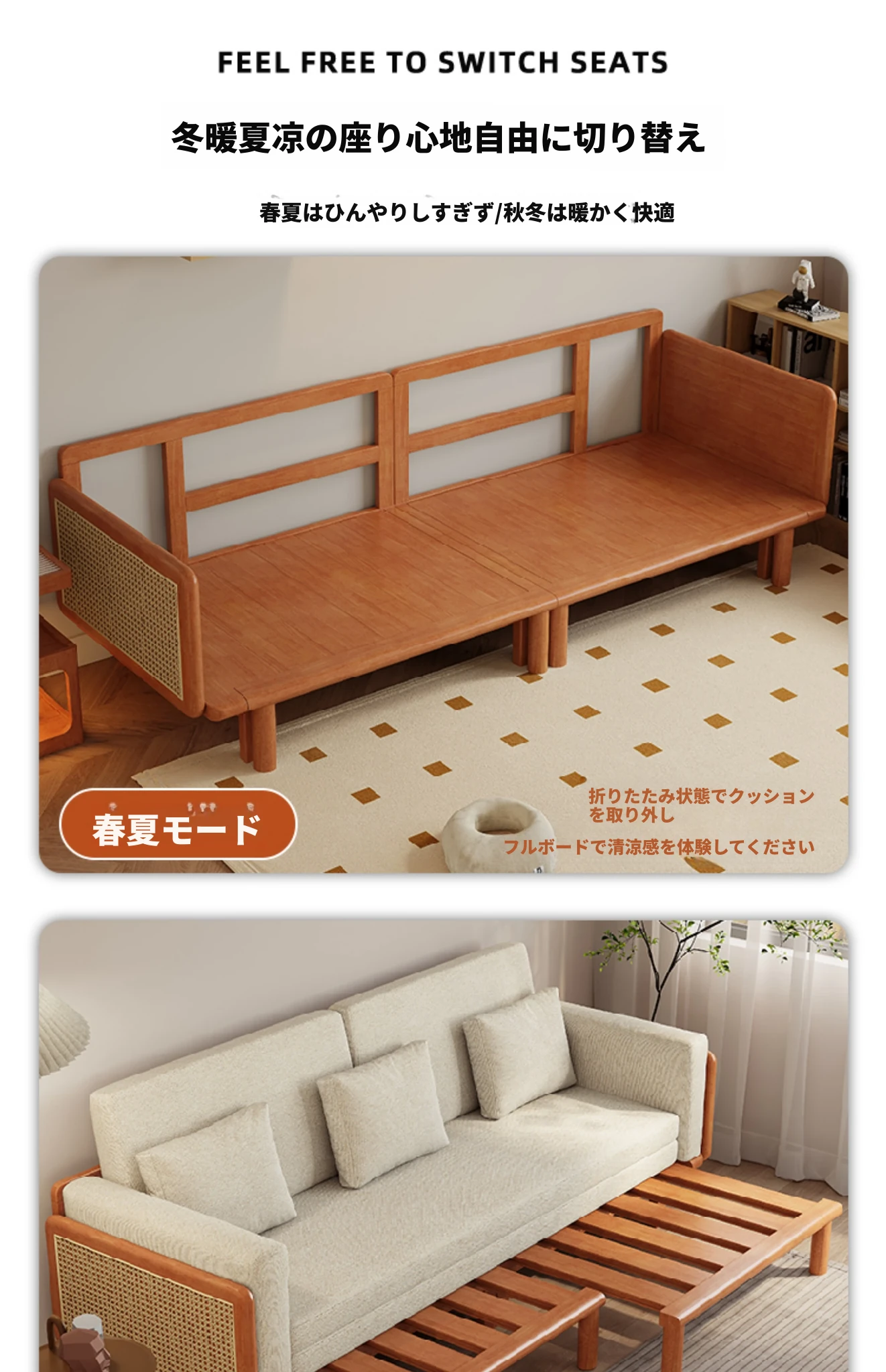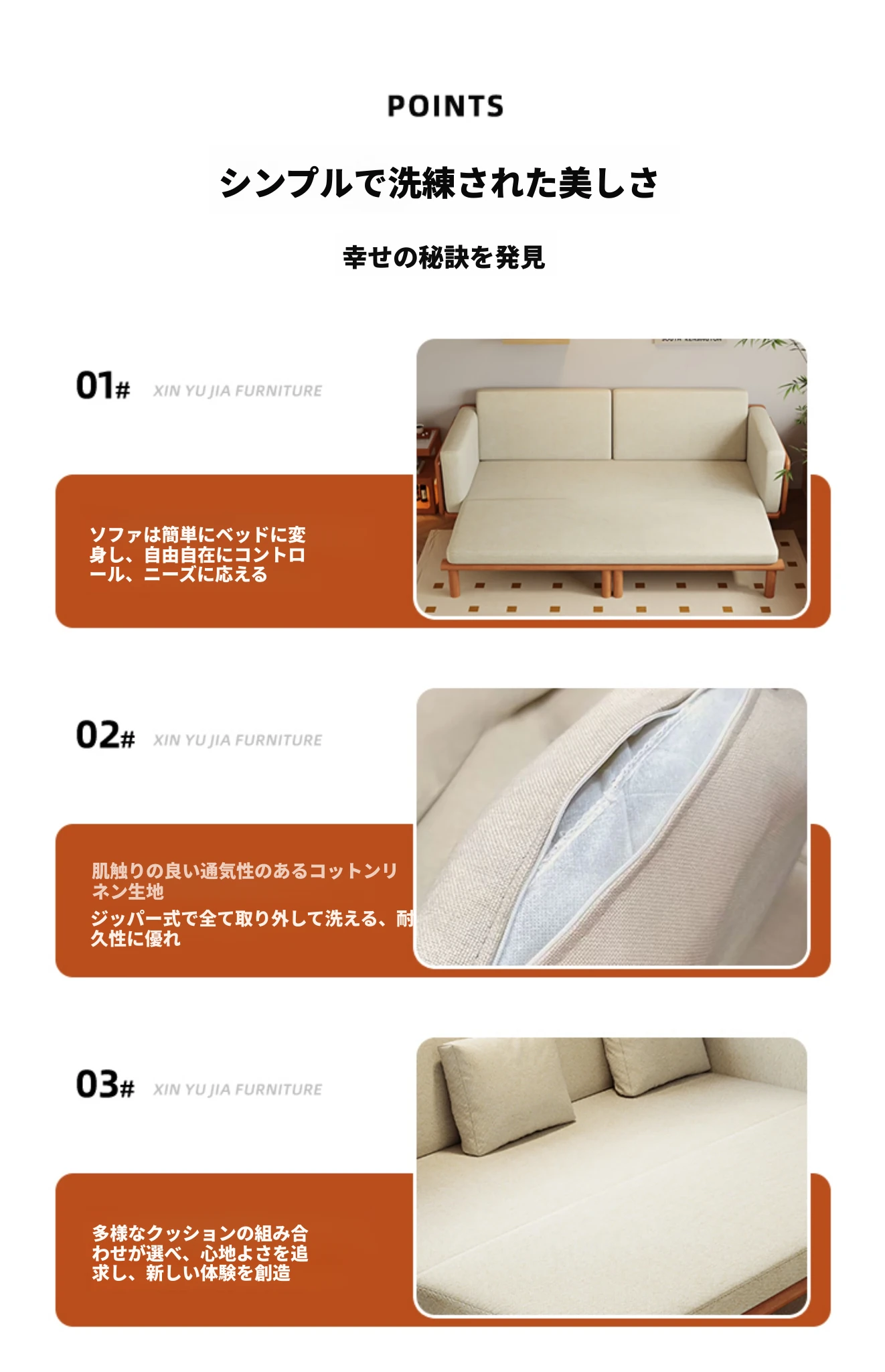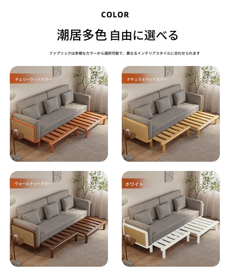 全実木のソファベッド!多機能で伸縮自在、ダブルサイズの小型リビングにぴったり。美しいチェリーホワイトカラーで、ソファとベッドを一体化。おしゃれで快適な空間を演出します!