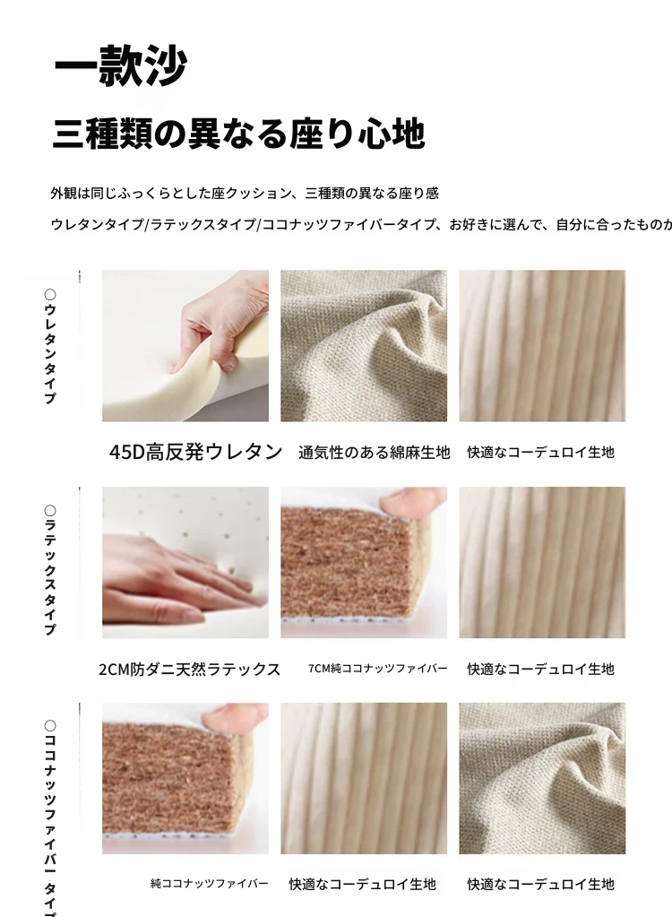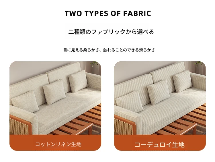 2.1メートル全無垢材ソファベッド【コーデュロイカバー+ココナッツファイバータイプクッション】【チェリーウッドカラー】