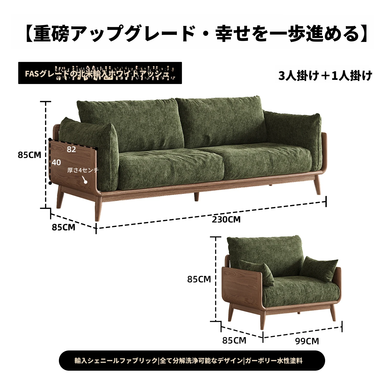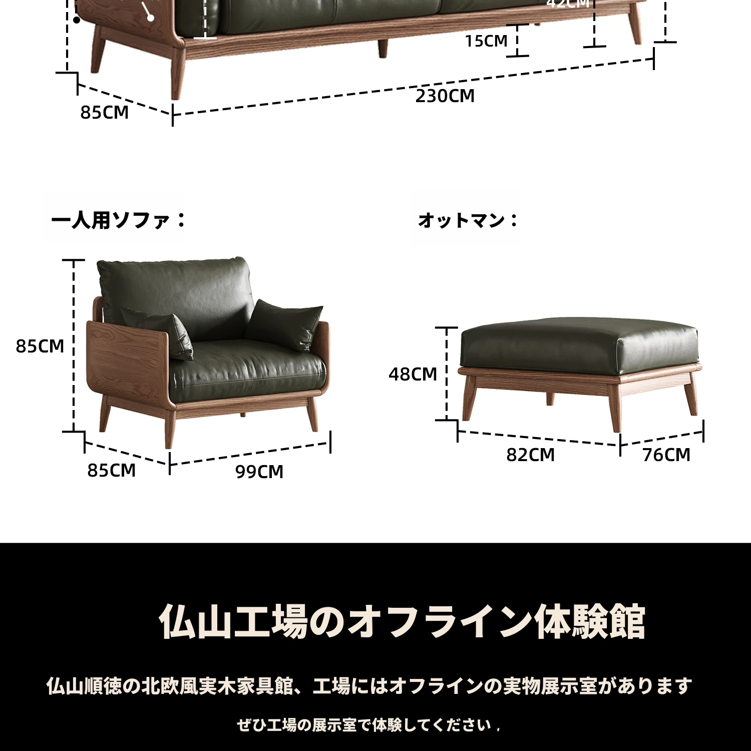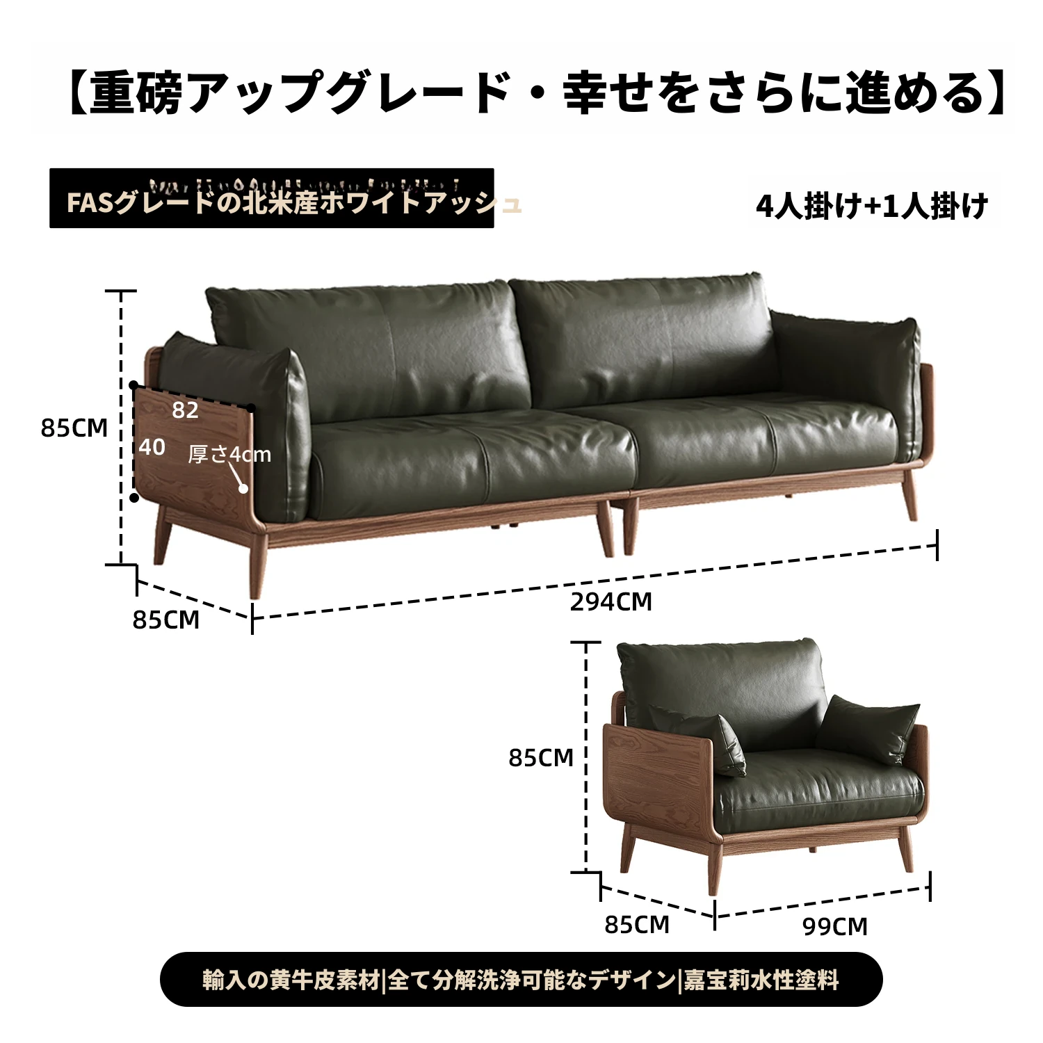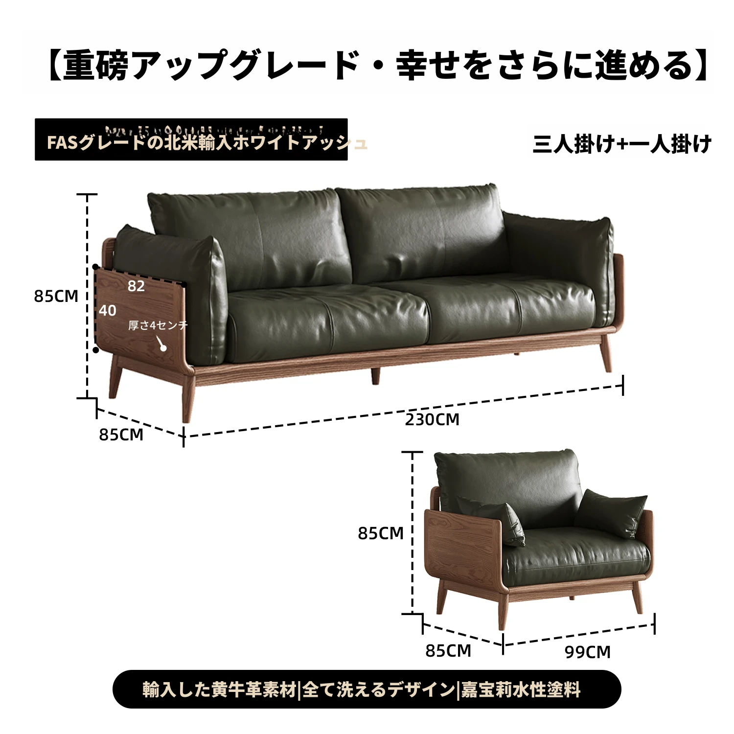 三人用+一人用-(輸入牛革)