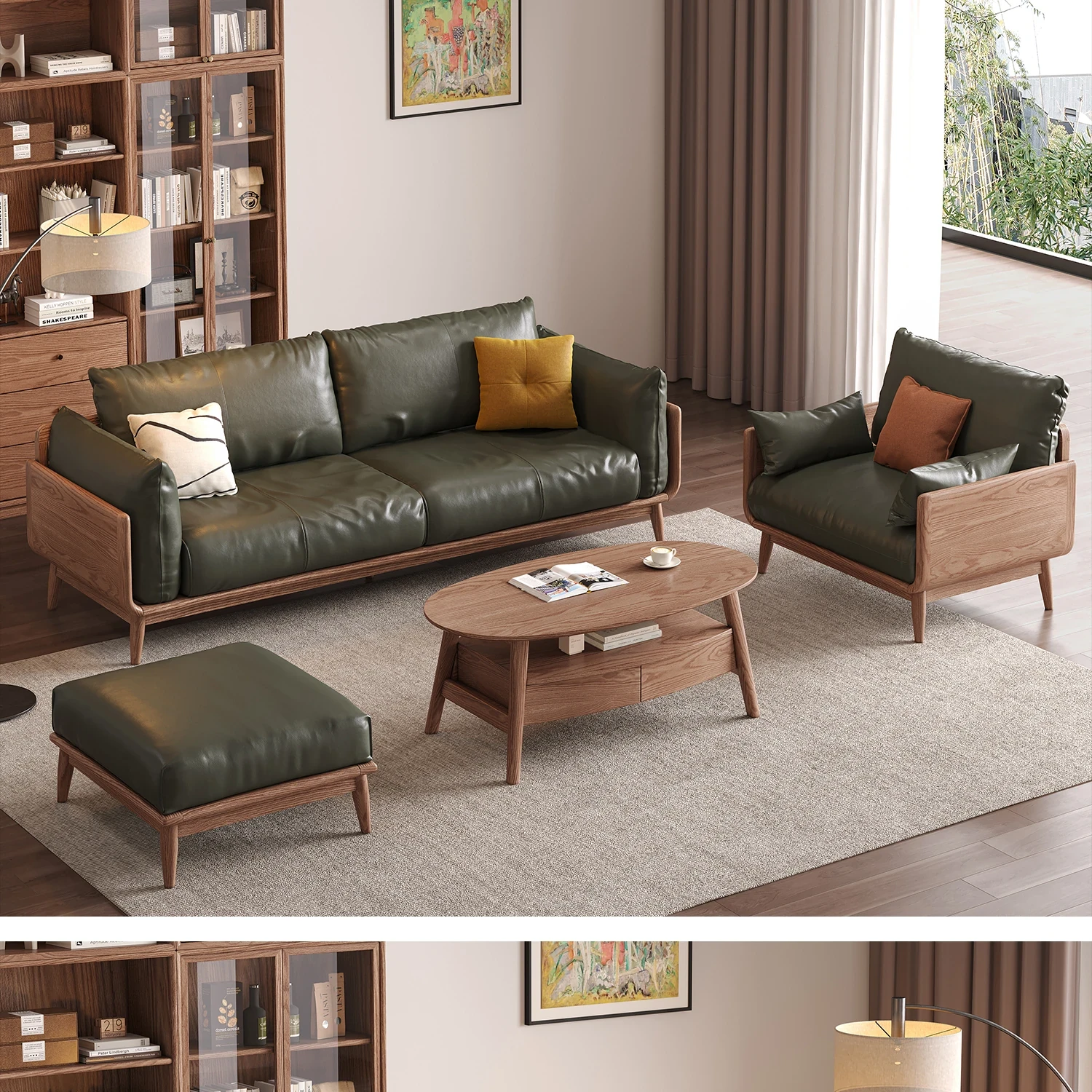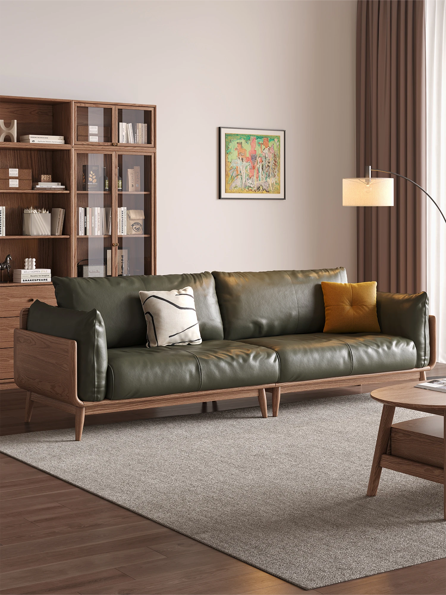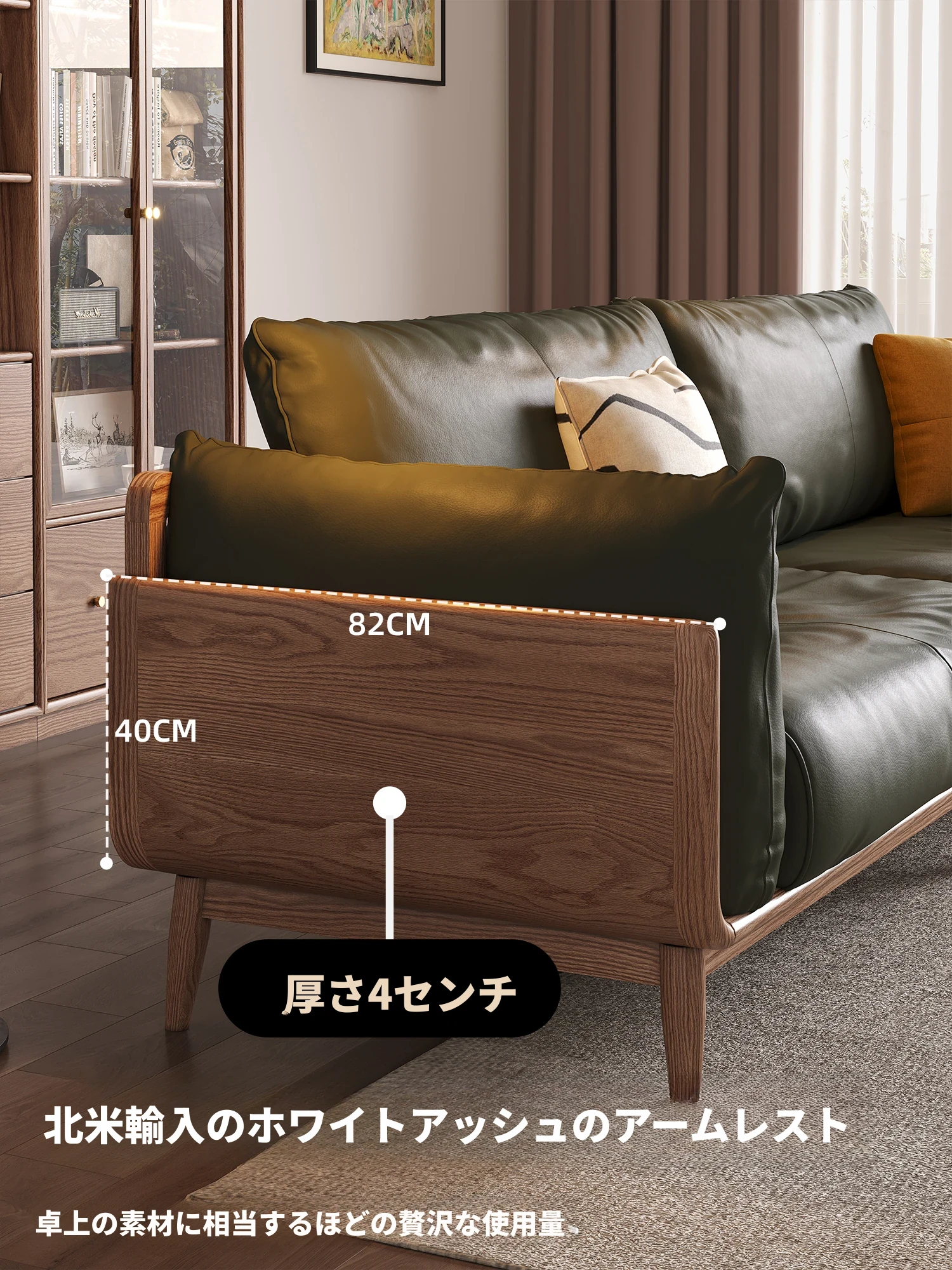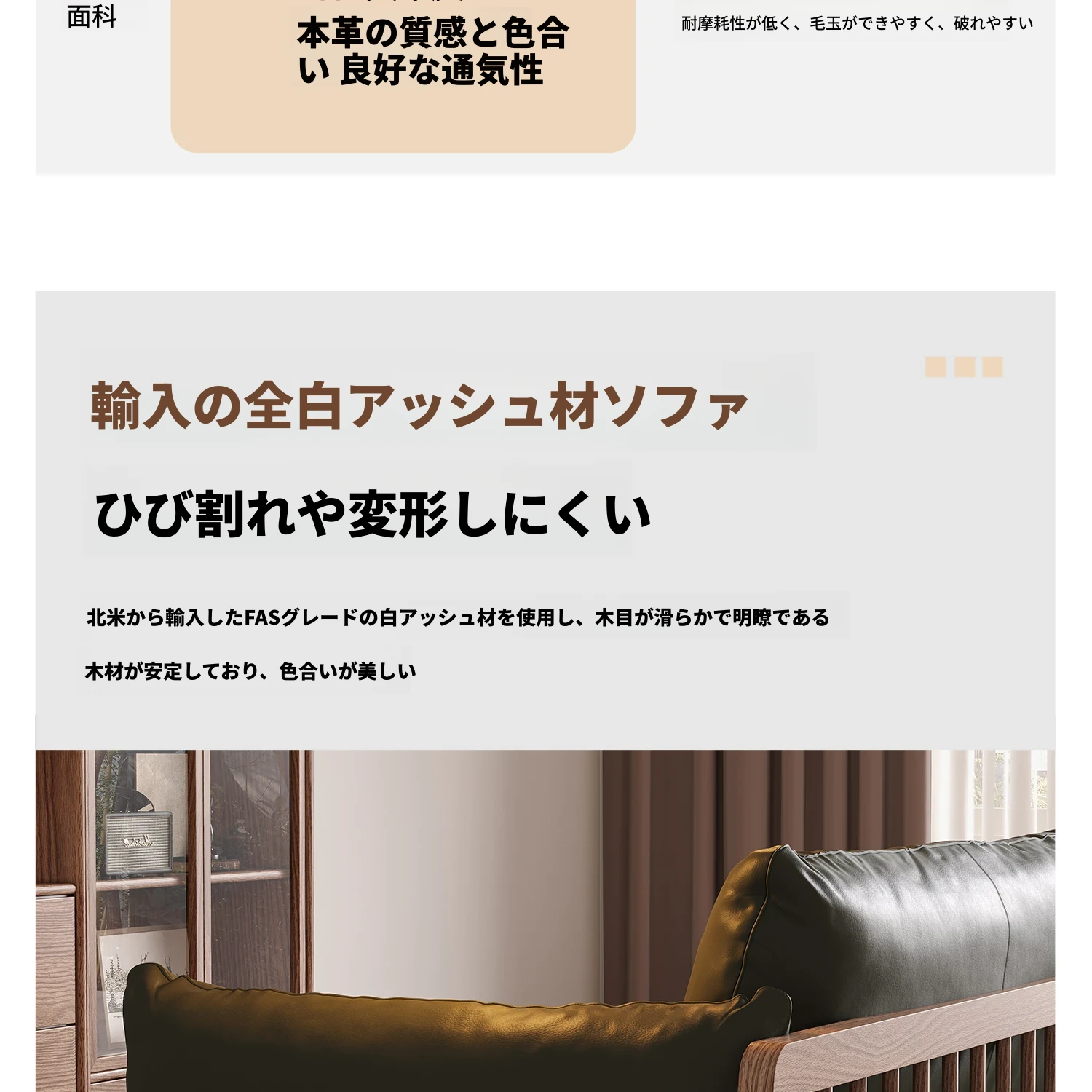 2025年新作!北欧風の真皮ソファ - 小型リビングに最適な実木製、胡桃とホワイトアッシュの組み合わせで、スタイリッシュで快適な空間を演出します。おしゃれさと機能性を兼ね備えた一品をお見逃しなく!