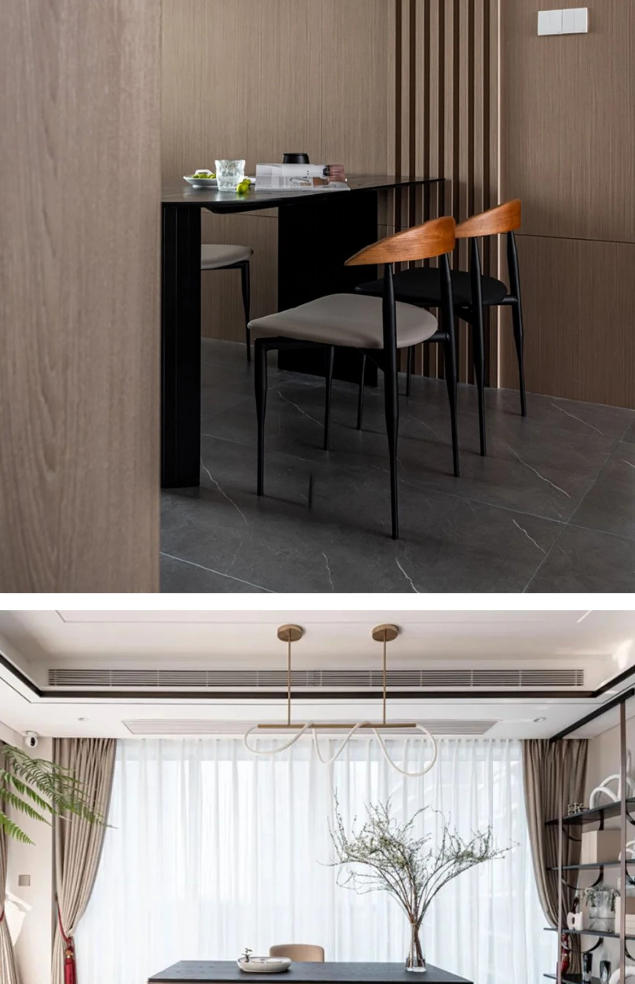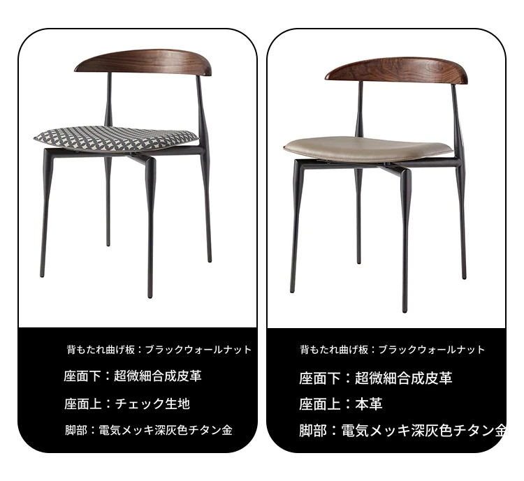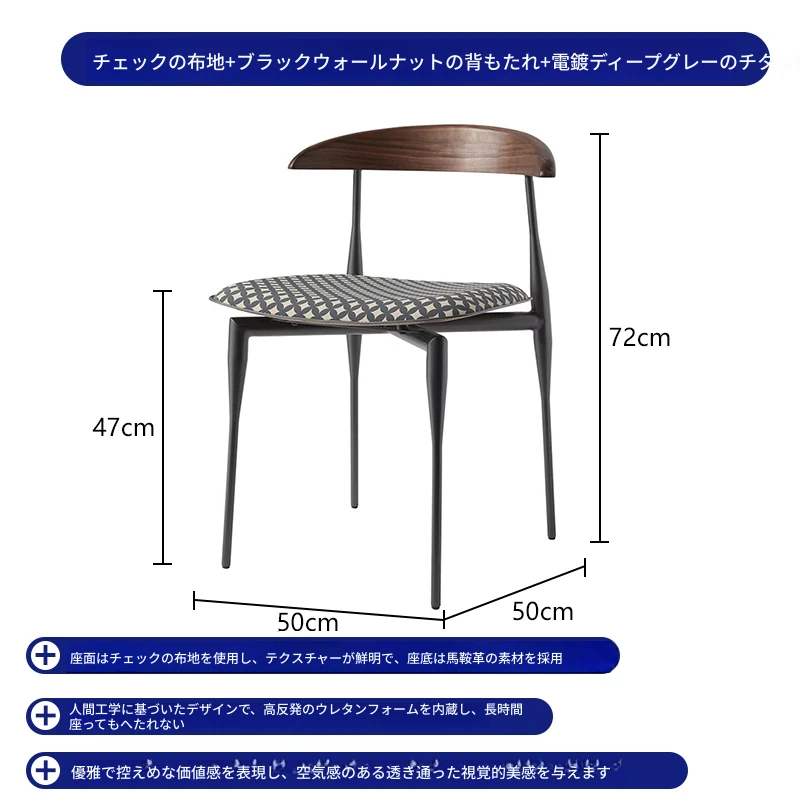 チェック柄ファブリック+ウォールナット木製背もたれ +電気メッキ深灰チタン金脚