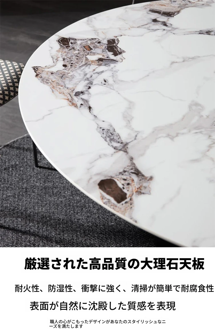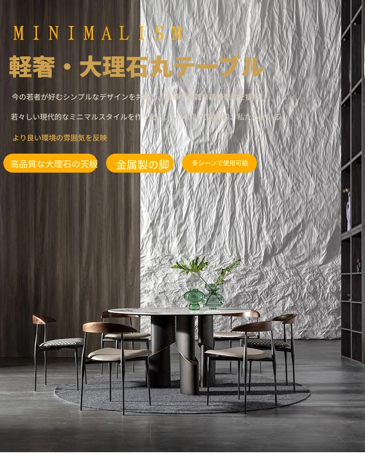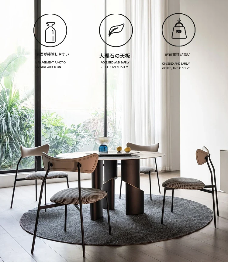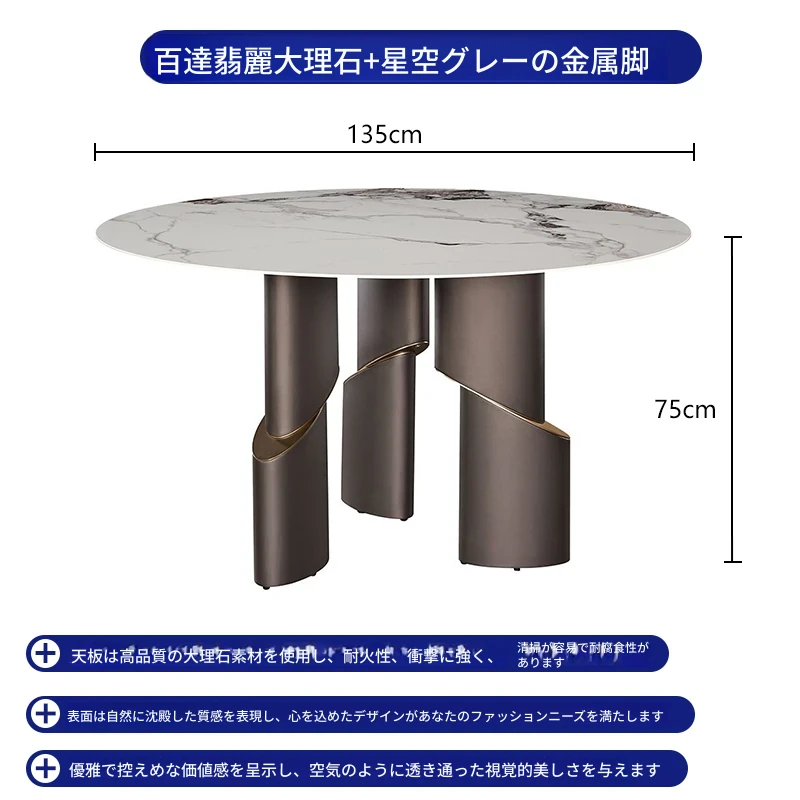 北欧デザインの高級イタリアン軽奢ミニマリスト大理石ダイニングテーブルセット - 大型リビングにぴったりな円形テーブルで、スタイリッシュな食卓を演出します!