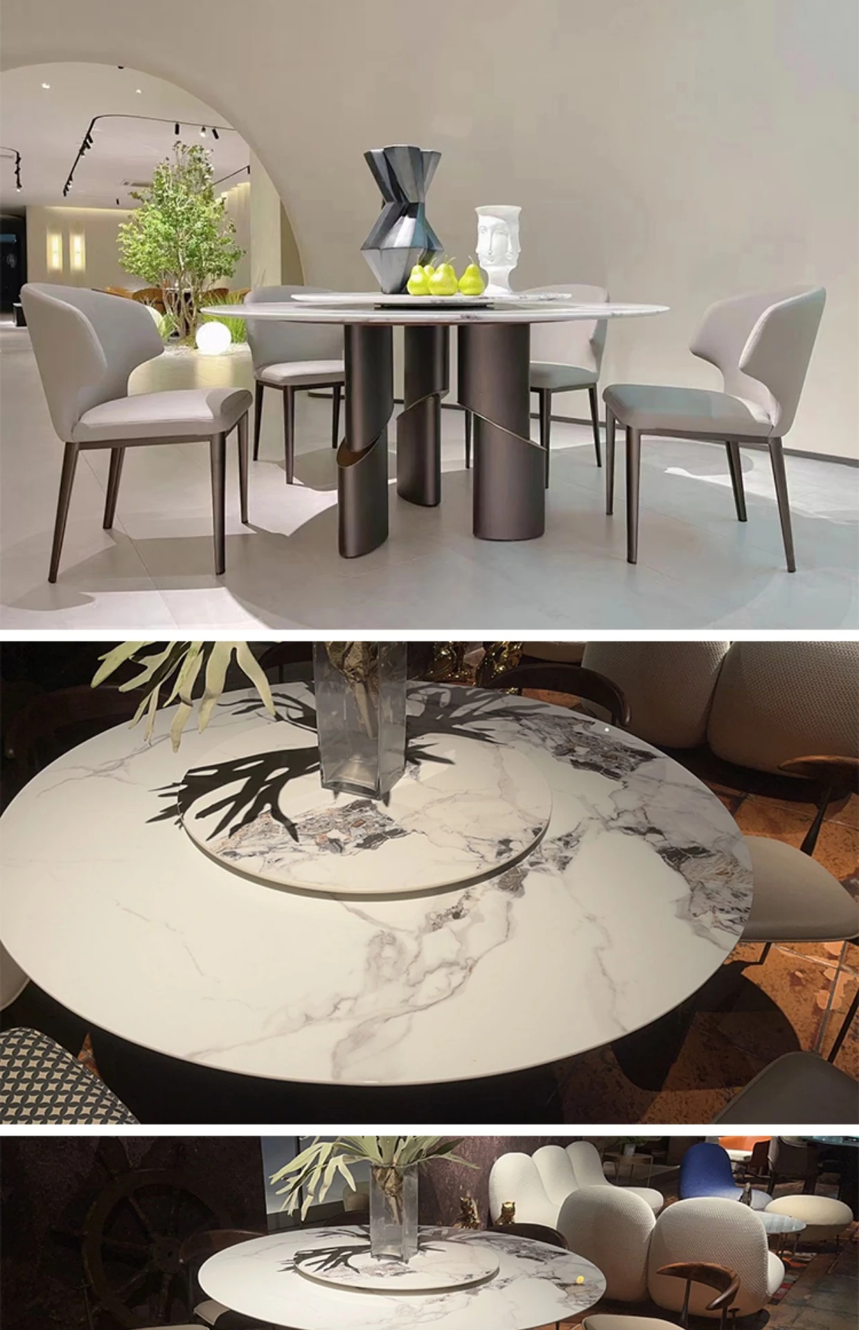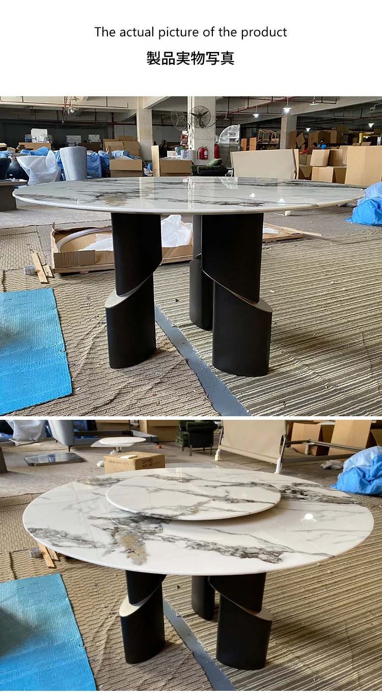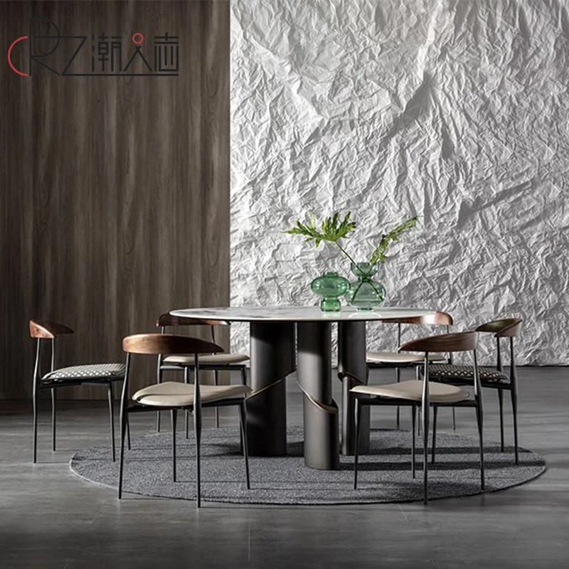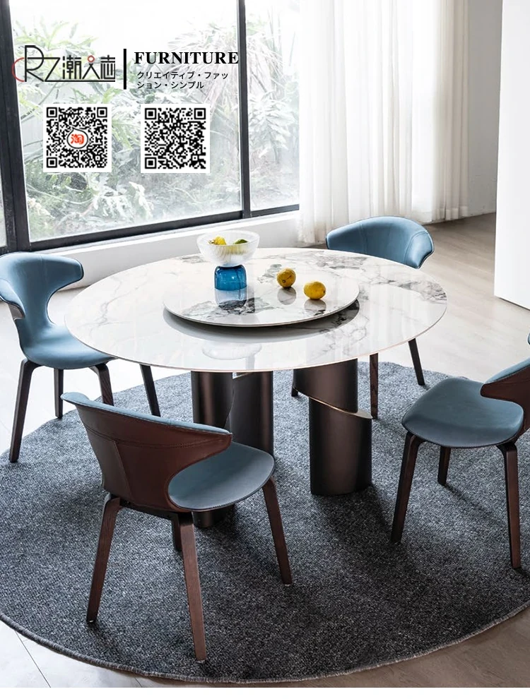 北欧デザインの高級イタリアン軽奢ミニマリスト大理石ダイニングテーブルセット - 大型リビングにぴったりな円形テーブルで、スタイリッシュな食卓を演出します!