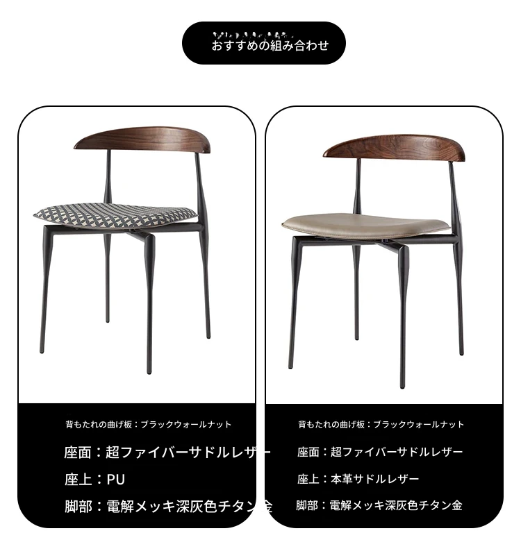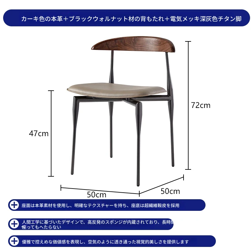カーキ色本革+ウォールナット木製背もたれ +電気メッキ深灰チタン金脚