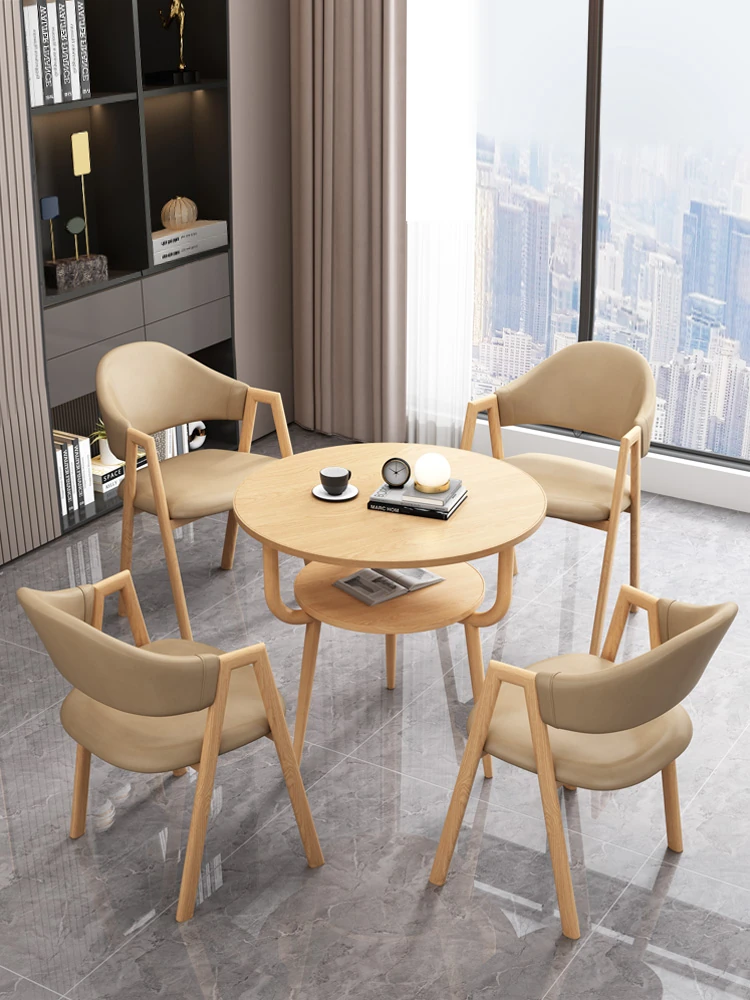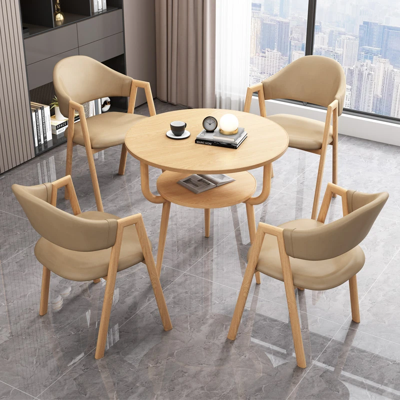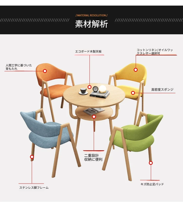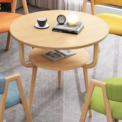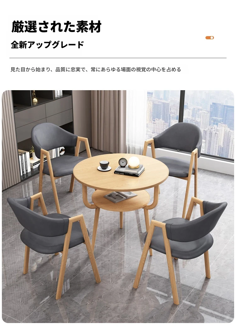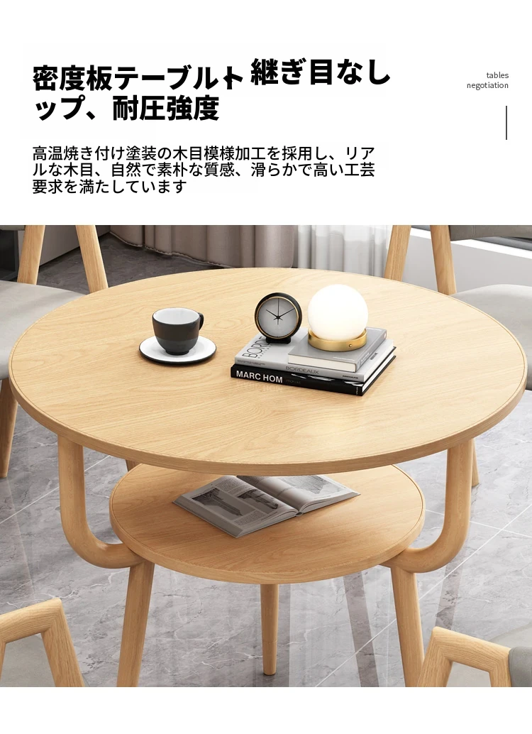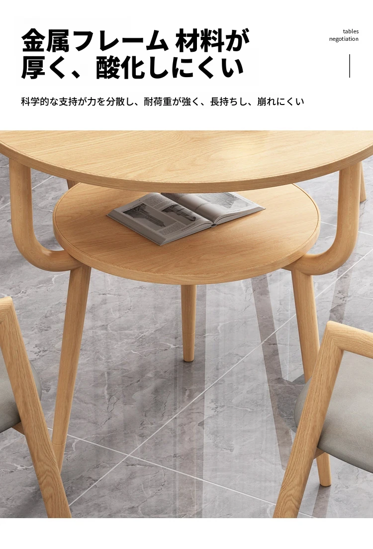 北欧スタイルの木製談話テーブル&椅子セット - おしゃれなカフェやバルコニーに最適なリラックス空間を演出!ティータイムやおもてなしにピッタリの小さな円形テーブル。