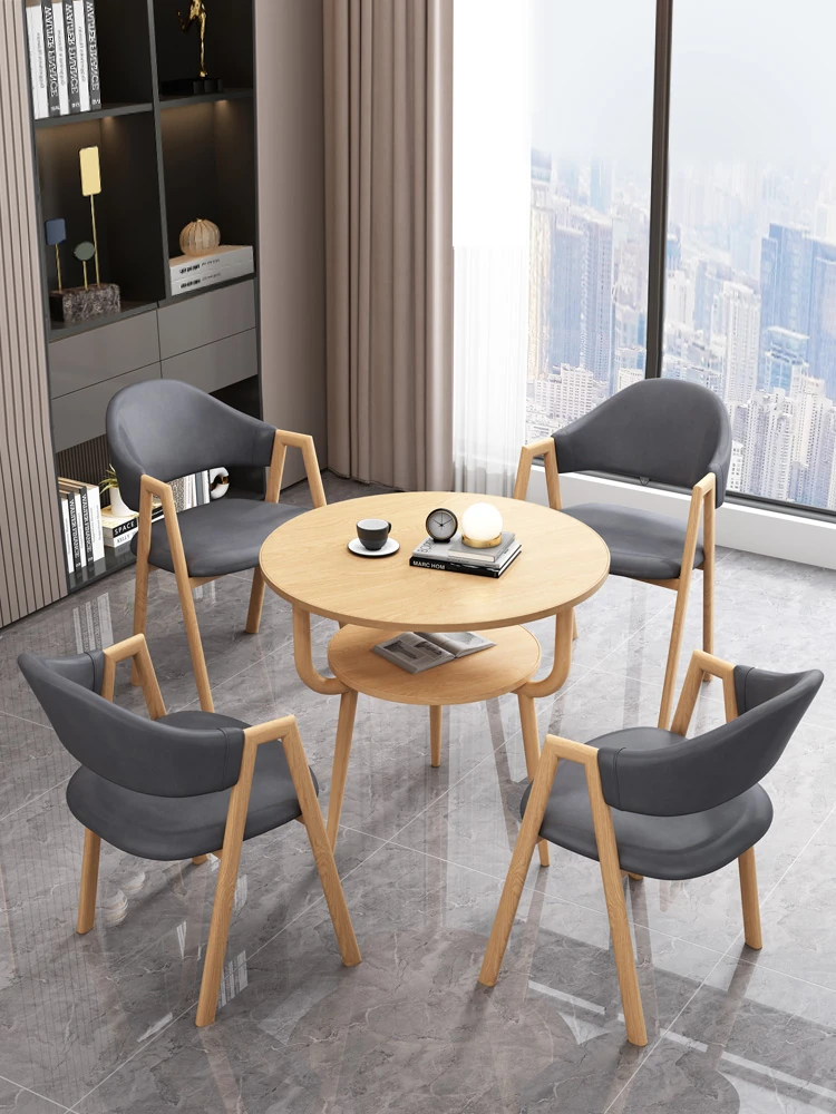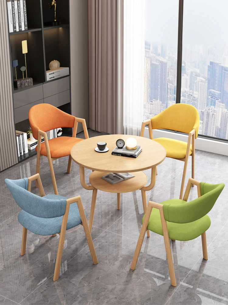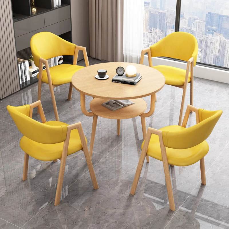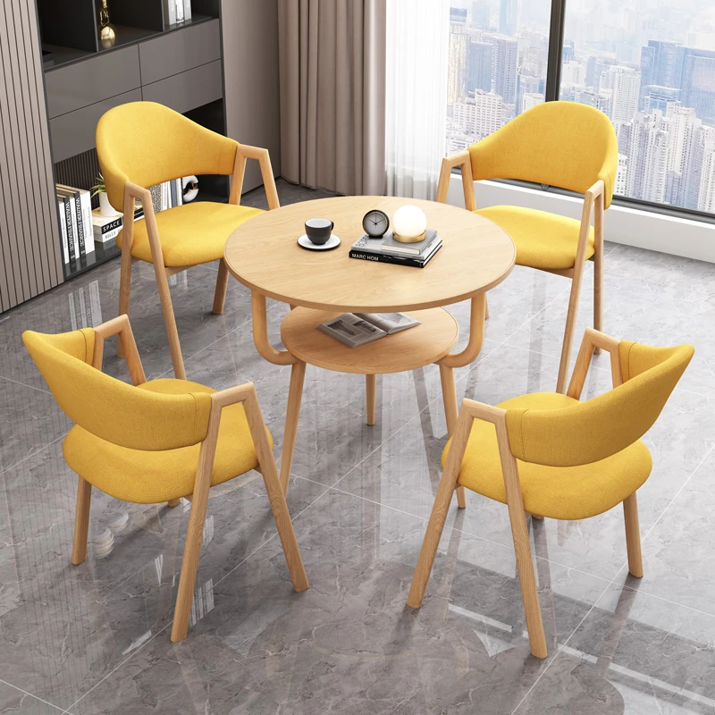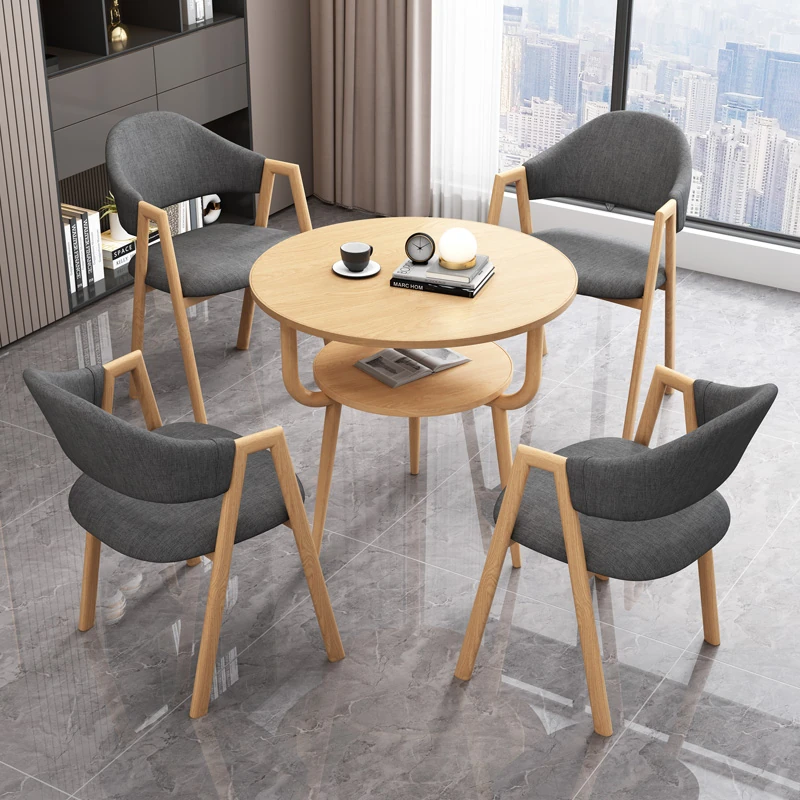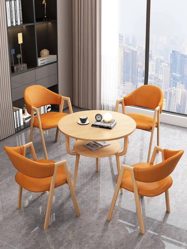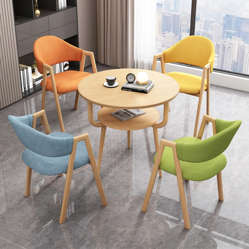 北欧スタイルの木製談話テーブル&椅子セット - おしゃれなカフェやバルコニーに最適なリラックス空間を演出!ティータイムやおもてなしにピッタリの小さな円形テーブル。