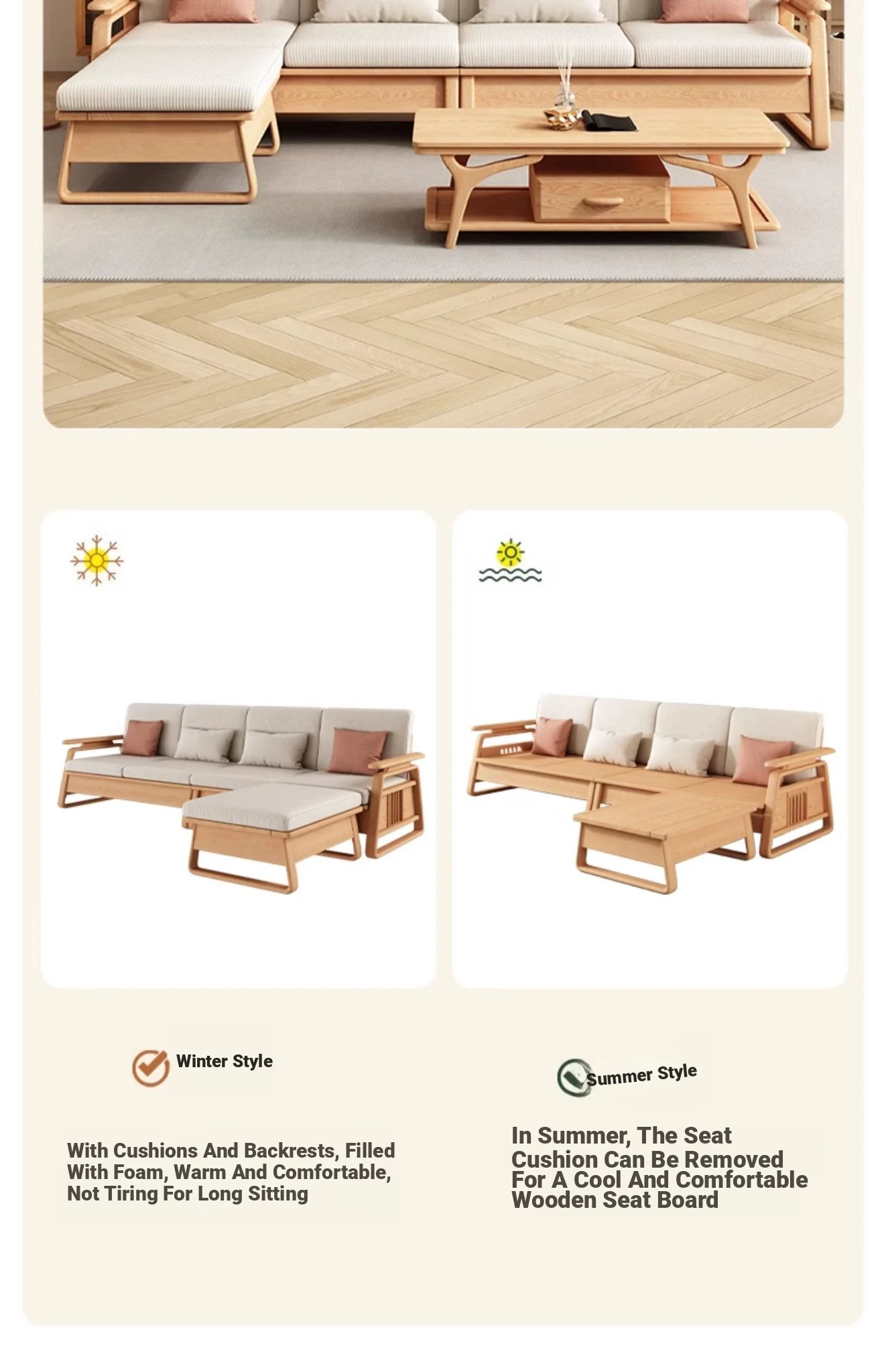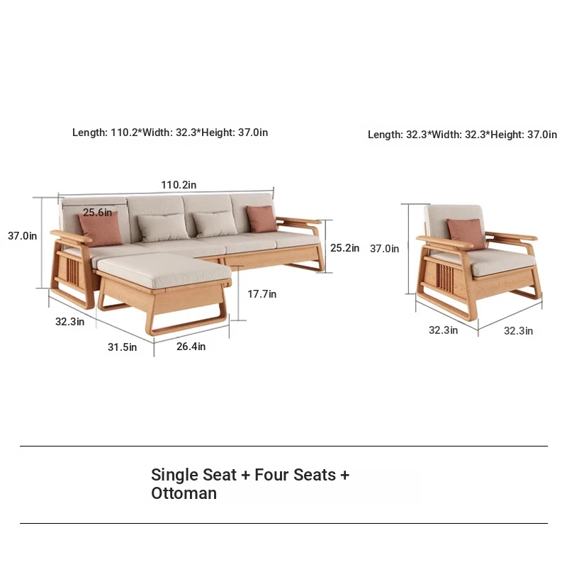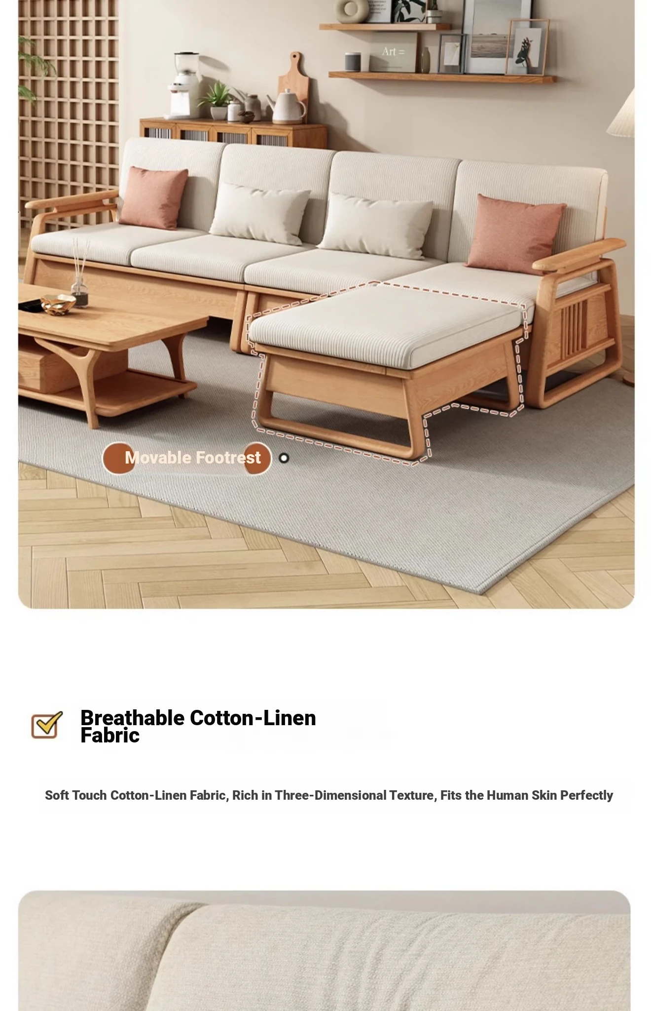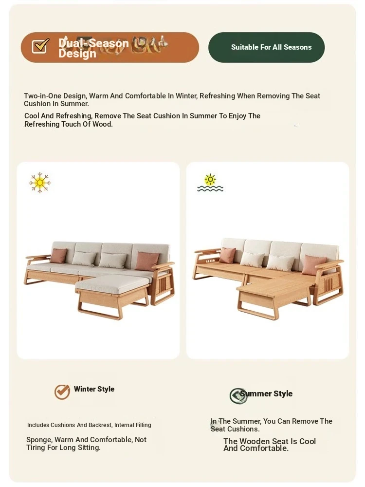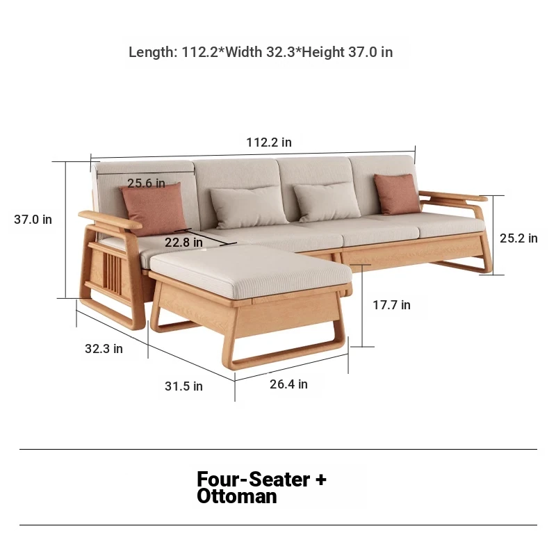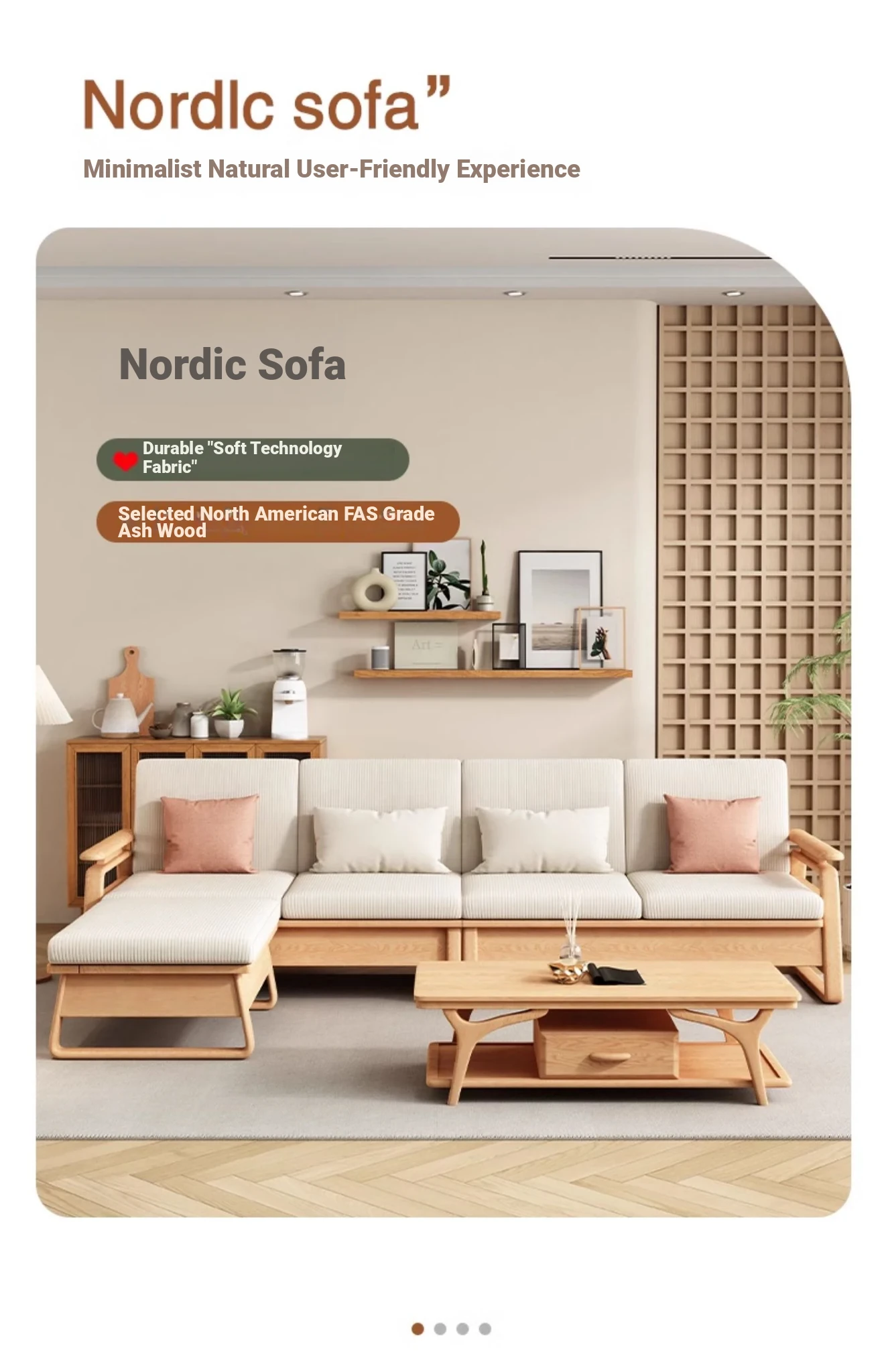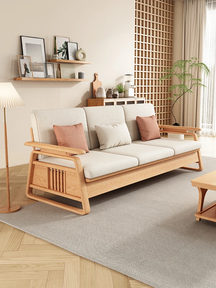 北欧スタイルの天然木製ソファ - 小型・中型住宅に最適!クリーミーな原木風、モダンでシンプルなホワイトアッシュのコーナー収納ソファ。おしゃれで機能的な空間を演出します!